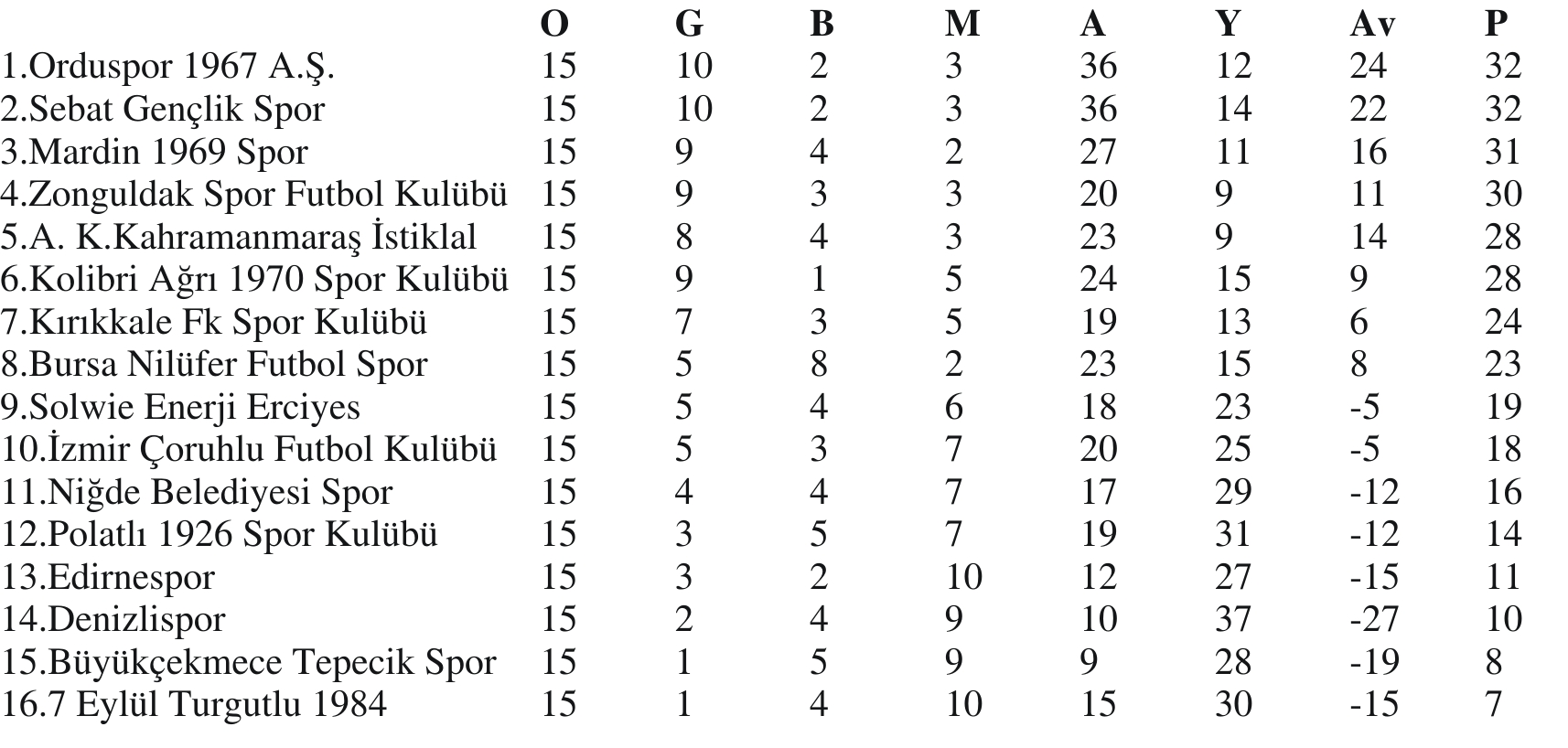 Nesine 3. Lig 4. Grupta alt sıralardaki takımlar ligte kalabilme mücadelesi yaparken üst sıralarda tam bir liderlik savaşı var. Haftanın maçında Mardin 1969 Spor’u 4-0 yenen Orduspor 1967 A.Ş. puanını 32 yaptı ve devreyi liderlik koltuğunda kapattı. Yine 32 puana ulaşan Sebat Gençlik Spor’un ikinci sırada yeraldığı grupta Mardin 1969 Spor 31 puanlı üçüncü sırada bulunuyor.