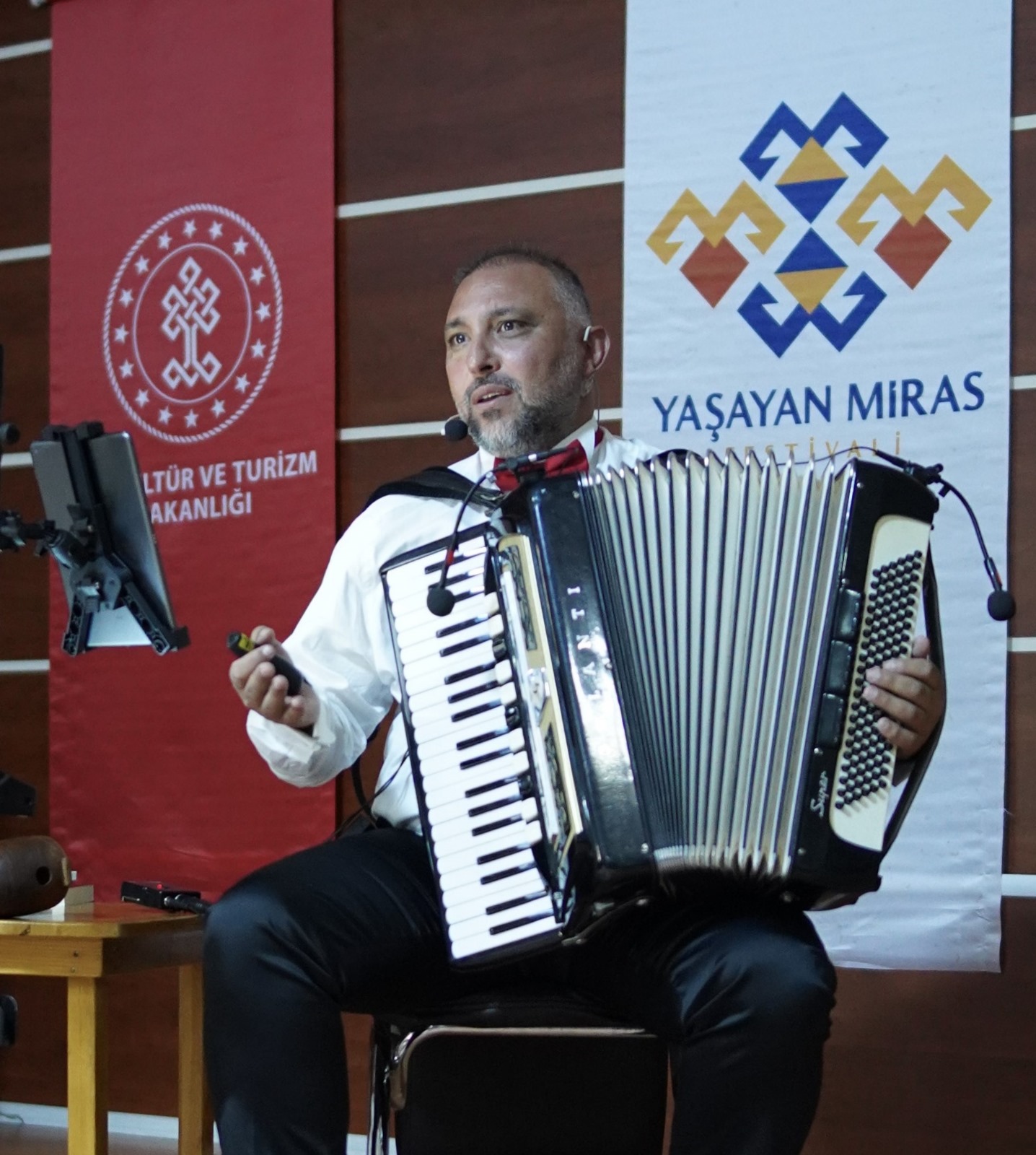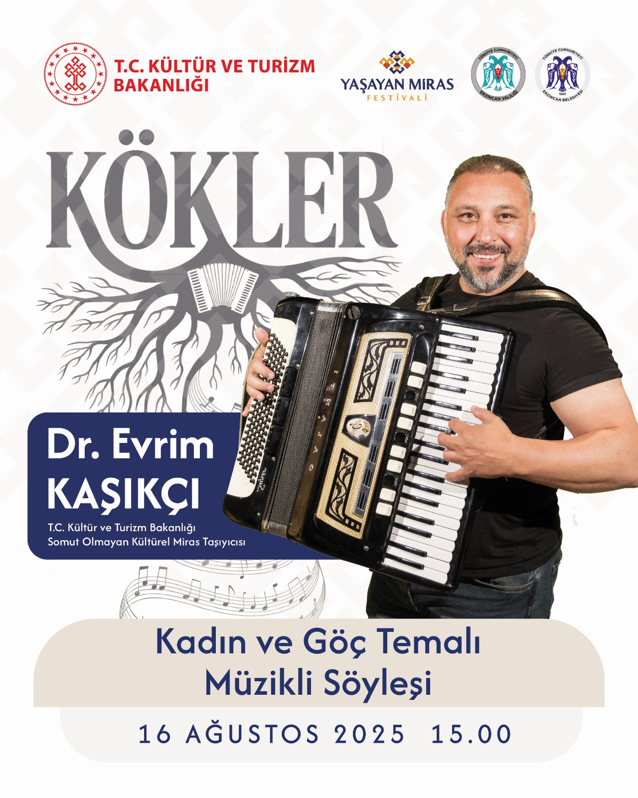 Türkiye Cumhuriyeti Kültür ve Turizm Bakanlığı “Somut Olmayan Kültürel Miras Taşıyıcısı” olan Dr. Evrim Kaşıkçı, Erzincan’da kültürümüzü temsil eden sanatçılar arasında yer aldı. İlk kez geçtiğimiz günlerde Lüleburgaz’da sahnelediği yeni tek kişilik kültürel gösterisi “Kökler” ile Erzincan’daki festivale de katılan Kaşıkçı’nın, Balkanlardan Anadolu’ya uzanan göç hikâyelerini müzik ve anlatıyla buluşturan projesi; akordeon eşliğinde türküler, anılar ve sahne hikâyeleriyle izleyicilere kimi zaman hüzünlü, kimi zaman neşeli bir yolculuk sunuyor. Somut olmayan kültürel mirası sahneye taşıyan bu özgün performans, izleyicilere hem tarihsel bir hafıza hem de canlı bir müzikal deneyim yaşatıyor.
