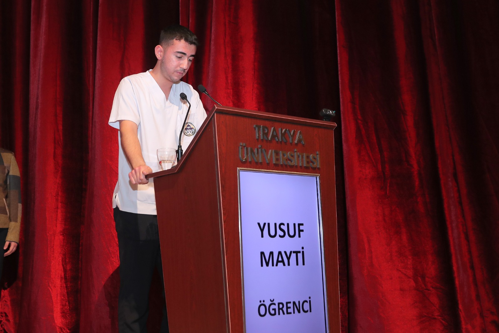 Sağlık Bilimleri Fakültesi’ne birinci sırada yerleşen Hemşirelik Bölümü öğrencisi Yusuf Mayti ise konuşmasında, hemşireliğin insan hayatına dokunma sorumluluğu taşıyan bir meslek olduğunu belirterek, mesleğini etik değerlere bağlı ve vicdanlı bir anlayışla sürdüreceğini ifade etti.