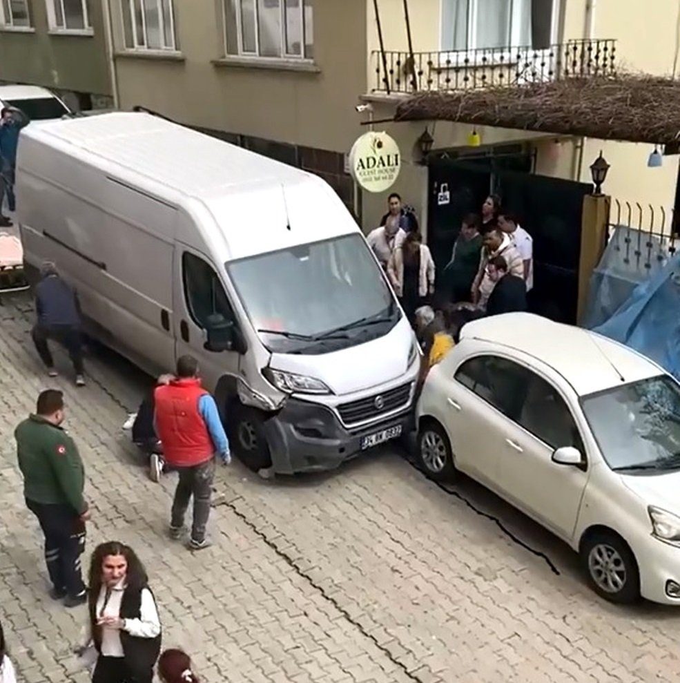 Olgay GÜLER Edirne’de, freni patlayıp sürücüsünün kontrolünden çıkan kapalı kasa minibüsün çarptığı 1’i çocuk 2 kişi yaralandı. Kaza, öğleden sonra Sarıcapaşa Mahallesi Şah Davut Sokak üzerinde meydana geldi. F.Y. idaresindeki kapalı kasa minibüs, freninin patlaması sonucu sürücüsünün kontrolünden çıkarak önce park halindeki 3 araca, ardından sokak üzerinde yürüyen A.Ö. (59) ve yanındaki çocuğa çarptı.