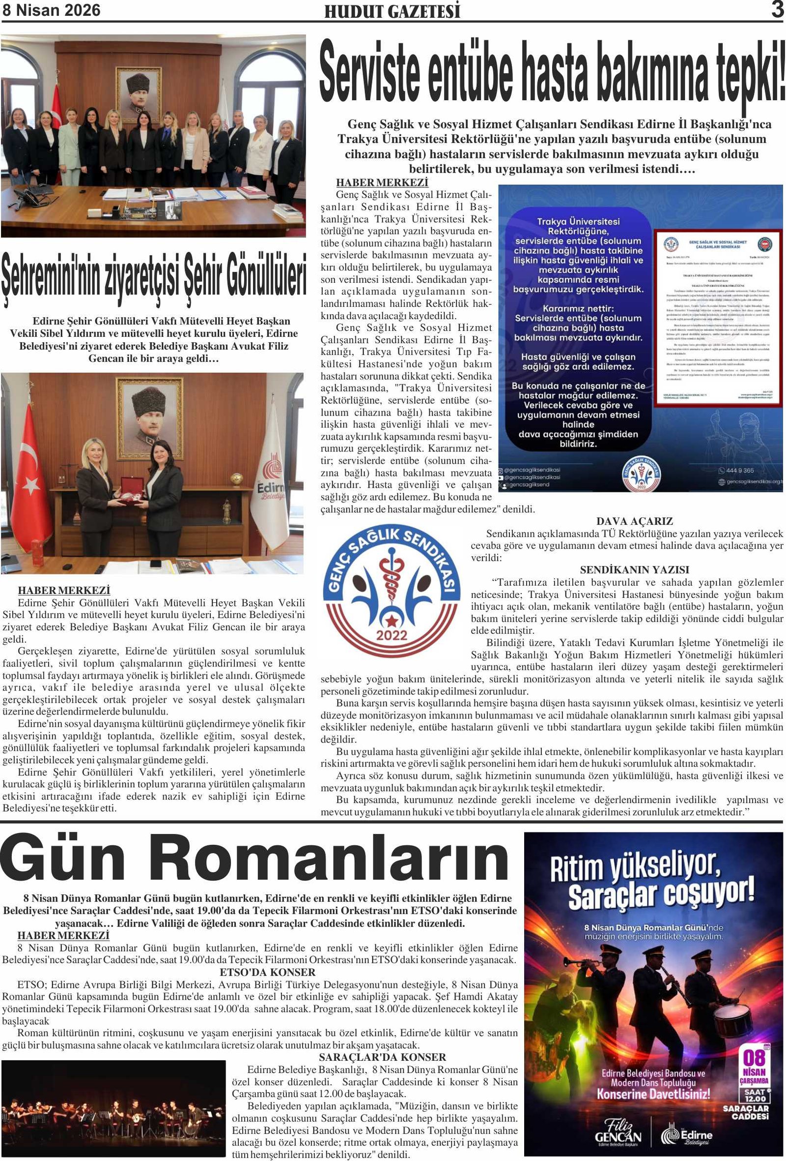 Edirne Belediye Başkanlığı, 8 Nisan Dünya Romanlar Günü’ne özel konser düzenledi. Saraçlar Caddesinde ki konser 8 Nisan Çarşamba günü saat 12.00 de başlayacak.