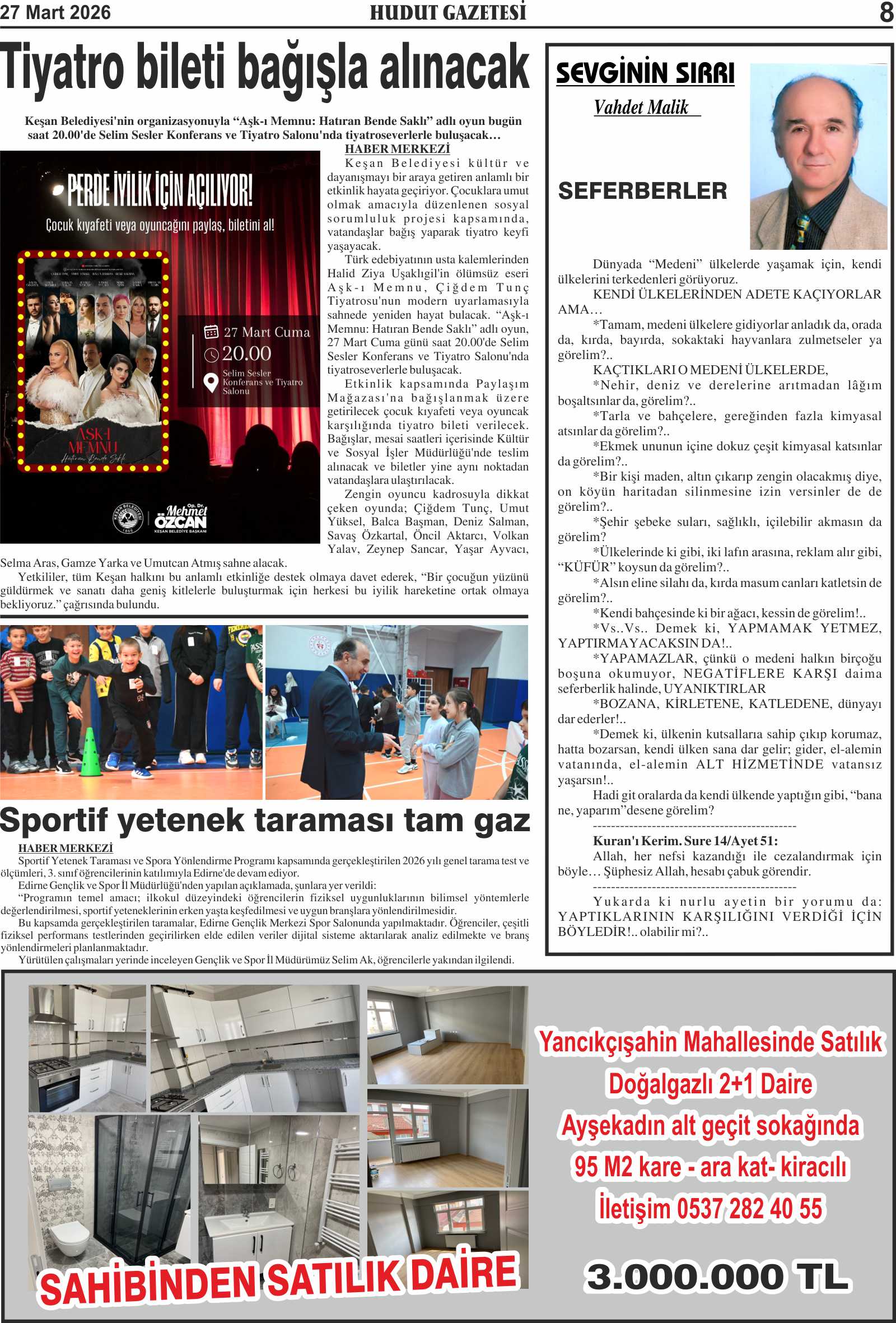 Keşan Belediyesi kültür ve dayanışmayı bir araya getiren anlamlı bir etkinlik hayata geçiriyor. Çocuklara umut olmak amacıyla düzenlenen sosyal sorumluluk projesi kapsamında, vatandaşlar bağış yaparak tiyatro keyfi yaşayacak.