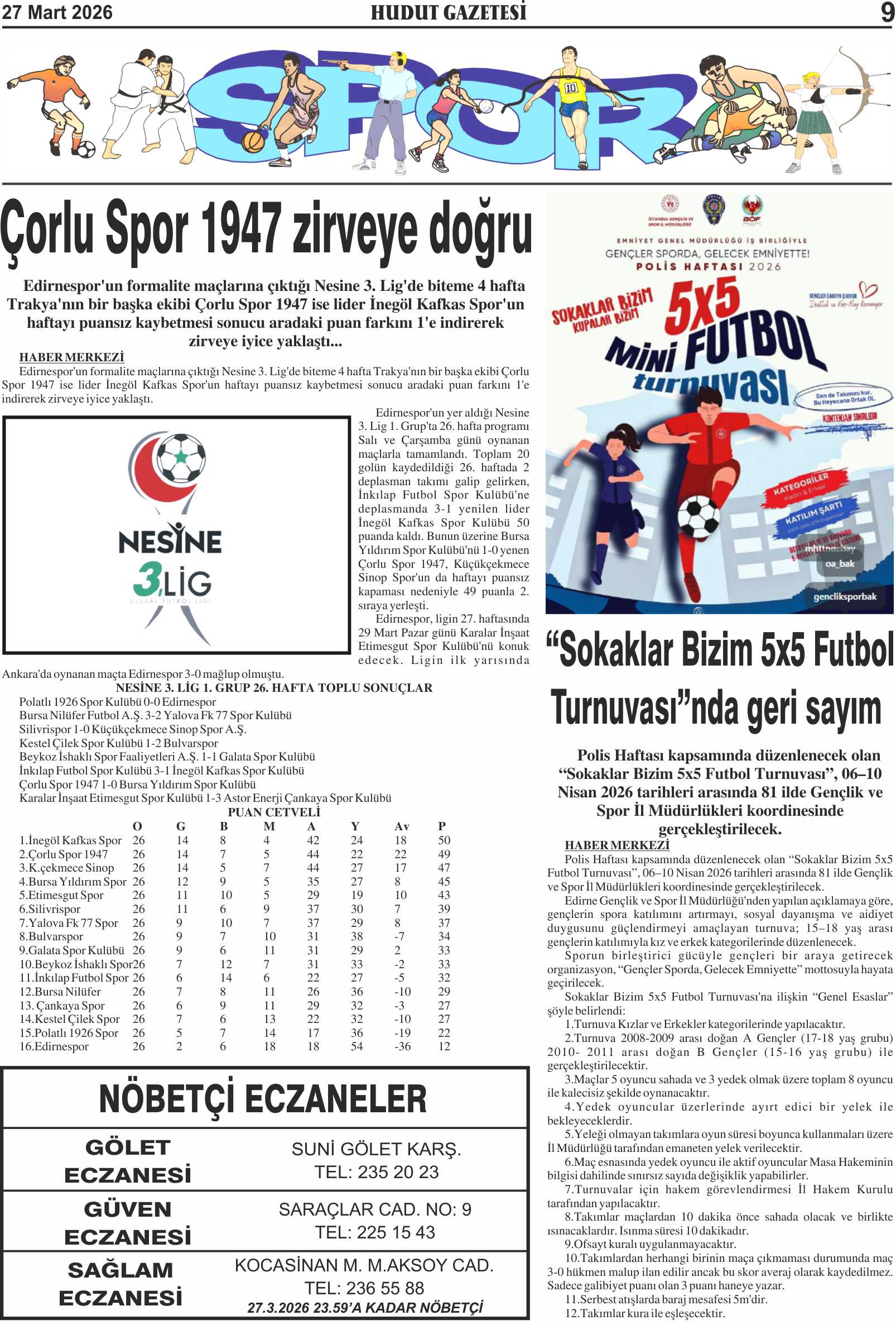 2025-2026 Futbol Sezonu U16 Türkiye Şampiyonası Birinci Kademe Grup Müsabakaları 24 grup merkezinden Edirne’de 4 takımın katılımıyla bugün başlıyor.