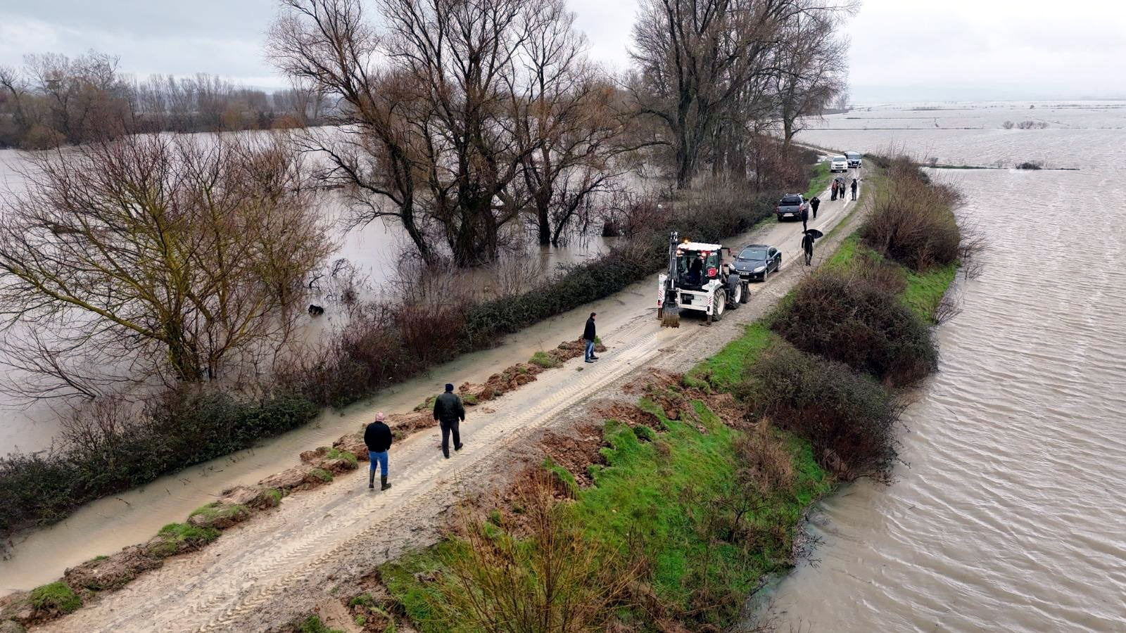 Edirne Valiliği tarafından taşkın riskine karşı yapılan açıklamada, Devlet Su İşleri ekiplerinin gece gündüz demeden çalışmalarını aralıksız sürdürdüğü belirtilerek, “DSİ ekiplerimiz, gece gündüz demeden ilimiz genelinde çalışmalarını aralıksız sürdürmektedir. Nehir yataklarında temizlik ve güçlendirme çalışmaları titizlikle yürütülürken, su seviyeleri anlık olarak takip edilmekte, riskli bölgelerde gerekli tüm önlemler hızla hayata geçirilmektedir. Meriç İlçesi Küplü, Subaşı ve Kadıdondurma köyleri yerleşim alanlarının taşkın sularından korunması amacıyla pompajlı tahliye çalışmaları yürütülmekte; Tunca Nehri boyunda bulunan yerleşim yerlerine su girişini engellemeye yönelik çalışmalar aralıksız devam etmektedir. Ayrıca Değirmenyeni Köyü Gölbaba mevkiinden köye su girişi, yol üzeri kapatılarak kontrol altına alınmıştır. Muhtemel taşkınlara karşı sahadaki çalışmalar kararlılıkla sürdürülürken, vatandaşlarımızın can ve mal güvenliğini korumak adına tüm ekiplerimiz teyakkuz halinde görev başındadır. Vatandaşlarımızın olası risklere karşı dikkatli ve tedbirli olmaları önemle rica olunur” denildi.