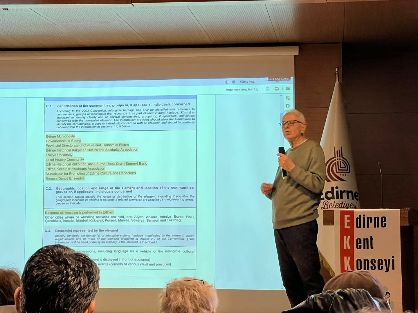 Şehir Plancısı Namık Kemal Döleneken ise UNESCO belgesinde Kırkpınar Yağlı Güreşleri’nin Edirne’de yapıldığına dair net bir vurgu bulunduğunu belirterek; “Bu yüzden herhangi bir kurum veya kuruluşun, ‘Kırkpınar’ı biz taşırız’ demesinin bir anlamı yok. Çünkü Kırkpınar Edirne’den taşınırsa bu listede kalamaz. Pehlivanlar dışında da ağa, cazgır, davul zurna ekibi, yağcılar ve peşkircilerinin geleneksel kıyafetler giydiğinin vurguluyor. Bu figürler, Kırkpınar’ın vazgeçilmez unsurlarıdır. Bunlar olmazsa olmaz ve geleneksel kıyafet giymezse de olmaz” şeklinde konuştu.