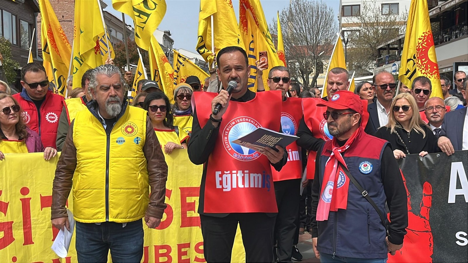 Şube Başkanı Ahmet Acet de, eğitimin, bir güvenlik meselesine indirgenemeyecek kadar yaşamsal, piyasa ilişkilerine terk edilemeyecek kadar kamusal bir hak olduğunu kaydederek, “Öğrencilerin ve eğitim emekçilerinin can güvenliğini, fiziksel ve ruhsal bütünlüğünü korumak kamusal sorumluluğun en temel gereğidir. Bugün en temel sorumluluğunu yerine getiremeyen, eğitim emekçilerini ve öğrencilerin güvenliğini sağlayamayan kurumları ve yöneticileri kamuoyu önünde hesap vermeye çağırıyoruz.  Biz bu ülkenin eğitim emekçileri olarak yalnızca eleştirmiyoruz; çözüm üretiyoruz, yol gösteriyoruz, sorumluluk alıyoruz. Aylar değil, yıllardır söylüyoruz: Okullarda güvenlik tesadüfe bırakılamaz. Kadrolu güvenlik görevlisinden rehberlik hizmetlerine, psikososyal destekten sağlıklı beslenmeye kadar dile getirdiğimiz tüm talepler; sadece fiziki iyileştirme talepleri değildir. Bunlar, öğretmenin can güvenliğini, meslek onurunu ve öğrencinin yaşam hakkını koruma mücadelesidir” şeklinde konuştu.