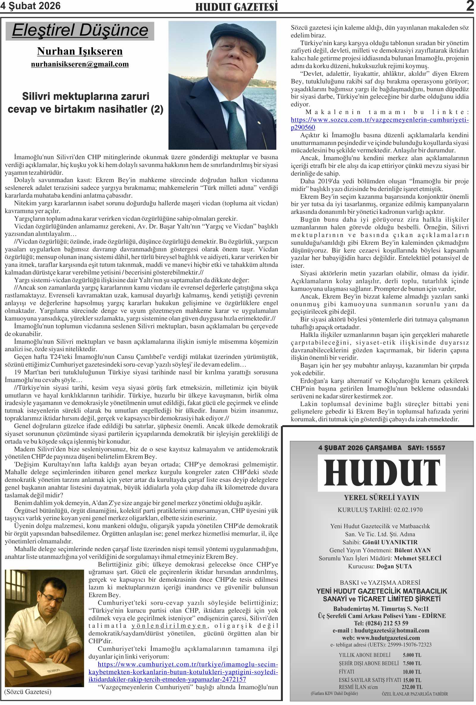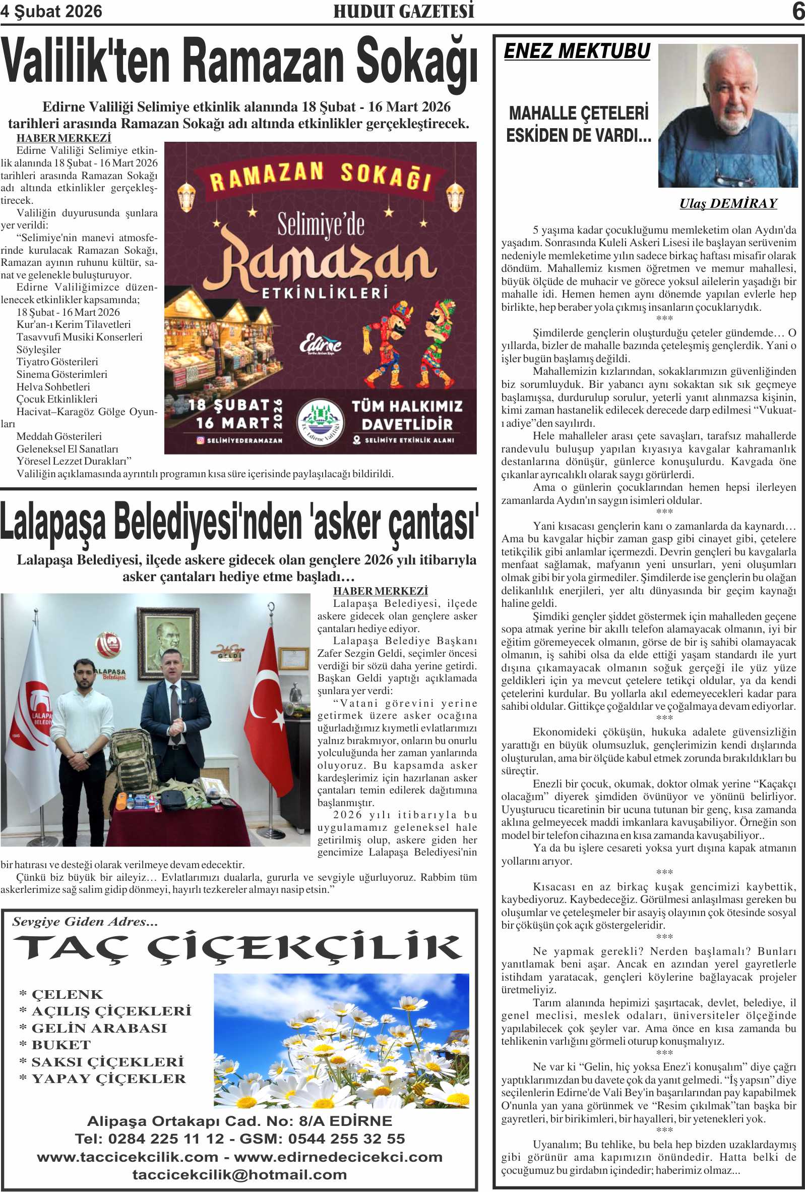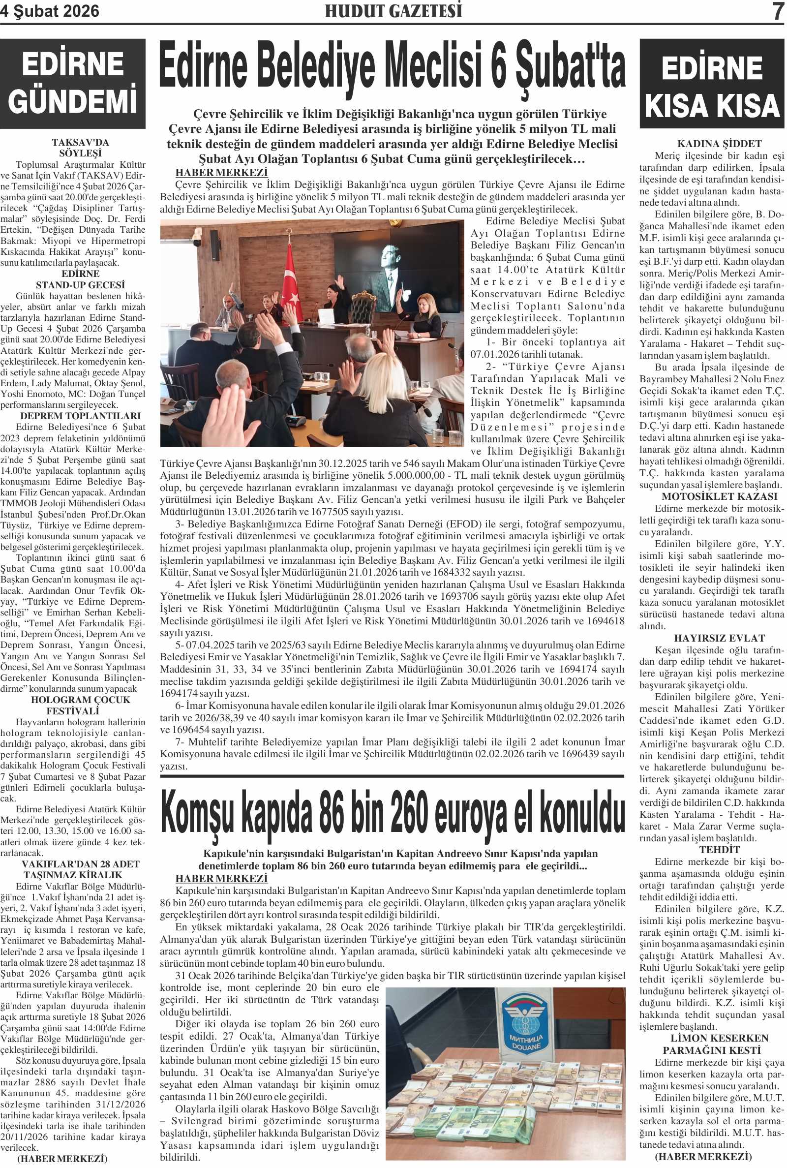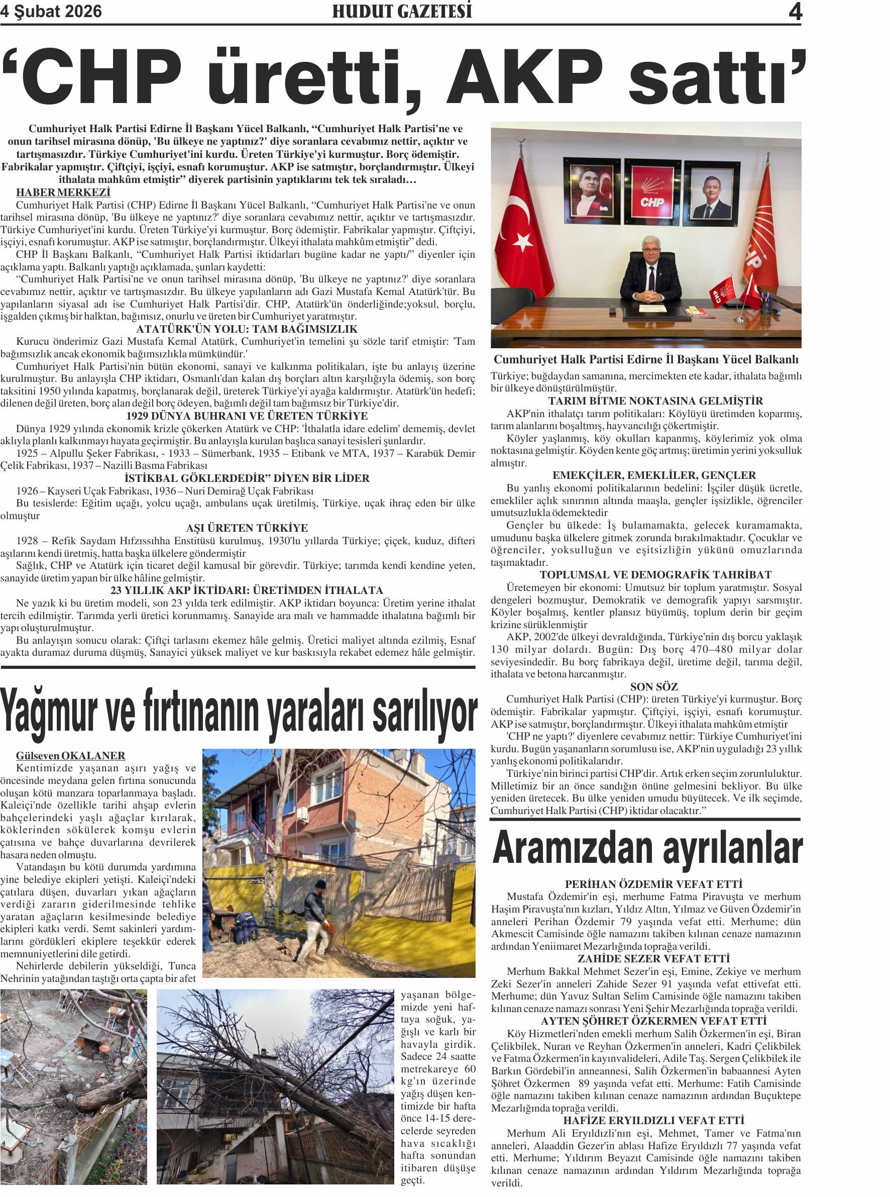 4 Şubat 2026 Çarşamba Hudut Gazetesi