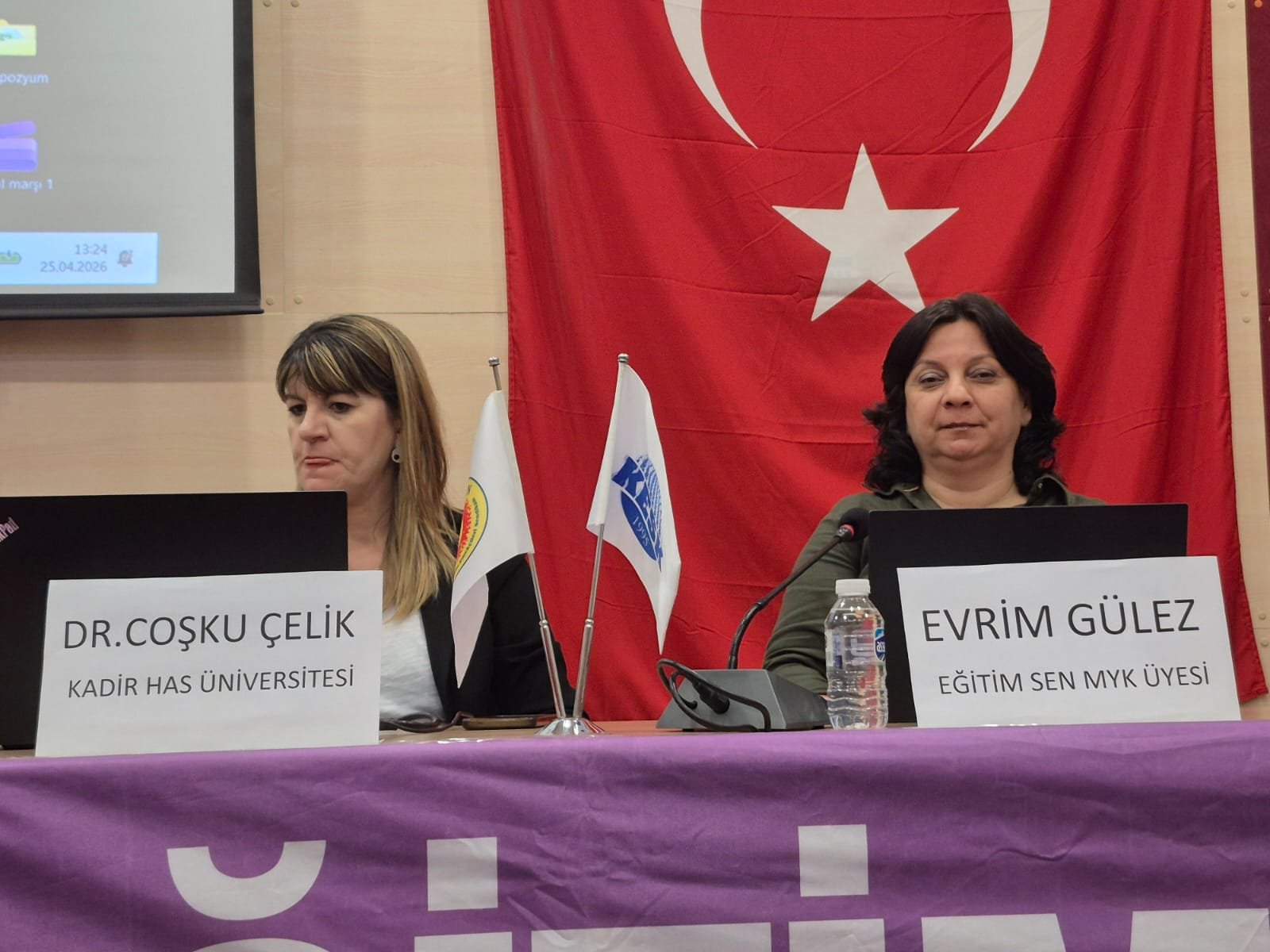 Açılış konuşmasının ardından başlayan panelde ilk olarak Dr. Coşku Çelik, “Emek ve Toplumsal Cinsiyet Eşitliği” üzerine bir sunum gerçekleştirdi. Çelik, çalışma yaşamındaki cinsiyet temelli eşitsizliklere ve bu durumun toplumsal yansımalarına dikkat çekti. Programın ikinci bölümünde ise Evrim Gülez, “Laiklik ve Kamusal Eğitimin Tasfiyesi” başlıklı sunumuyla, son dönemde eğitim sisteminde yaşanan değişimleri ve laik eğitimin neden vazgeçilmez olduğunu örneklerle anlattı.