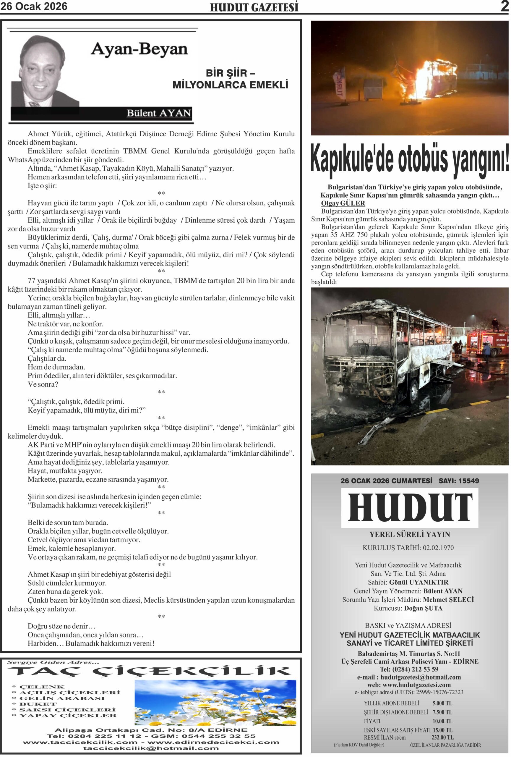 26 Ocak 2026 Pazartesi