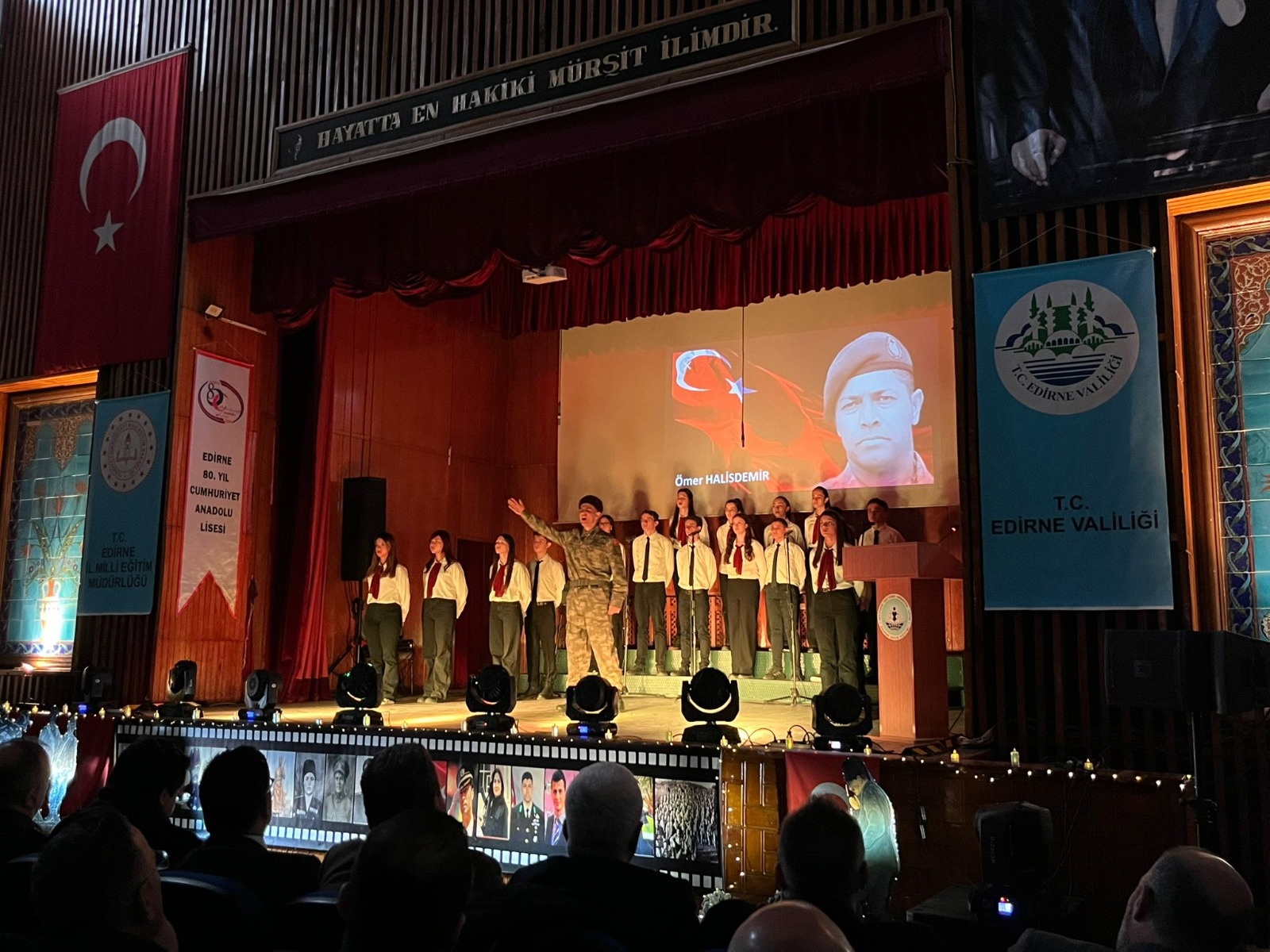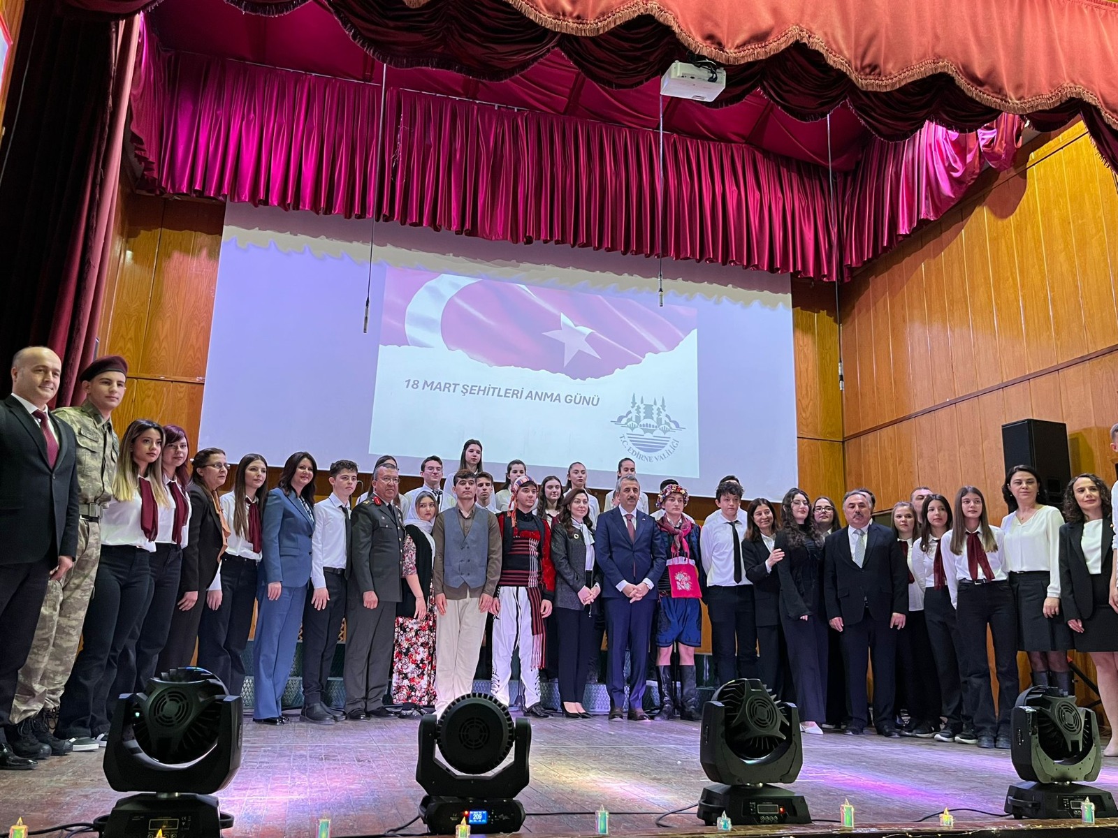 Edirne’deki tören, Balkan Savaşı ve Birinci Dünya Savaşı sırasında şehit düşen askerlerin bulunduğu Asker Hastanesi Şehitliği’nde gerçekleştirildi. Törene Edirne Valisi Yunus Sezer, AK Parti Edirne Milletvekili Fatma Aksal, İYİ Parti Edirne Milletvekili Mehmet Akalın, Edirne Belediye Başkanı Filiz Gencan, Garnizon Komutanı Tuğgeneral Yüksel Kolcu, askeri ve adli erkan, kamu kurum ve kuruluş ile sivil toplum kuruluşu temsilcileri ve vatandaşlar katıldı. Şehitlik anıtına çelenk sunumuyla başlayan törende saygı duruşu eşliğinde 54’üncü Mekanize Piyade Tugay Komutanlığı’na bağlı askerlerce saygı atışı yapıldı.