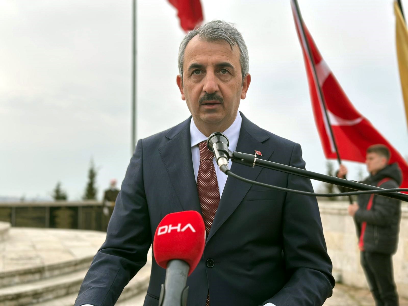 İstiklal Marşı’nın okunmasının ardından Edirne Valisi Yunus Sezer, şehitlik defterini imzaladı. Vali Sezer buradaki konuşmasında, şehitlik makamının önemine değinerek, “Tarihimizin derin izlerini taşıyan ve on binlerce şehidin bulunduğu Edirne Asker Hastanesi Şehitliği’nde bulunmanın onurunu, hüznünü ve aynı zamanda da büyük bir sorumluluğunu yürekten hissediyoruz. Bu mukaddes mekan yalnızca bir şehitlik değil, milletimizin bağımsızlık uğruna gösterdiği fedakarlığın, sabrun ve sarsılmaz imanın eşsiz ve sessiz fakat güçlü bir şahididir. Edirne Asker Hastanesi Şehitliği özellikle Balkan Savaşları ve Birinci Dünya Savaşı başta olmak üzere vatan savunması uğruna cephelerde yaralanan askerlerimizin hastanelerde tedavi görürken şehadete yürüyen kahraman Mehmetçiklerimizin ebedi istirahatgahıdır. Türk İslam medeniyetinde şehitlik ve vatan kavramı tarih boyunca en yüce değerler arasında yer almıştır. İnancımızda şehitlik, Allah katında en yüksek mertebelerden biri olarak kabul edilmiştir. Vatan ise uğruna can verilebilecek en mukaddes emanetlerden biridir. Bu anlayış asırlardır milletimizin karakterine işlemiş, Malazgirt’ten Çanakkale’ye, Sakarya’dan Kıbrıs’a ve 15 Temmuz’a kadar uzanan büyük bir direniş ve varoluş iradesinin temelini oluşturmuştur. Bugün de aynı ruh ve inançla yolumuza devam ediyoruz” dedi.