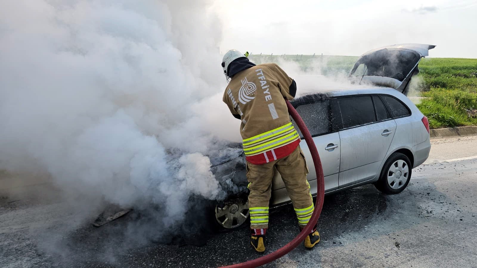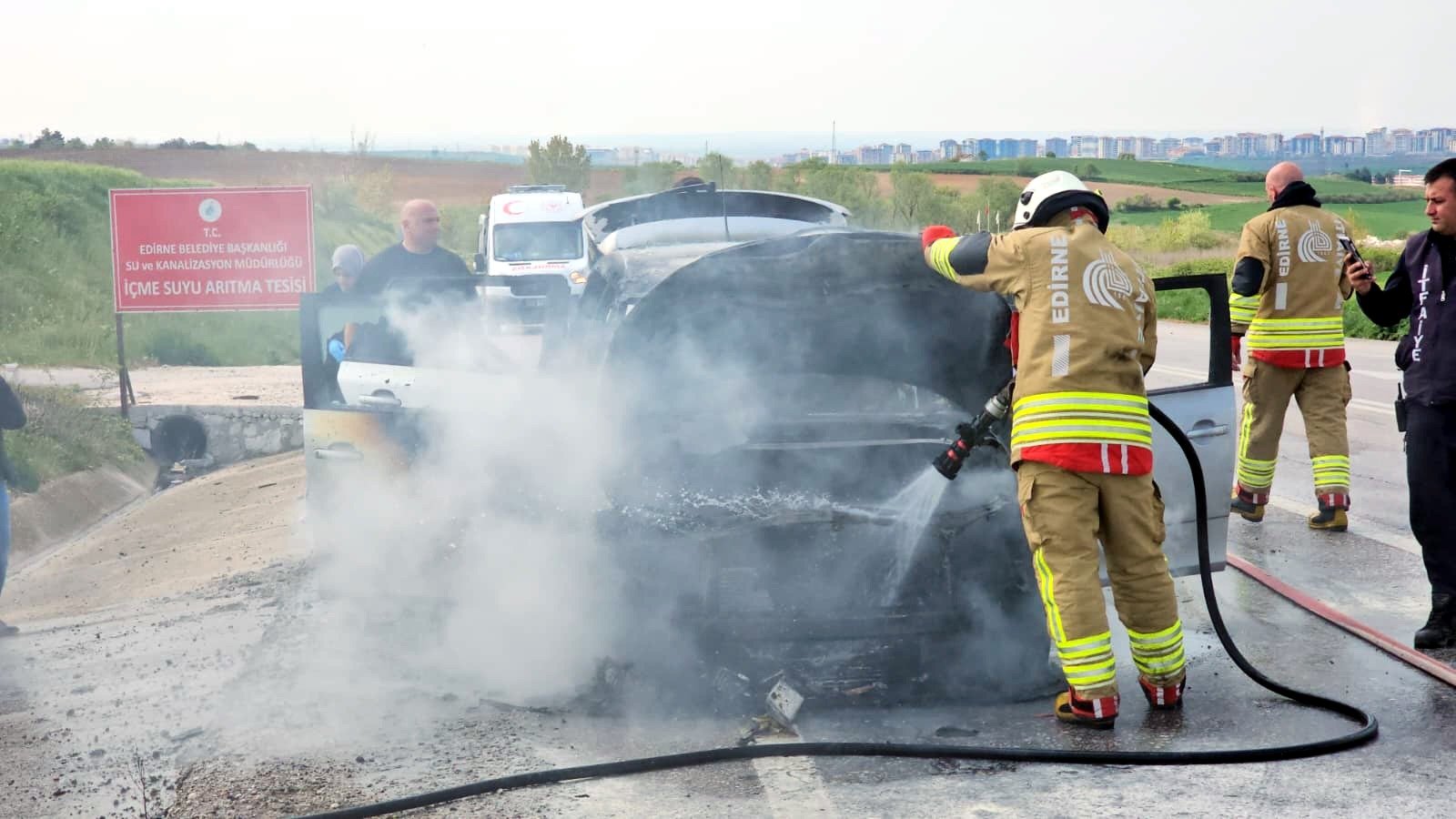 Olay, Edirne-Lalapaşa D100 karayolunun Hasanağa köyü yakınlarında meydana geldi. F.M. idaresindeki IF 32 GBR Romanya plakalı otomobilden, seyir halindeyken henüz belirlenemeyen nedenle alevler yükselmeye başladı. Sürücü, otomobili yol kenarına çekerek kendisini dışarı attı.