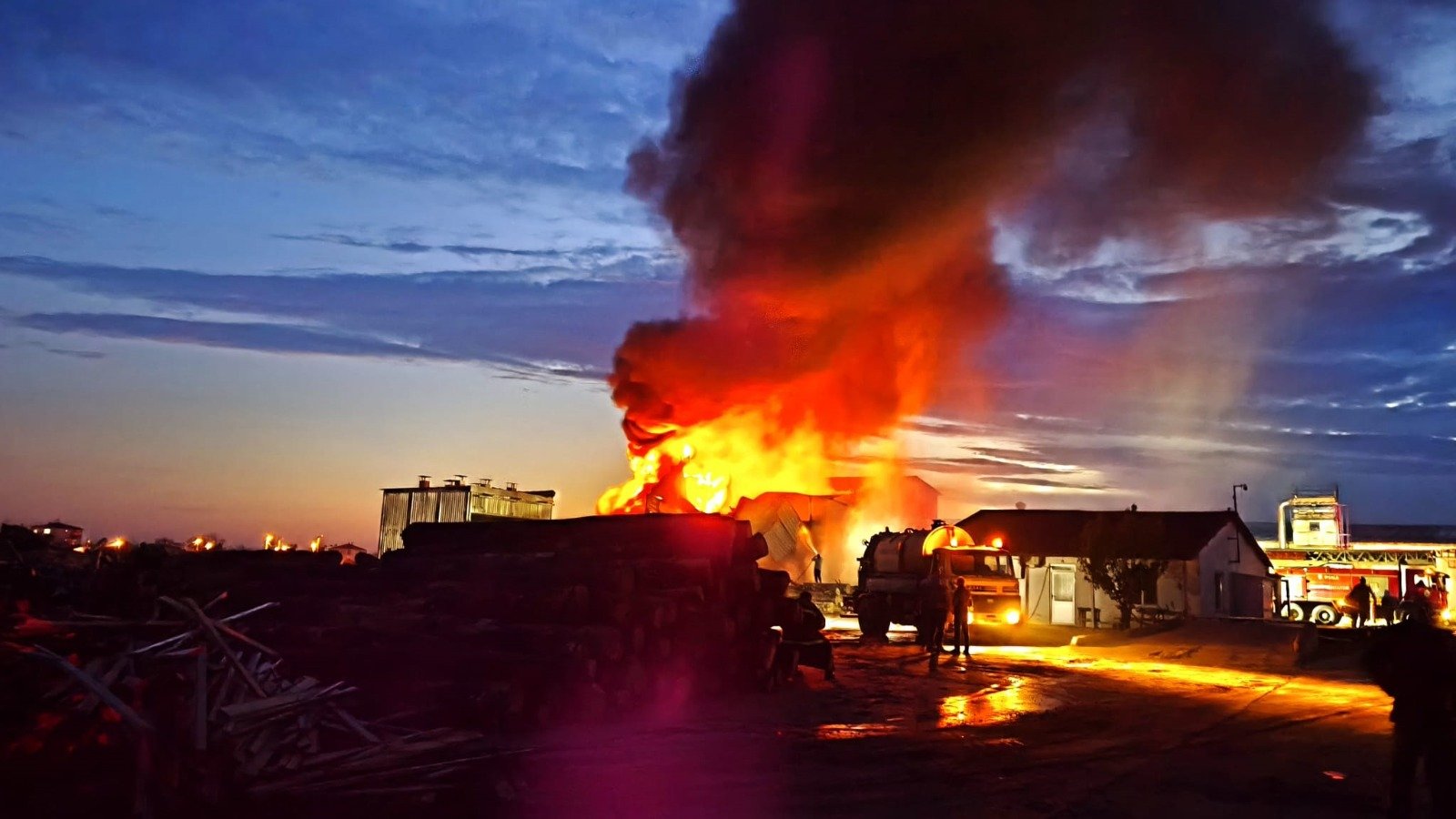 Edirne’nin İpsala ilçesine bağlı Paşaköy’deki kereste fabrikasında, yağ kazanında meydana gelen patlamanın ardından yangın çıktı.