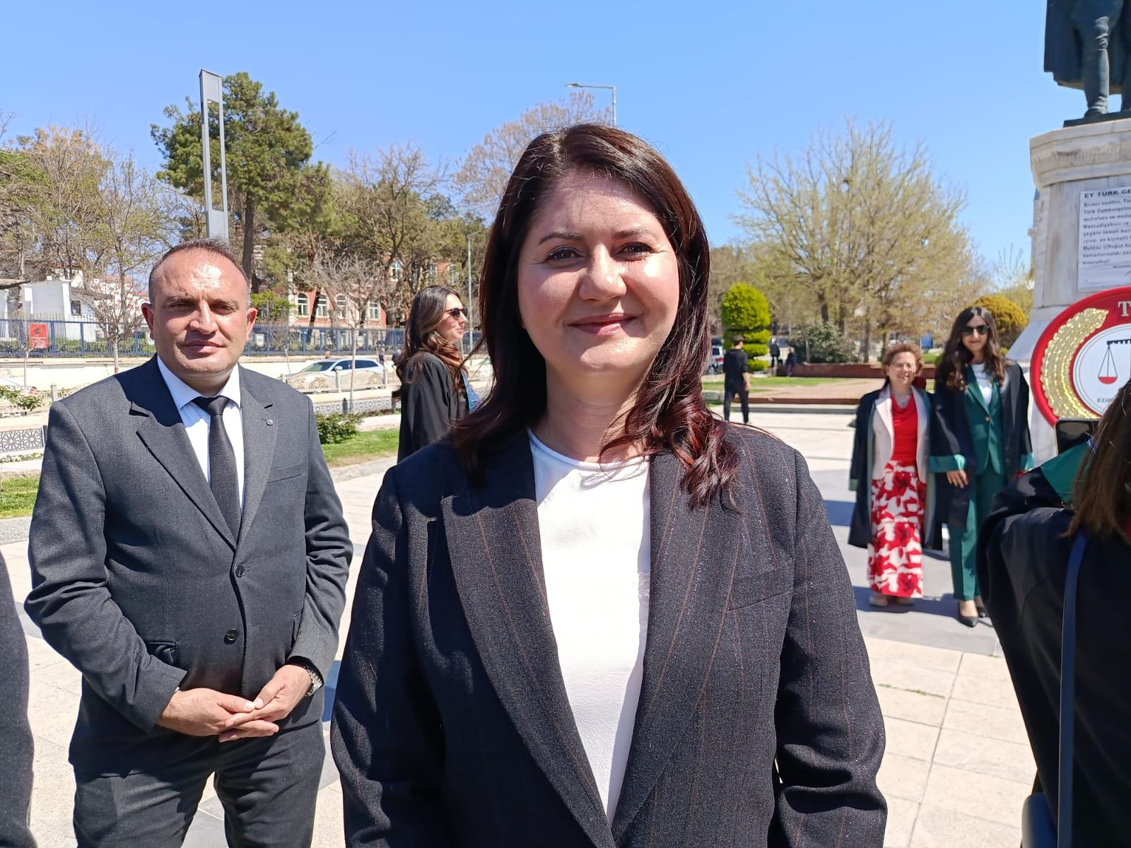Törenin ardından konuşan, kendisi de Avukat olan Edirne Belediye Başkanı Filiz Gencan da, “Öncelikle bugün, 5 Nisan Avukatlar Günü kapsamında Edirne Baromuzla birlikte Ata’mızın huzurunda törenimizi gerçekleştirdik. Bu vesileyle tüm meslektaşlarımın Avukatlar Günü’nü kutluyorum. Elbette bugün bir yandan Avukatlar Günü’nü kutlarken, diğer yandan meslektaşlarımızın çalışma koşullarındaki zorlukları ve ülkemizin içinde bulunduğu hukuki sorunları da göz ardı etmiyoruz. Bu sorunların bir an önce çözülmesi adına mücadelemizi sürdürdüğümüzü özellikle ifade etmek istiyorum. Az önce Baro Başkanımızın yaptığı açıklamada da vurguladığı gibi; gözaltı süreçleri, tutukluluk halleri ve ifade özgürlüğüne yönelik müdahaleler, Türkiye Cumhuriyeti’ne zarar vermektedir. Bu süreçlerde bizler de tüm meslektaşlarımızla birlikte savunma hakkının kutsallığını rehber edinerek mücadelemize kararlılıkla devam edeceğiz” dedi.