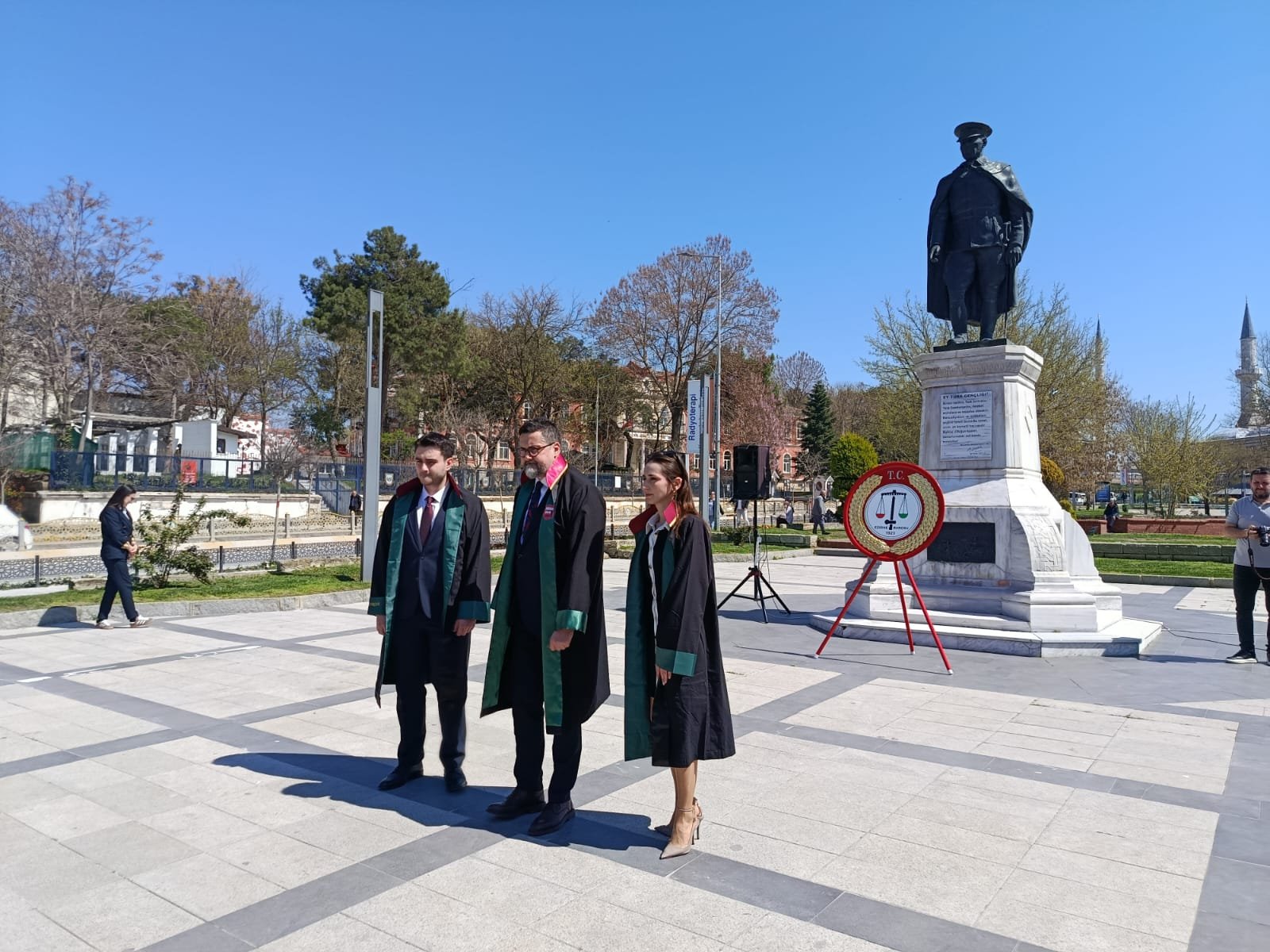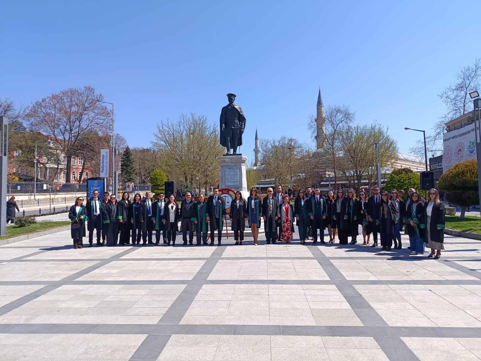 Edirne Barosu tarafından, 5 Nisan Avukatlar Günü dolayısıyla Atatürk Anıtı’nda tören düzenledi. Törene Edirne Belediye Başkanı Av. Filiz Gencan, Edirne Barosu Başkanı Av. Gökhan Karakoç, baro yönetim kurulu üyeleri ve çok sayıda avukat katıldı. Anıta çelenk sunulmasının ardından Baro Başkanı Karakoç konuşma yaptı.
