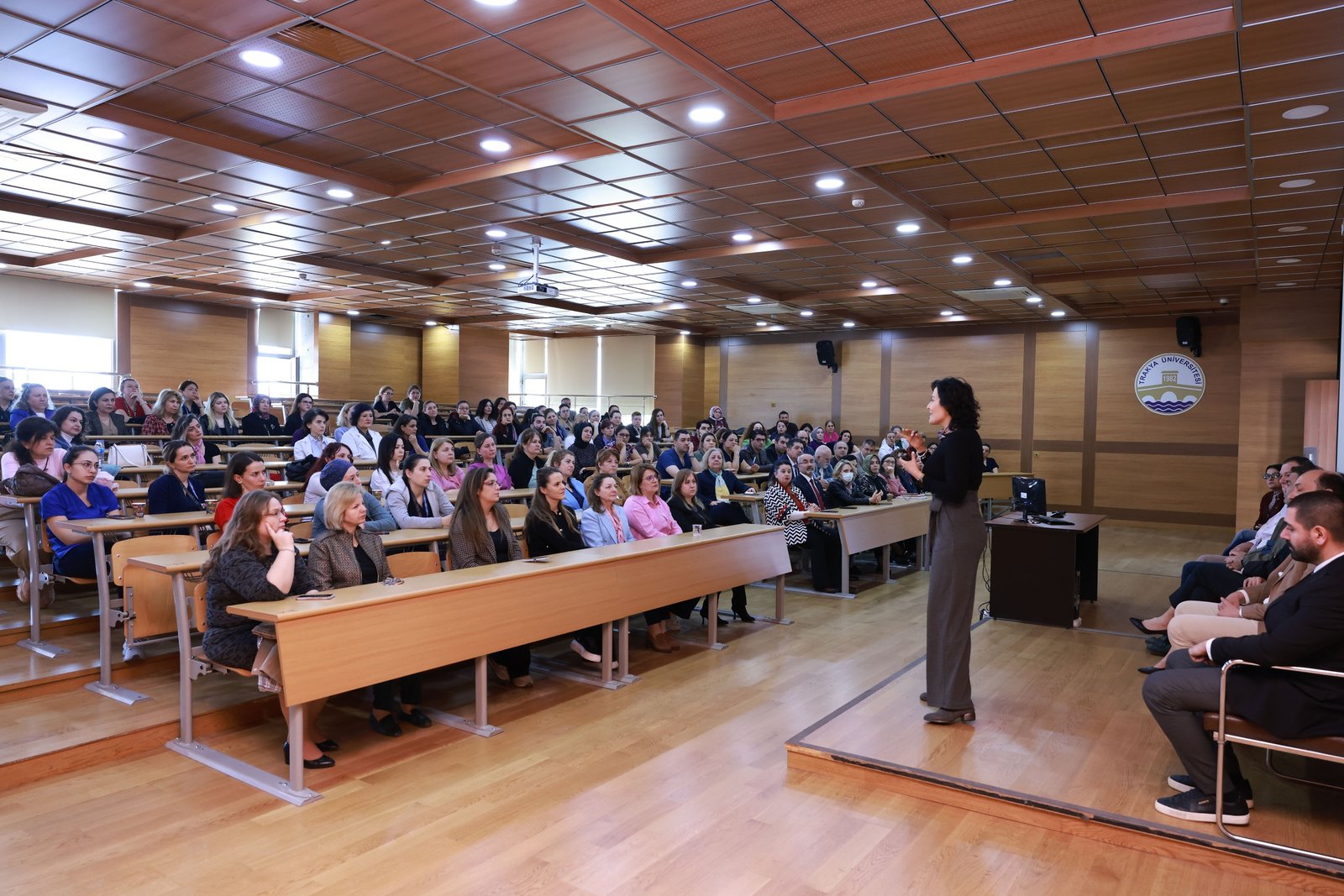 Söyleşiye, Trakya Üniversitesi Hastanesi Başhekimi Prof. Dr. Alkin Çolak, Eczacılık Fakültesi Dekanı Prof. Dr. Elvan Bakar, Öğrenci İşleri Daire Başkanı Nurdan Cankaya ile akademisyenler, idari personel ve öğrenciler katıldı.