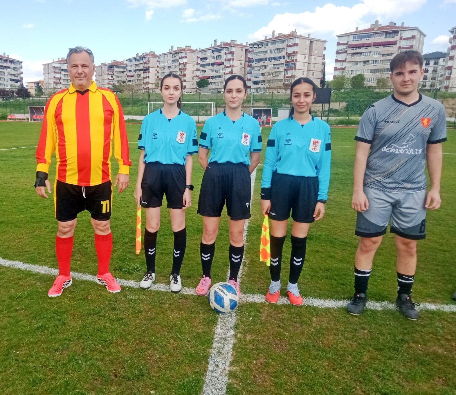 Kadın hakemler Dilan Altın, Sıla Bat ve Dilan Tunç’un yönettiği maçta lisenin mezunları ile öğrencilerin oluşturduğu takımlar karşı karşıya geldi.