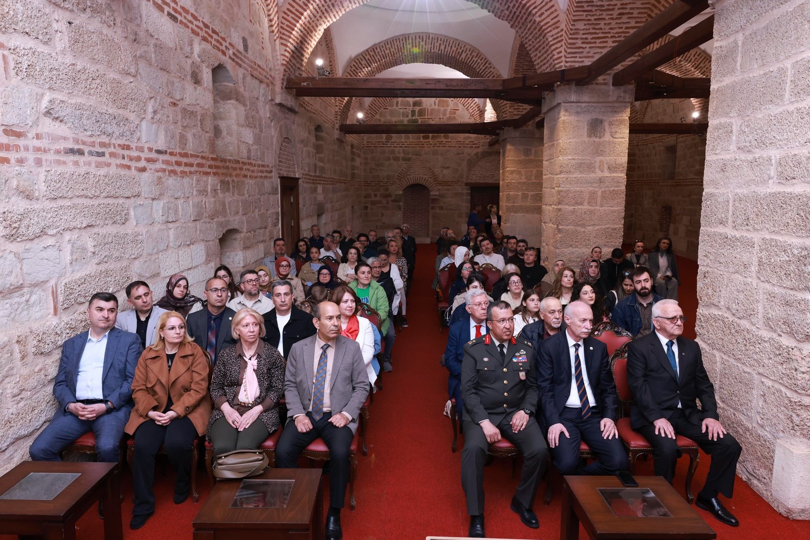 Etkinliğe; Edirne Garnizon Komutanı Tuğgeneral Yüksel Kolcu, Edirne İl Emniyet Müdürü Muhittin Ayhan, İl Kültür ve Turizm Müdürü Kemal Soytürk, Edirne Vakıflar Bölge Müdürü Ahmet Saraç, Eczacılık Fakültesi Dekanı Prof. Dr. Elvan Bakar, Rektör Danışmanı Genel Sekreter Yardımcısı Doç. Dr. Ali İhsan Meşe, il protokol üyeleri, daire başkanları, akademisyenler ve vatandaşlar katıldı.