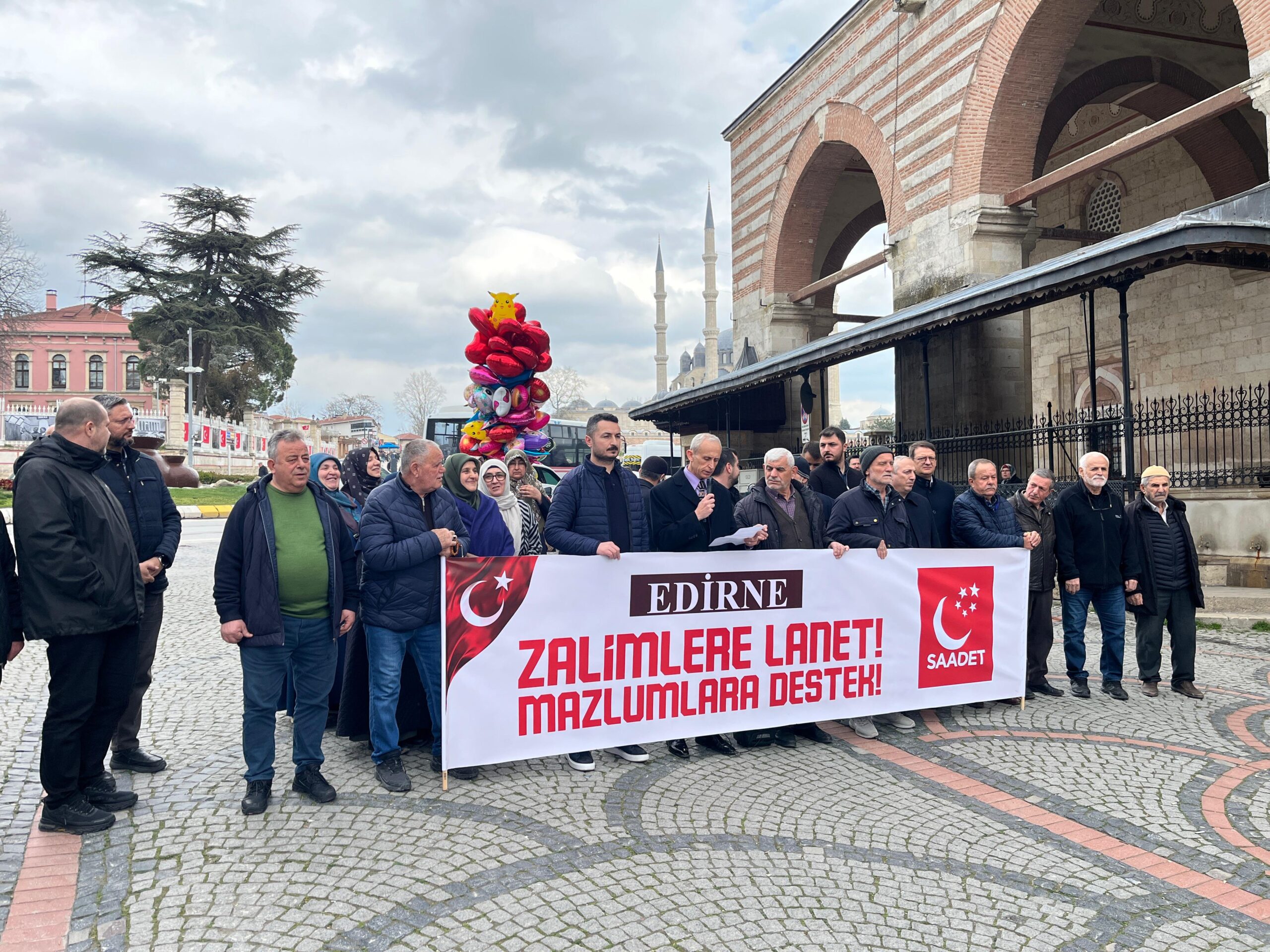 Saadet Partisi İl Başkanlığı tarafından, Cuma namazı çıkışında basın açıklaması gerçekleştirildi. Parti İl Başkanı Tezcan Karakütük’ün okuduğu açıklamaya, il yönetimi ve partililer destek verdi. Karakütük, açıklamada ABD ve İsrail saldırılarına tepki gösterirken, sürdürülen tarafsızlık politikasını da eleştirip, yaptırımlar uygulanması gerektiğini söyledi.