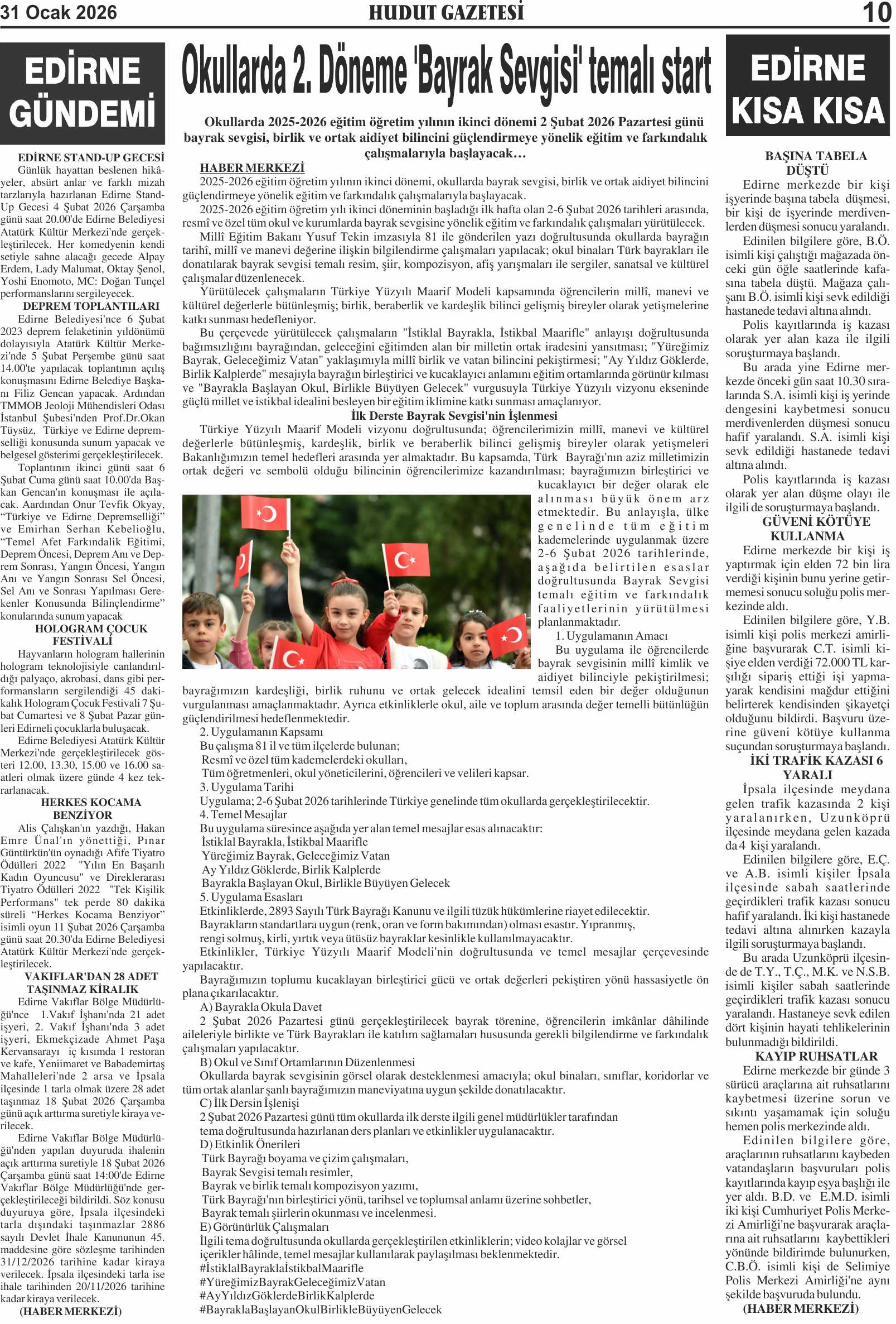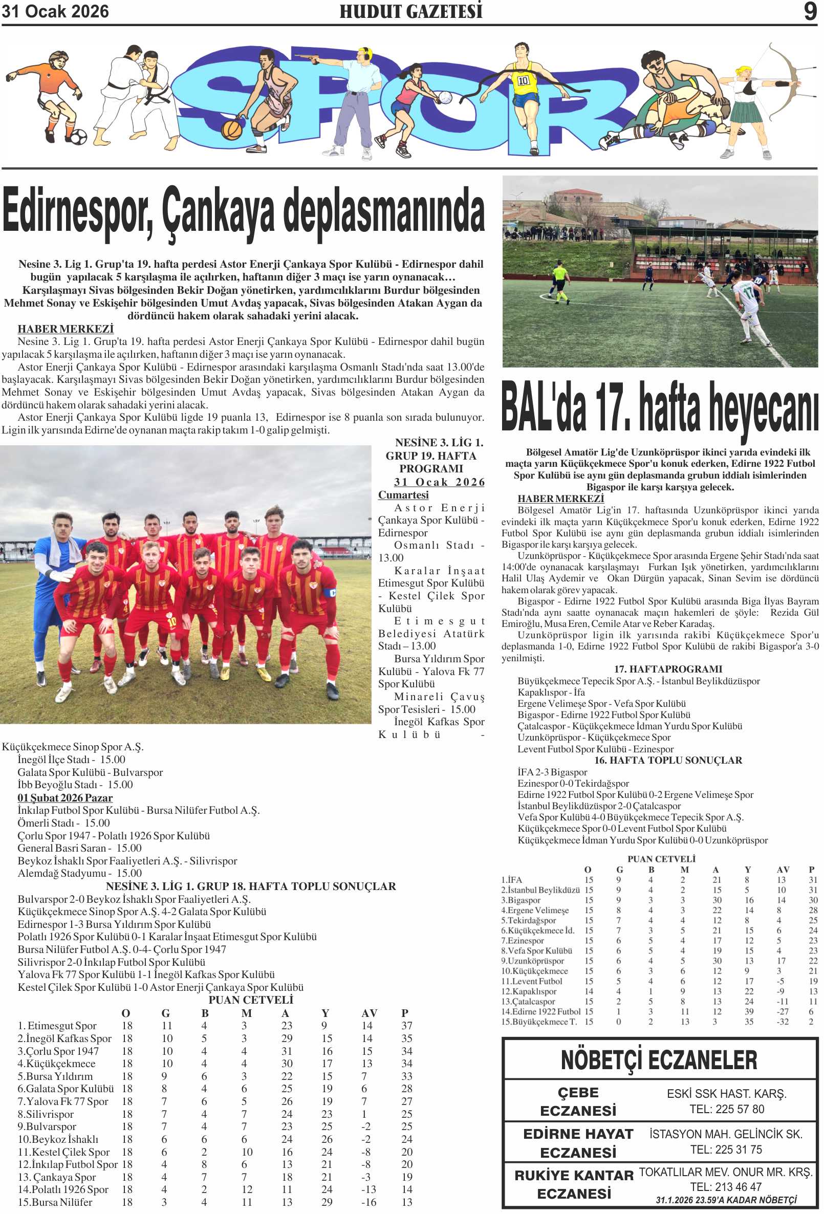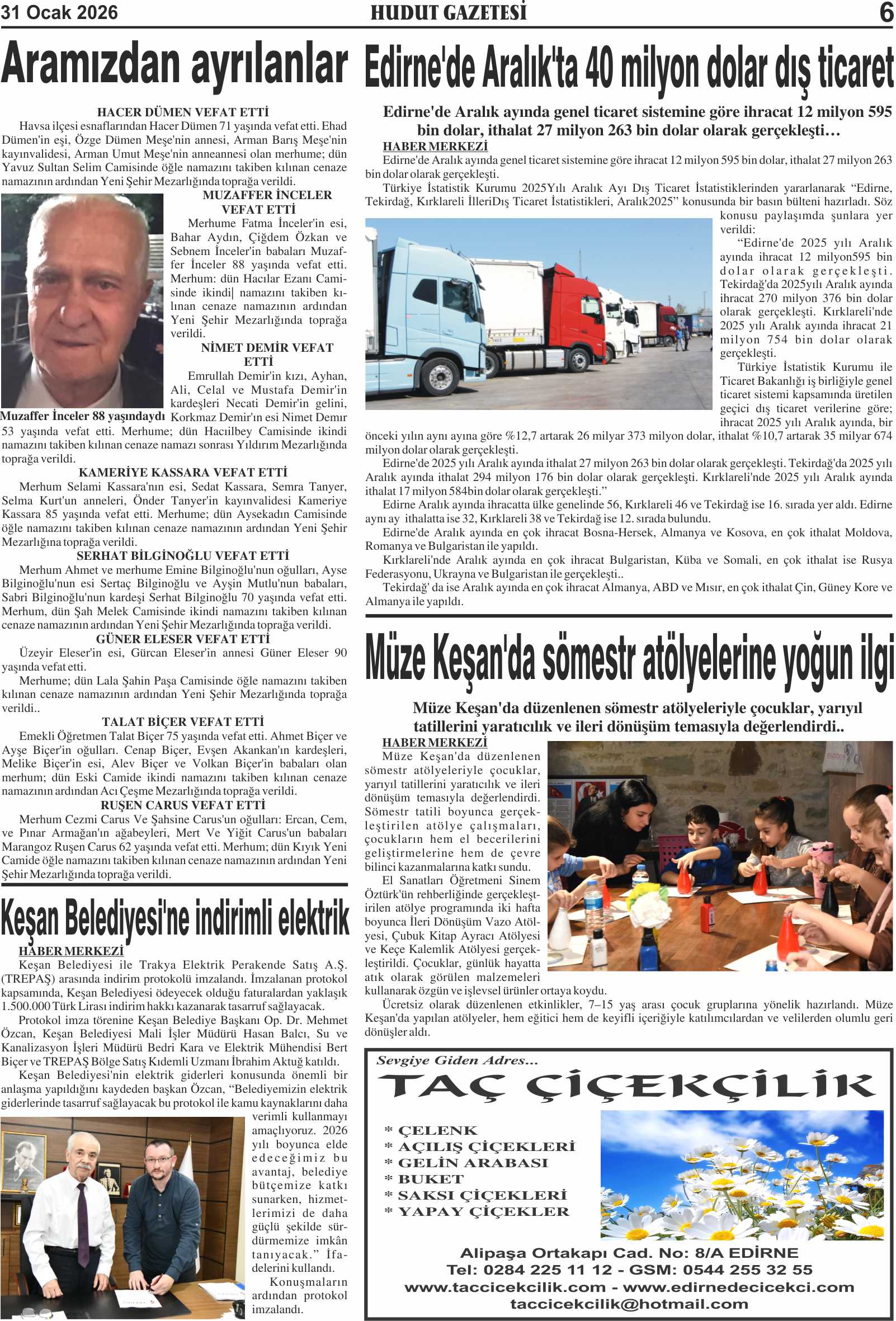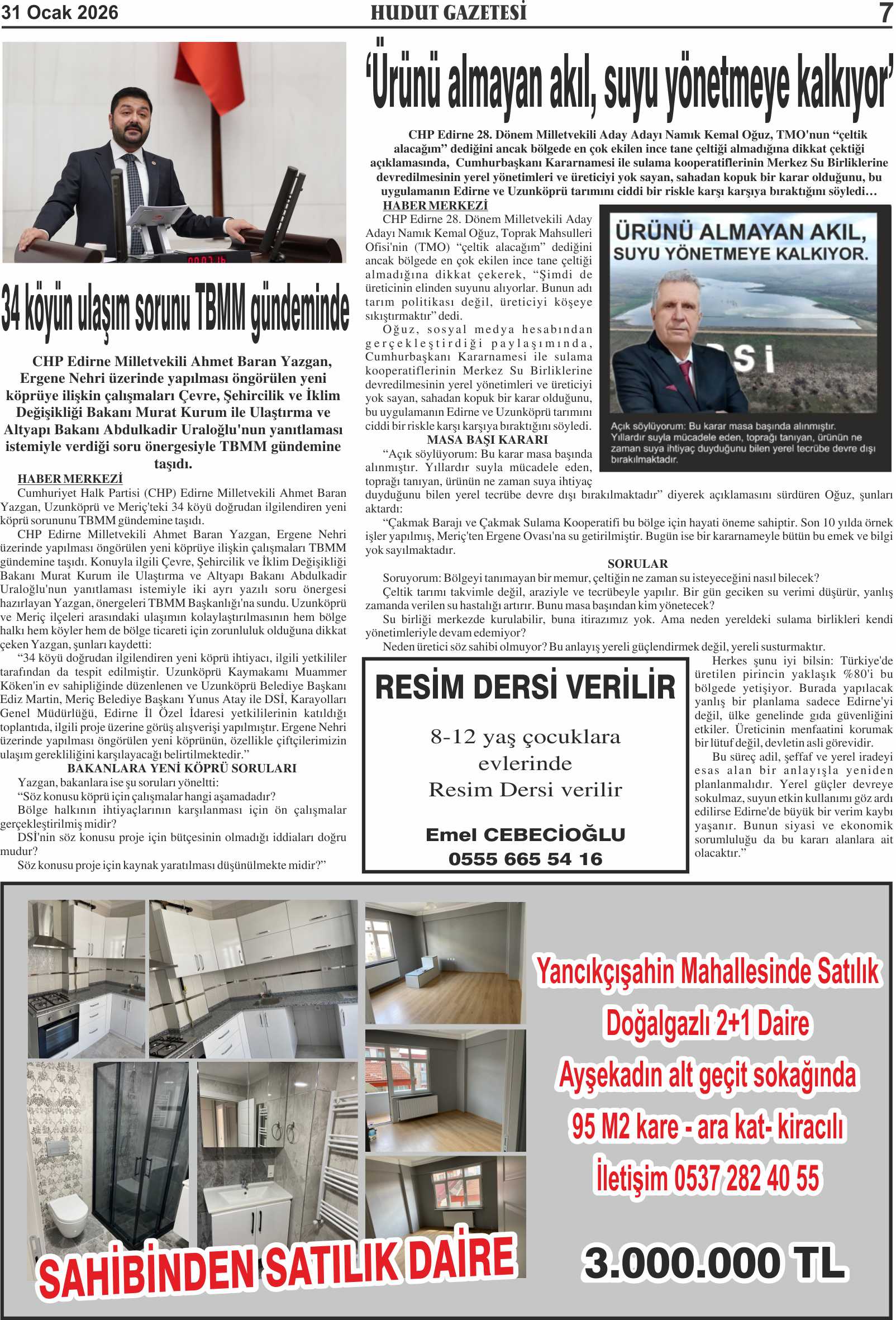 31 Ocak 2026 Cumartesi Hudut Gazetesi