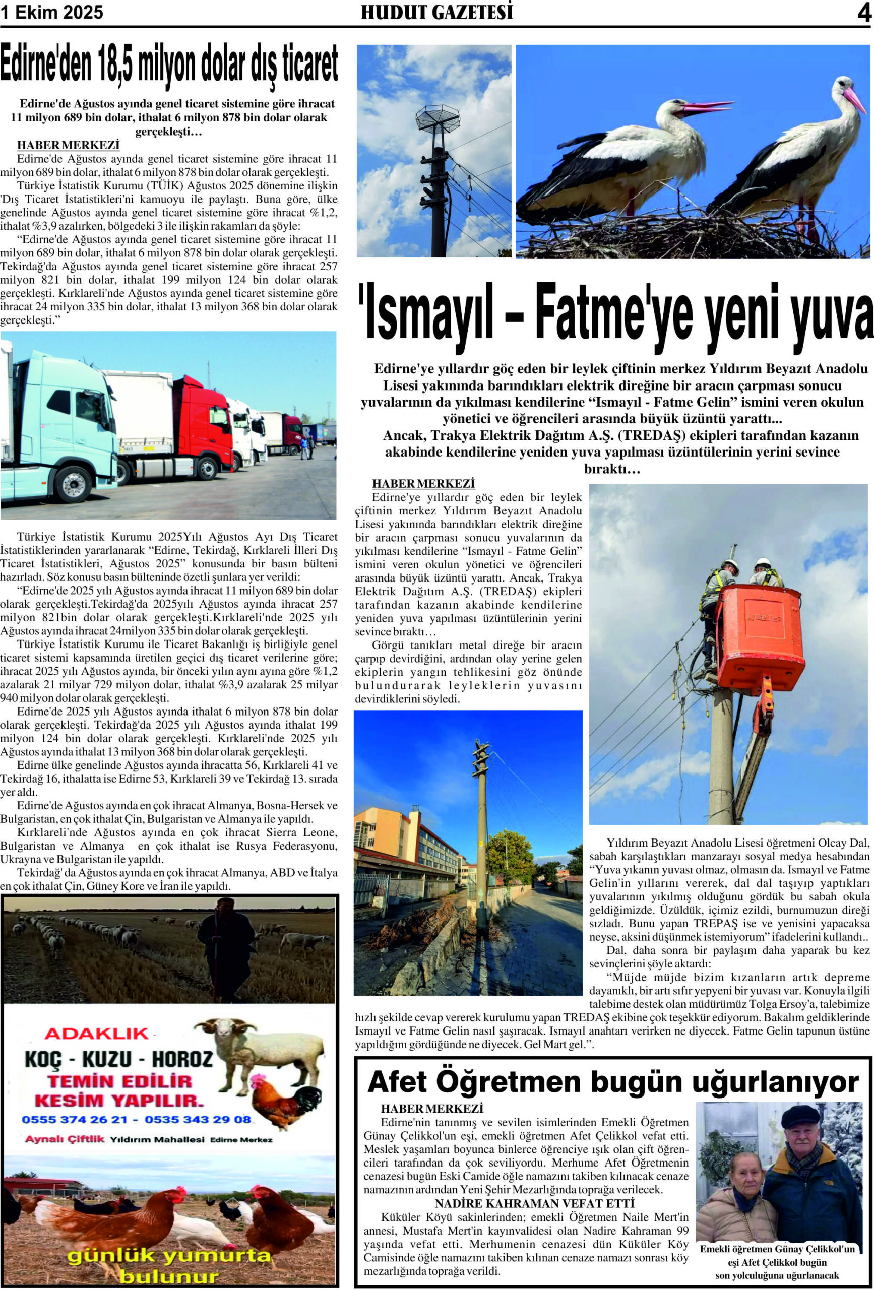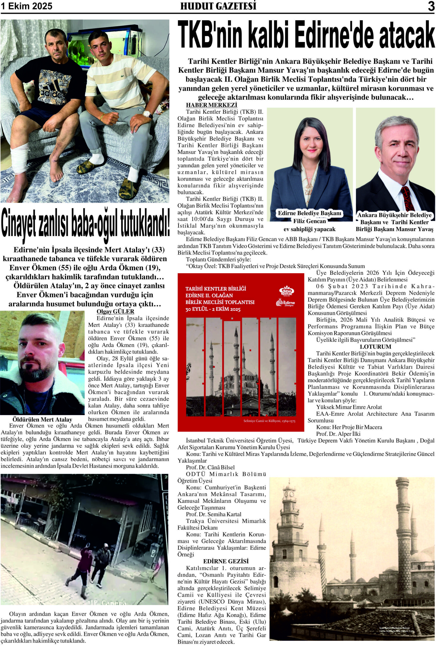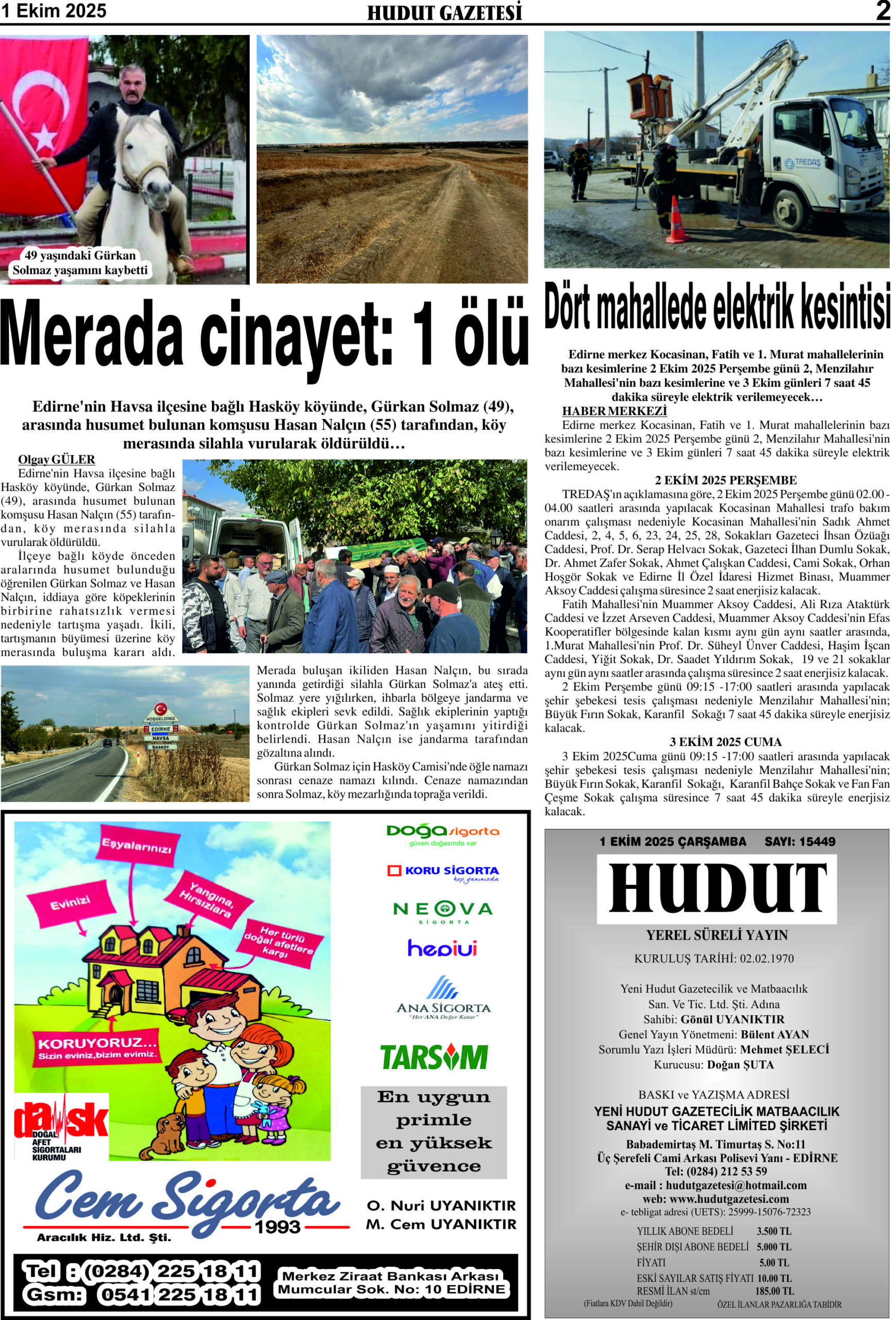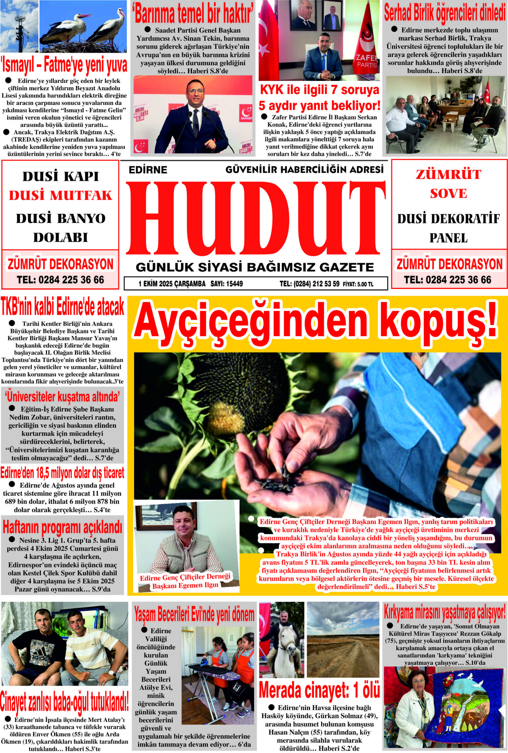 1 Ekim 2025 Çarşamba Hudut Gazetesi