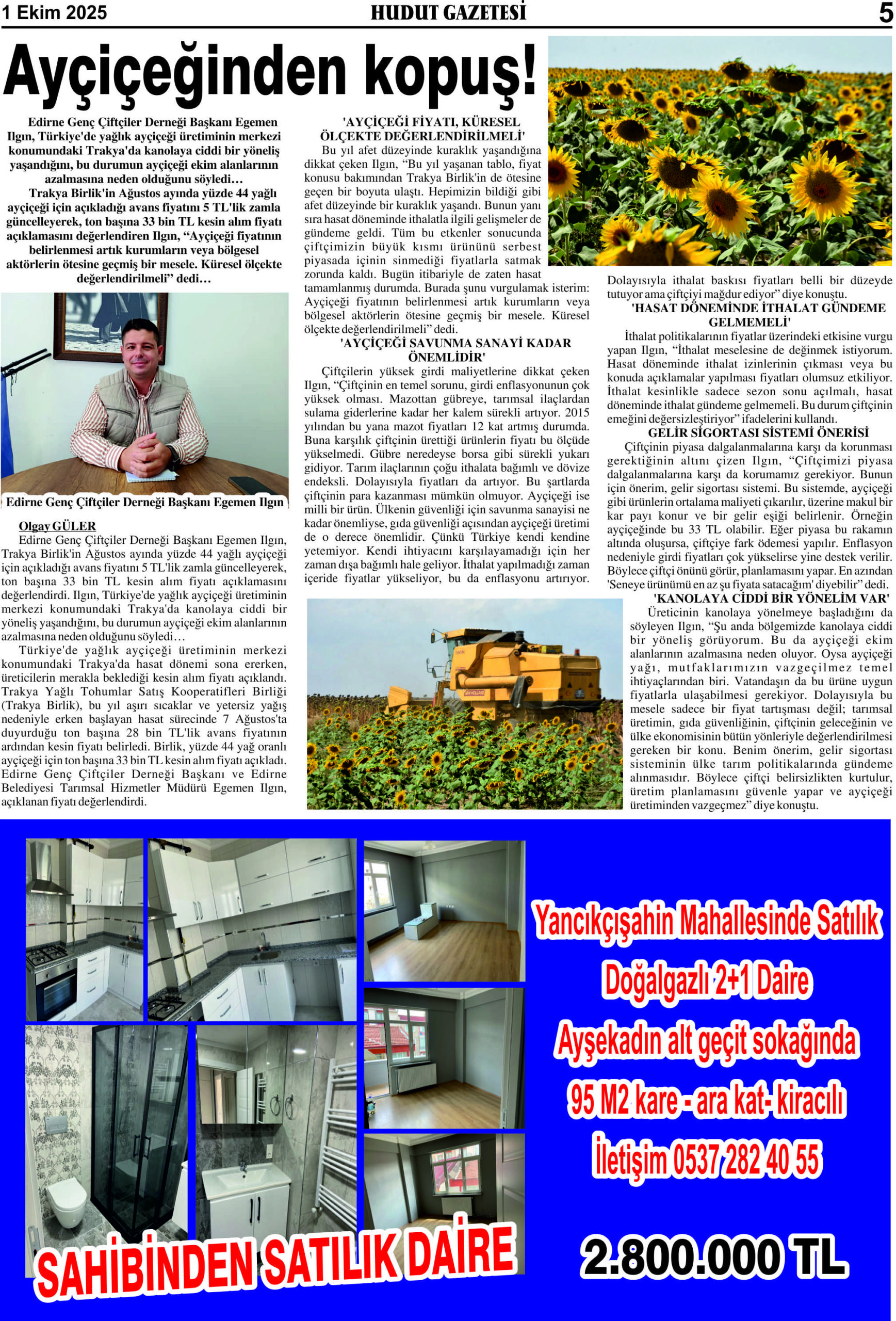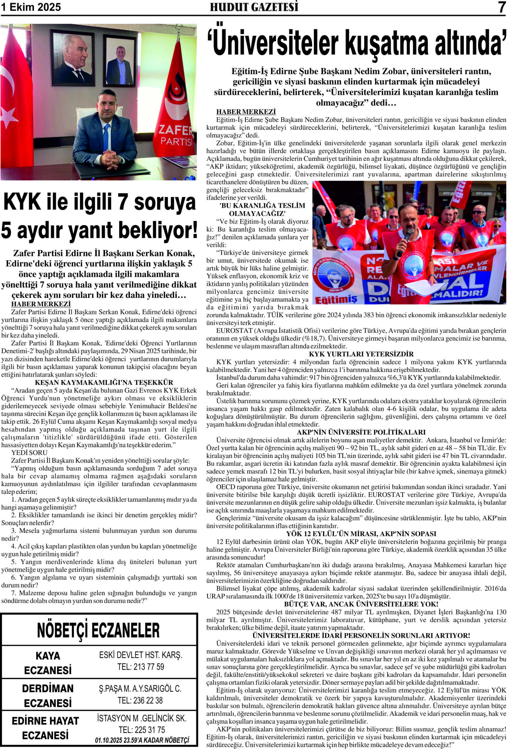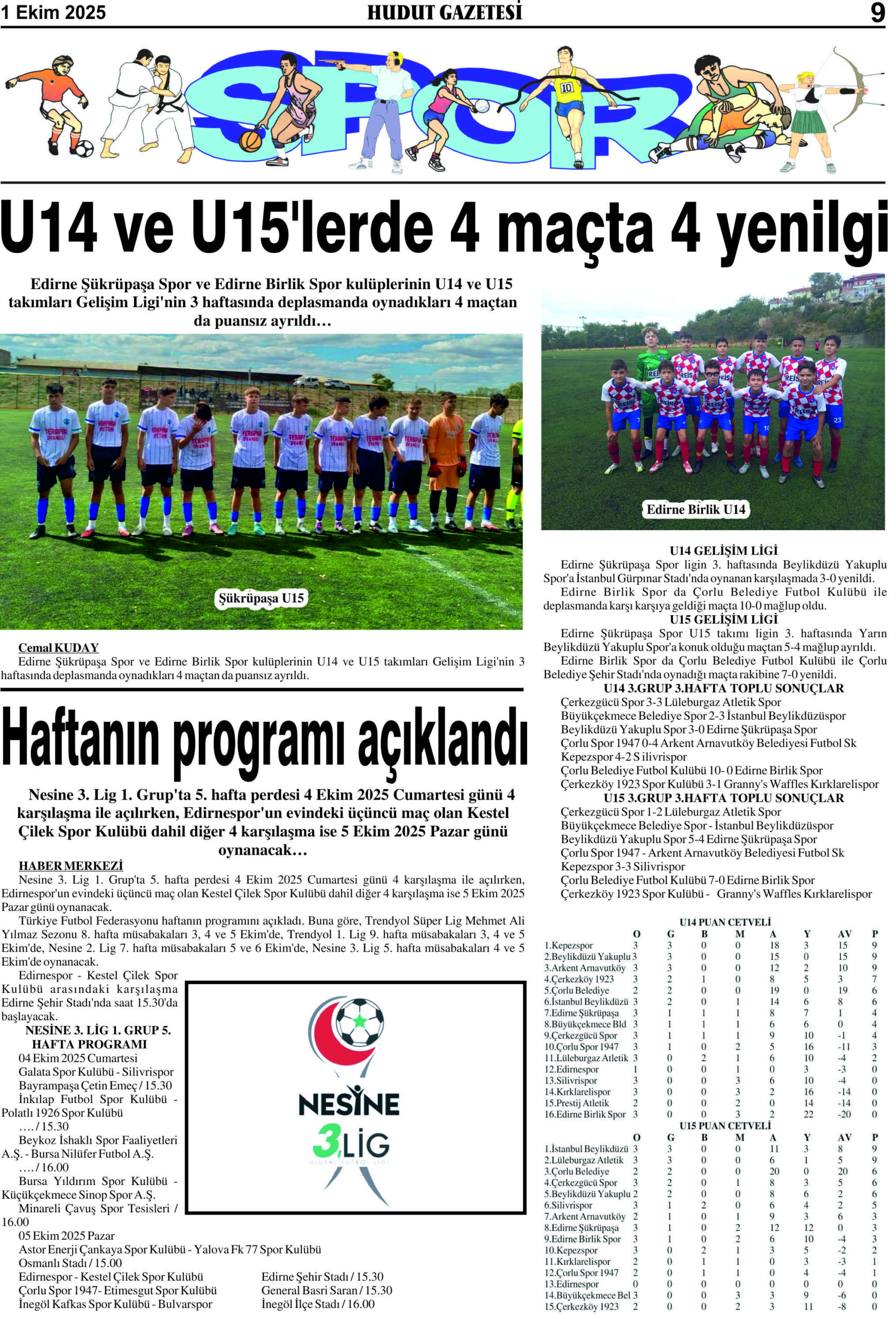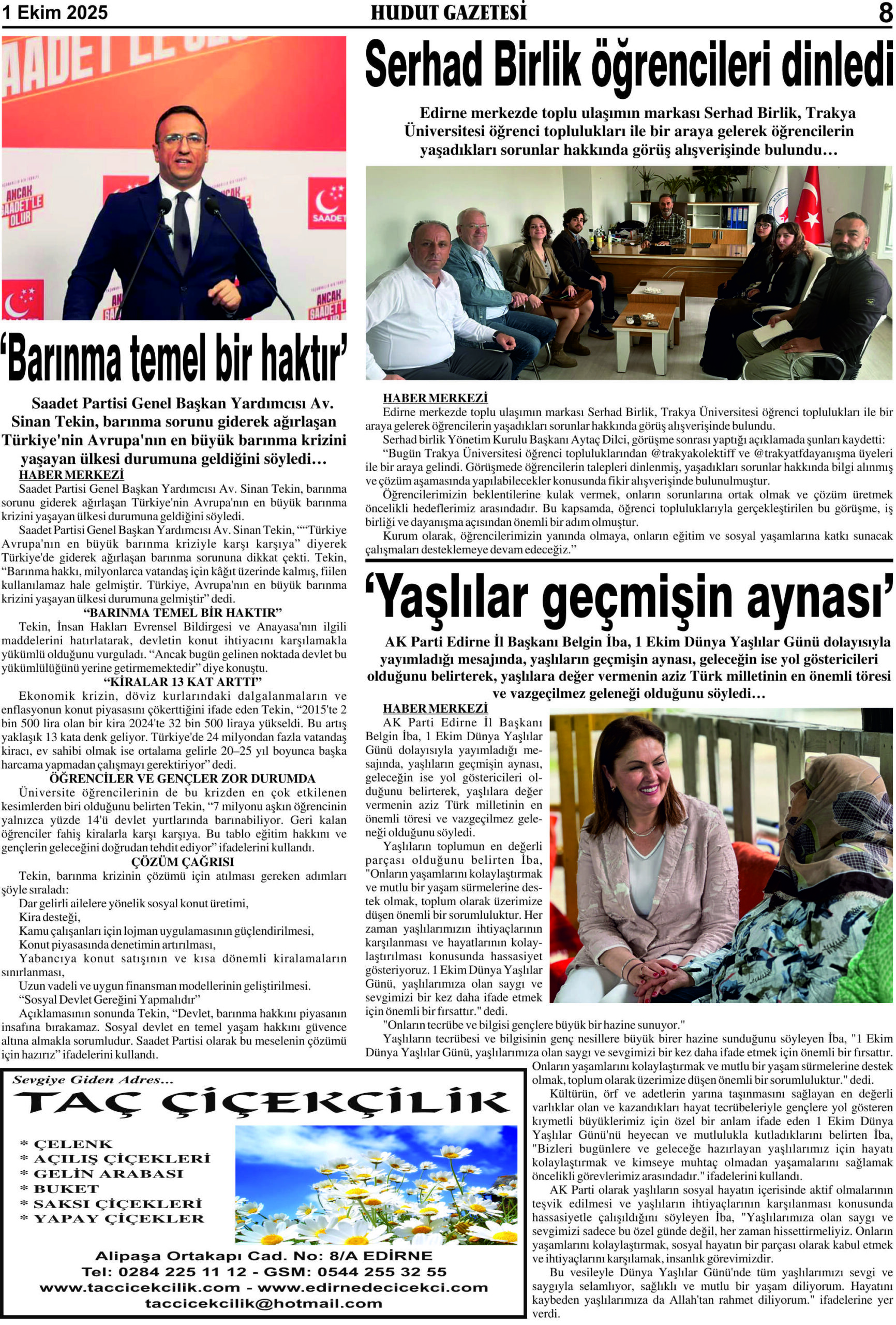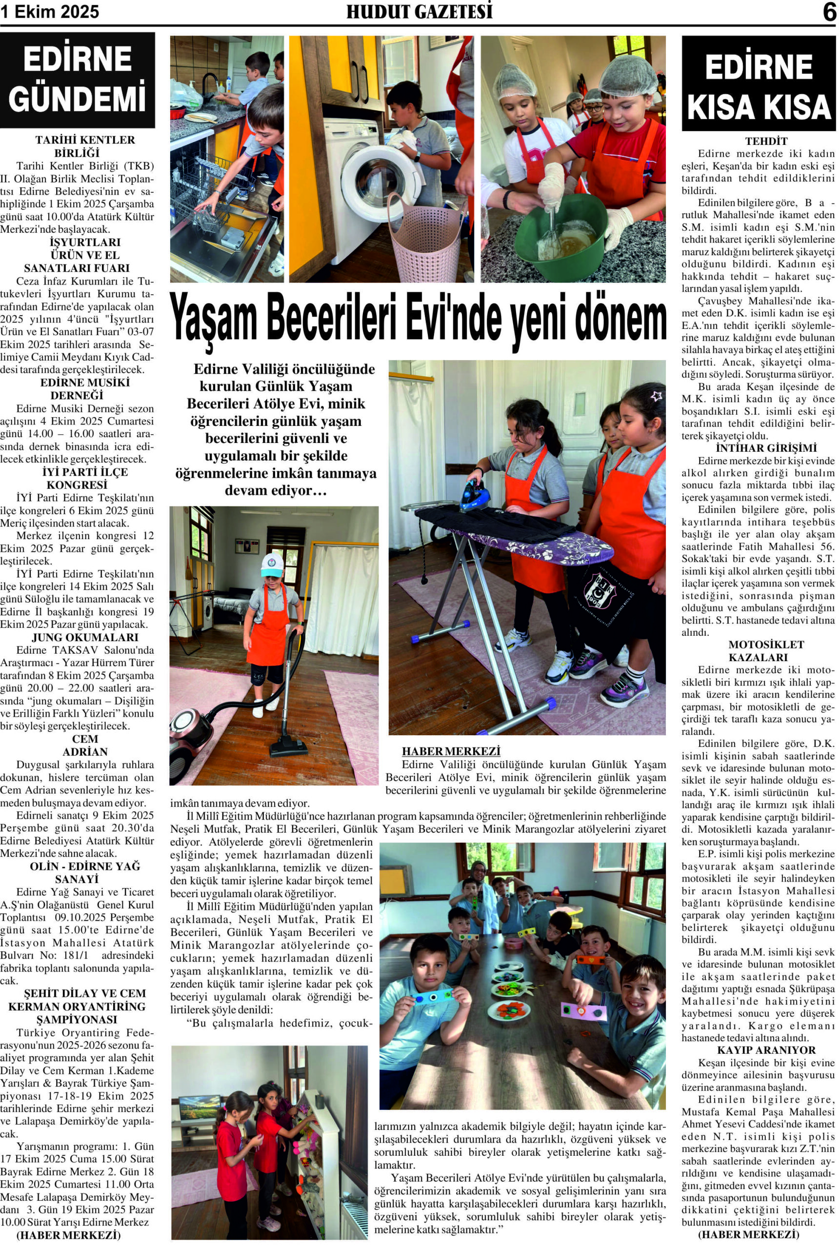 1 Ekim 2025 Çarşamba Hudut Gazetesi