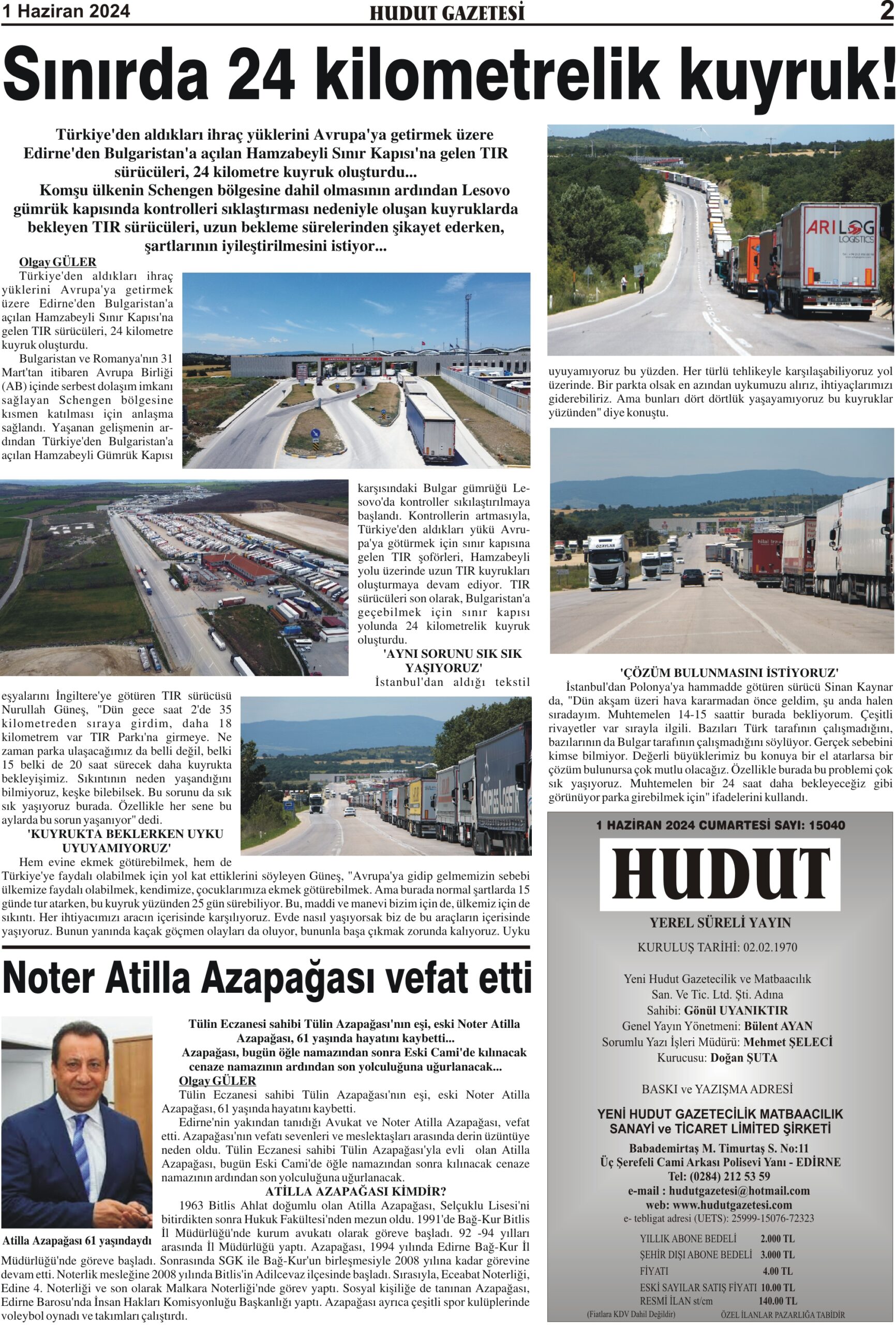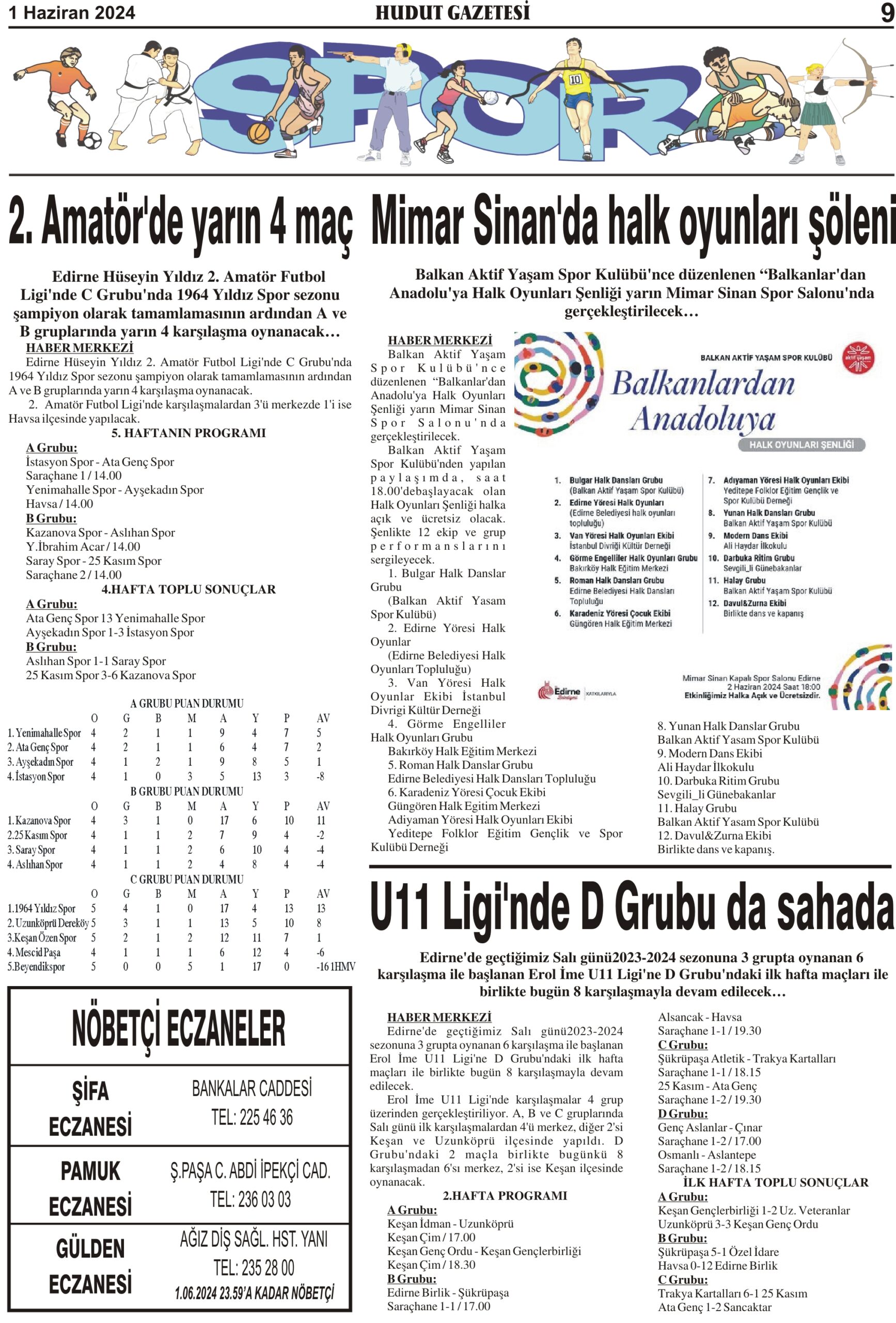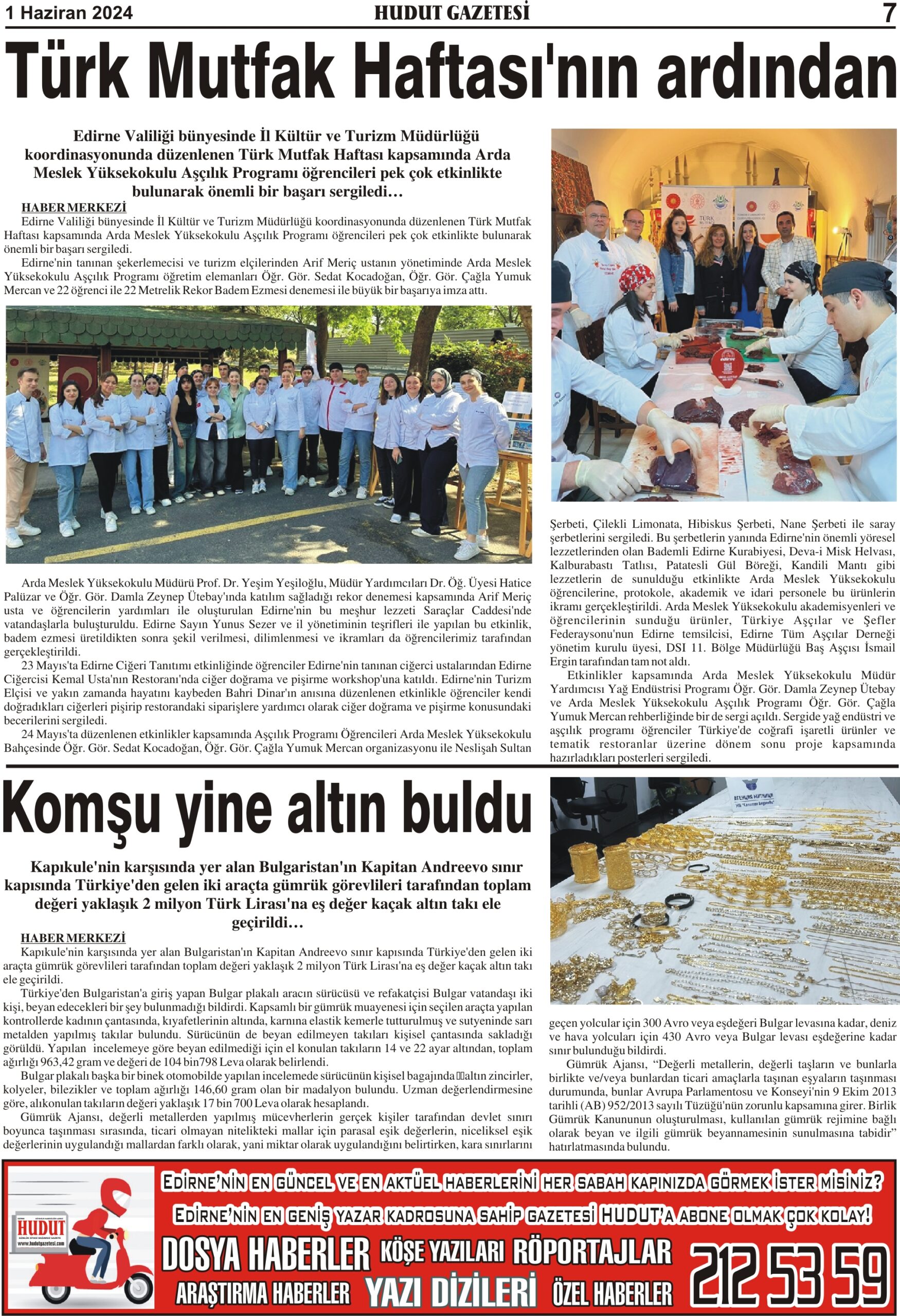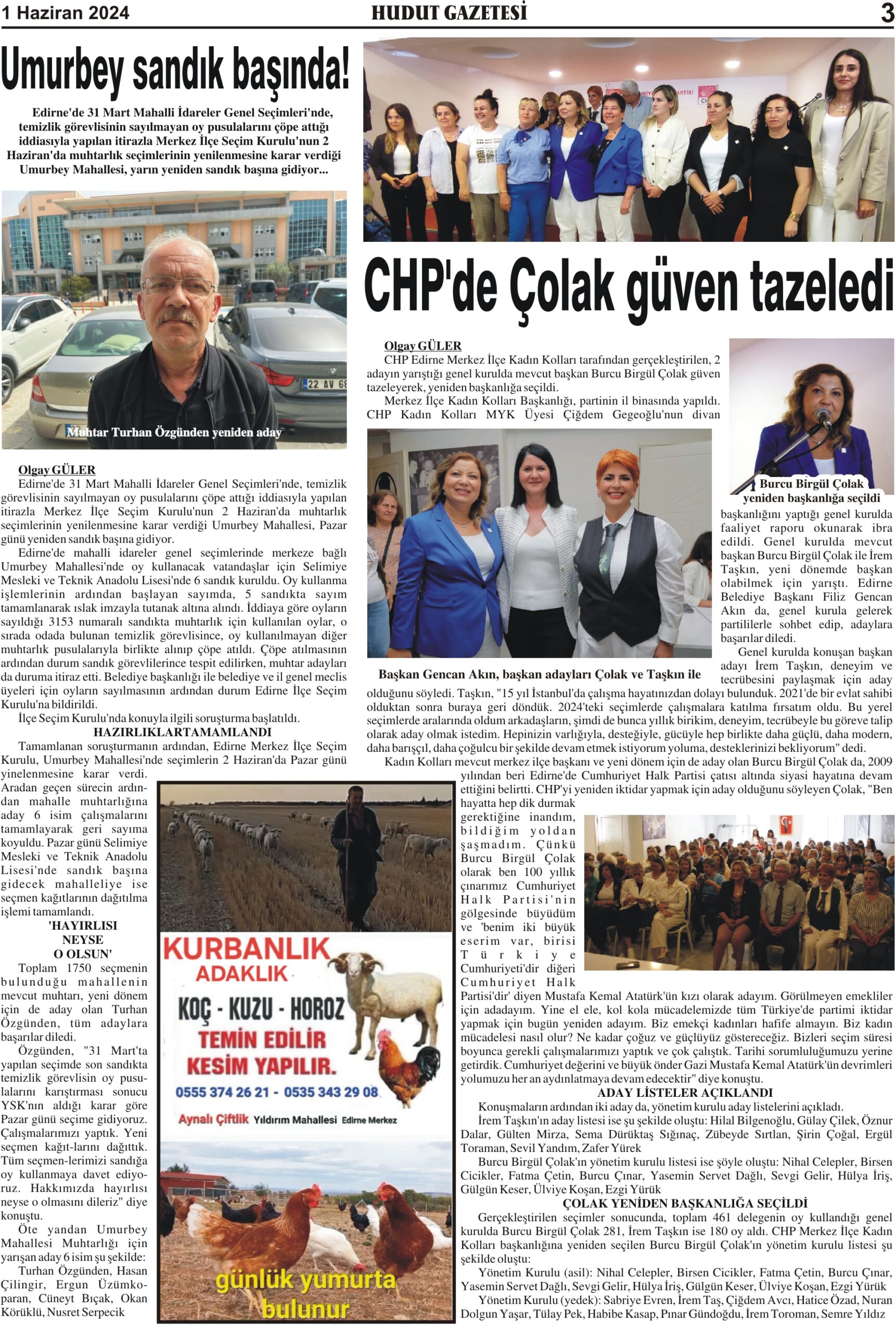 1 Haziran 2024 Cumartesi Hudut Gazetesi