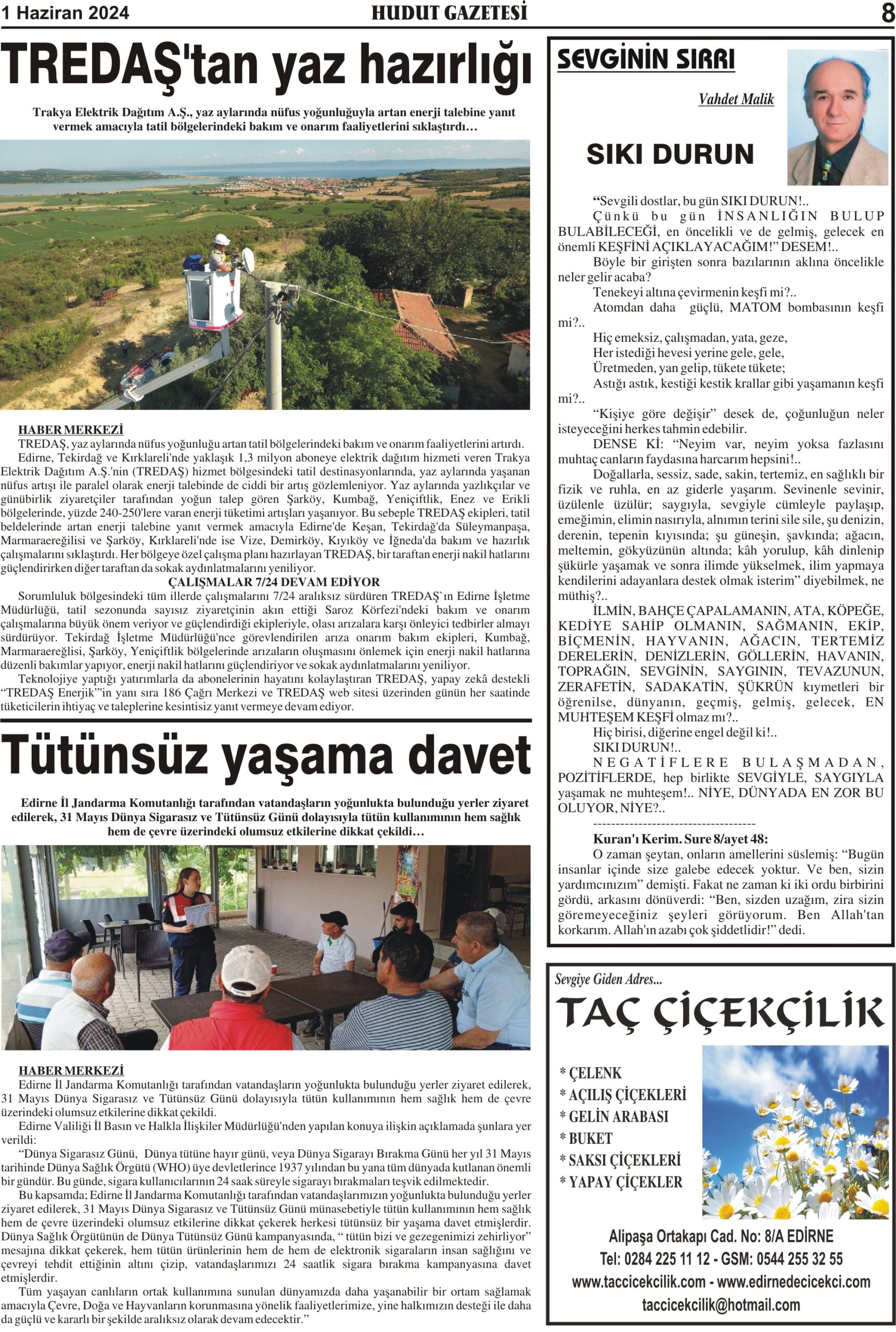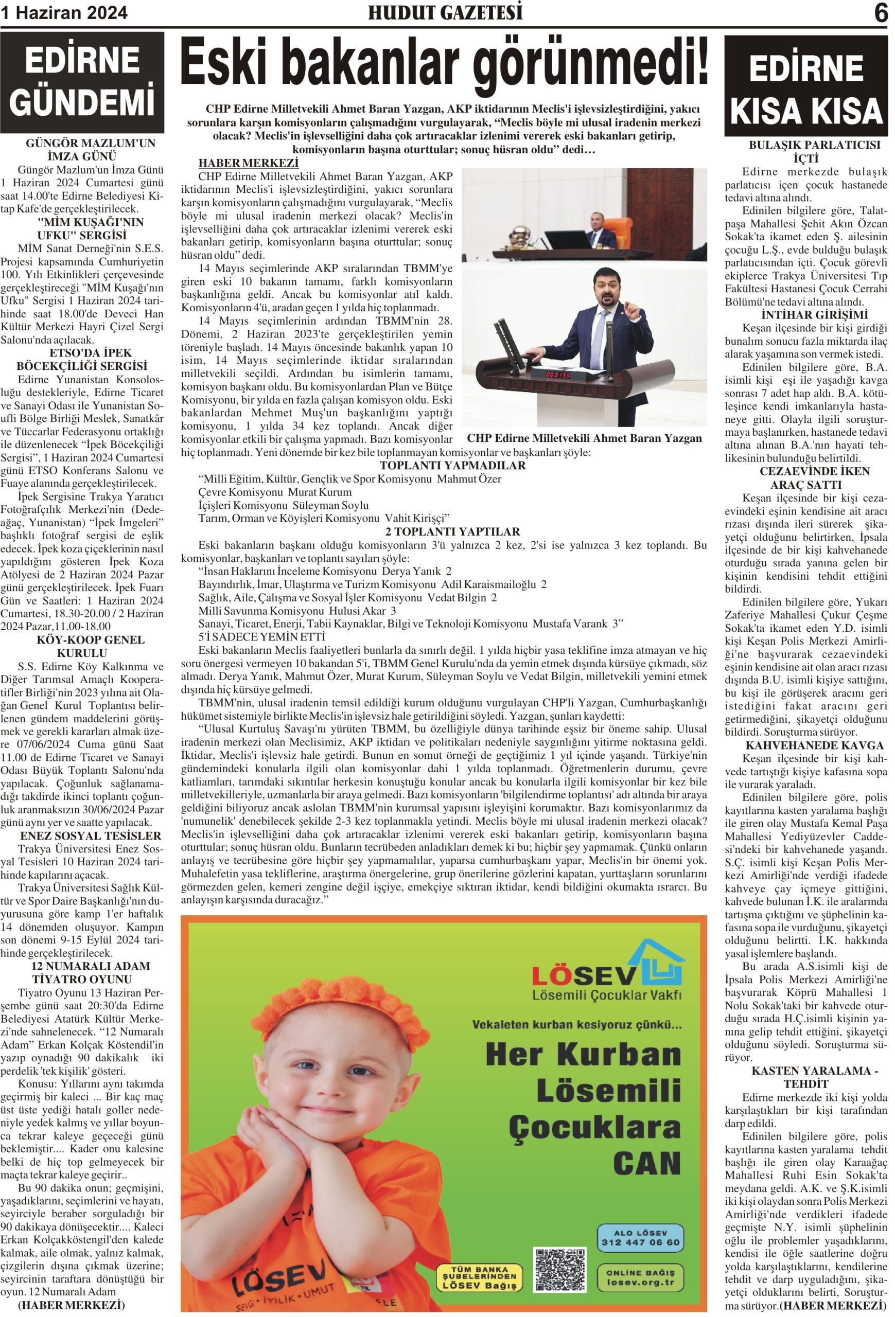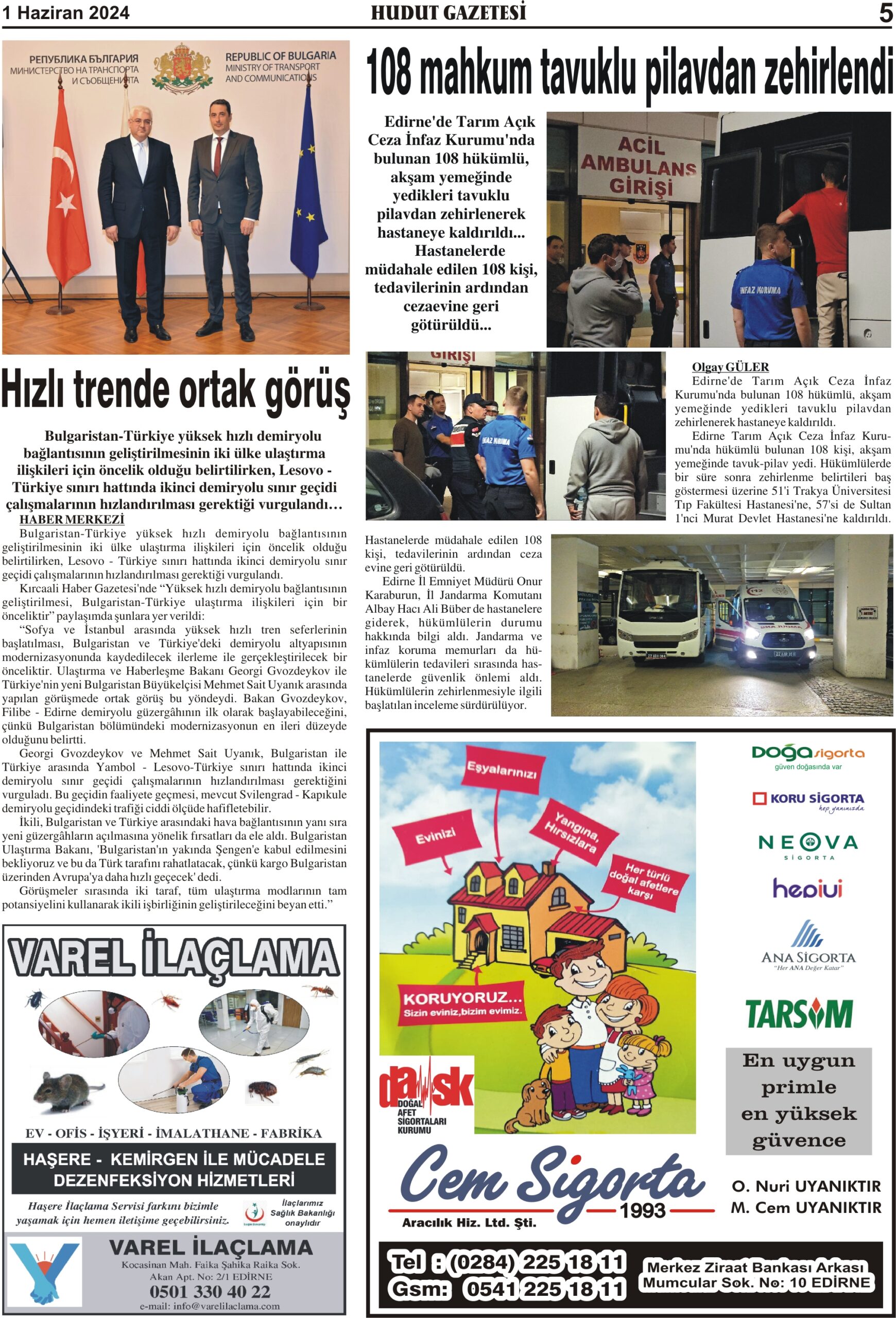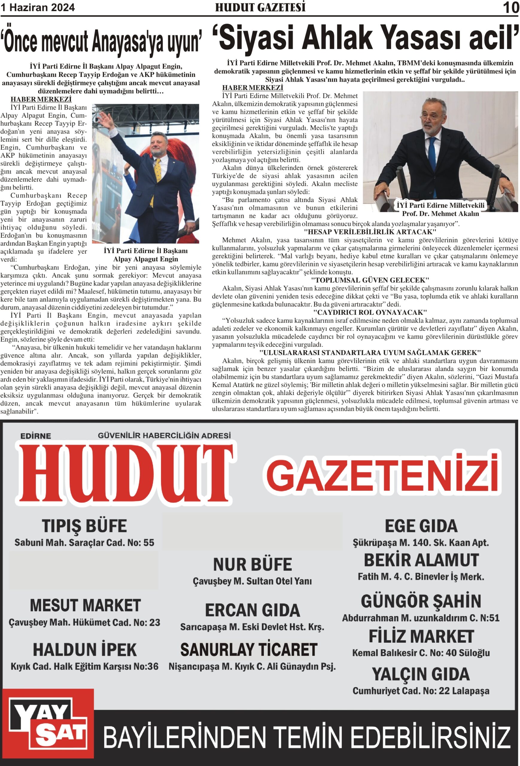 1 Haziran 2024 Cumartesi Hudut Gazetesi