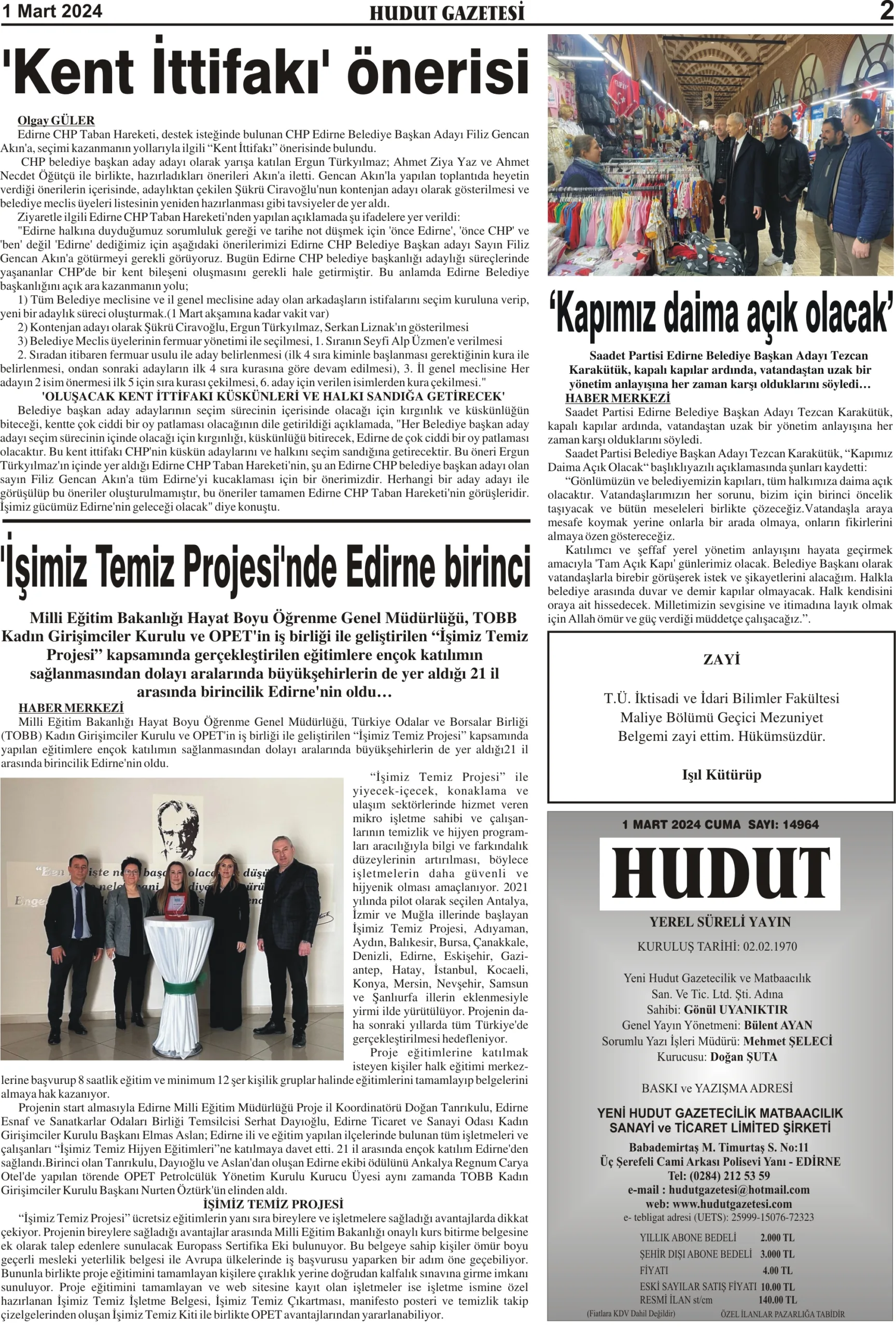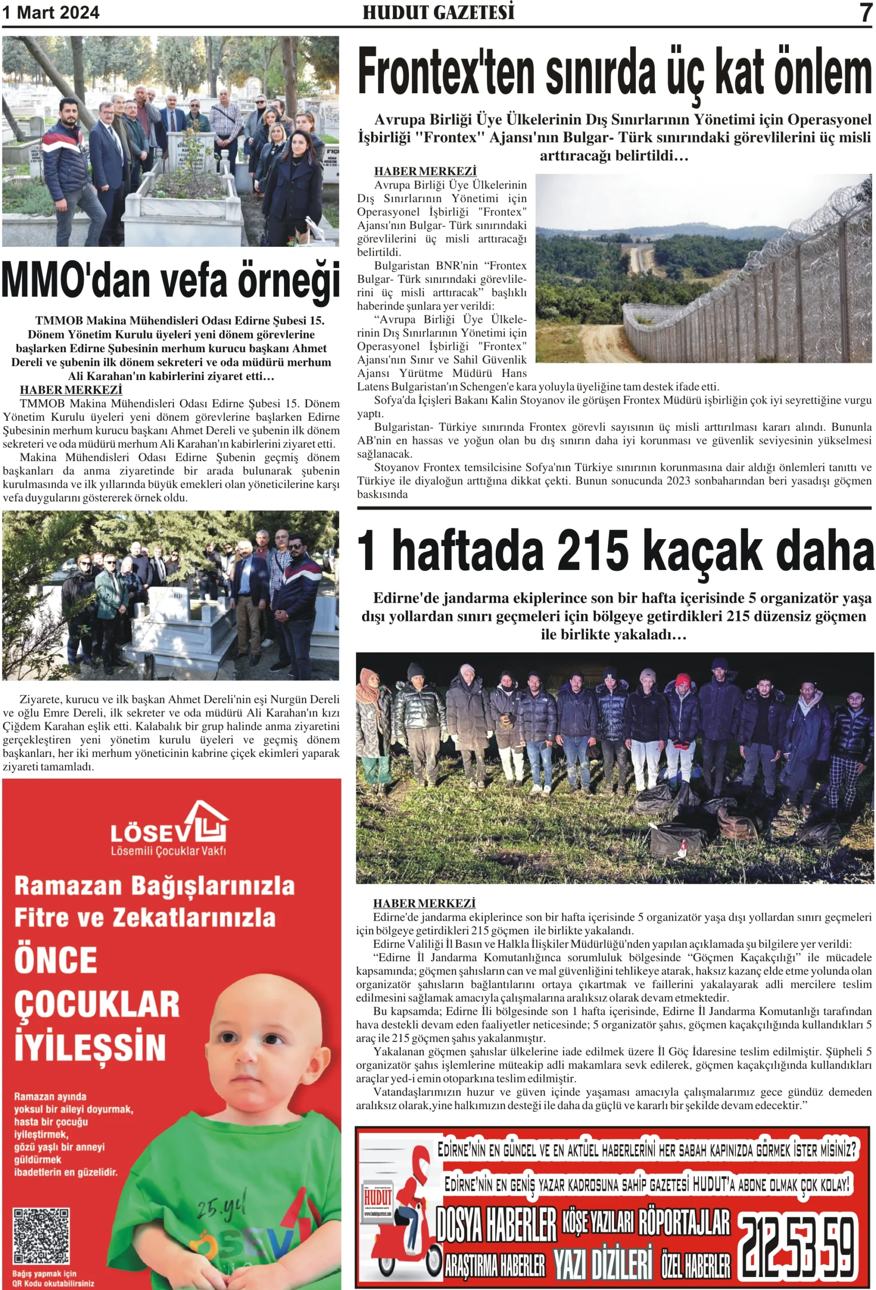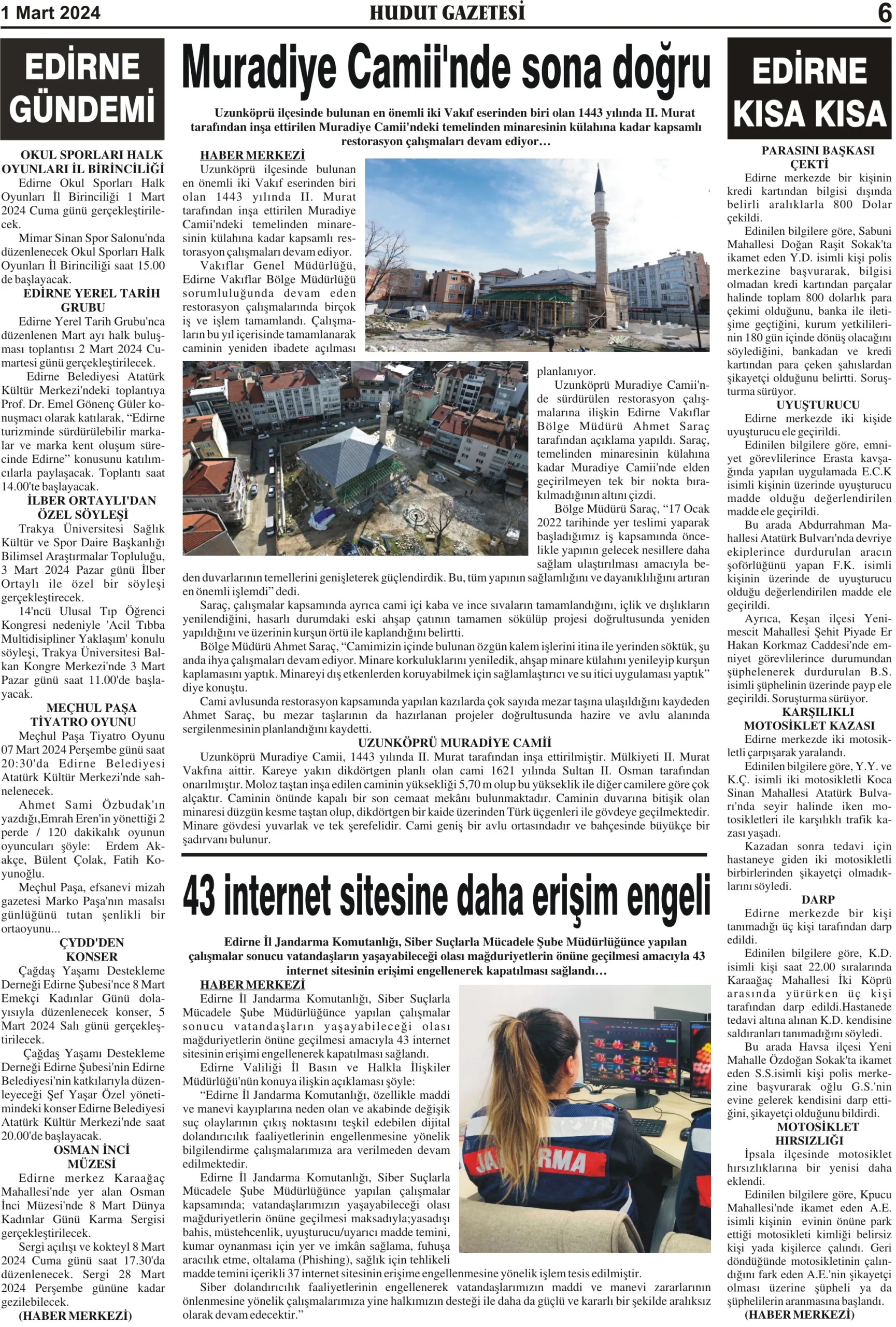 1 Mart 2024 Cuma Hudut Gazetesi