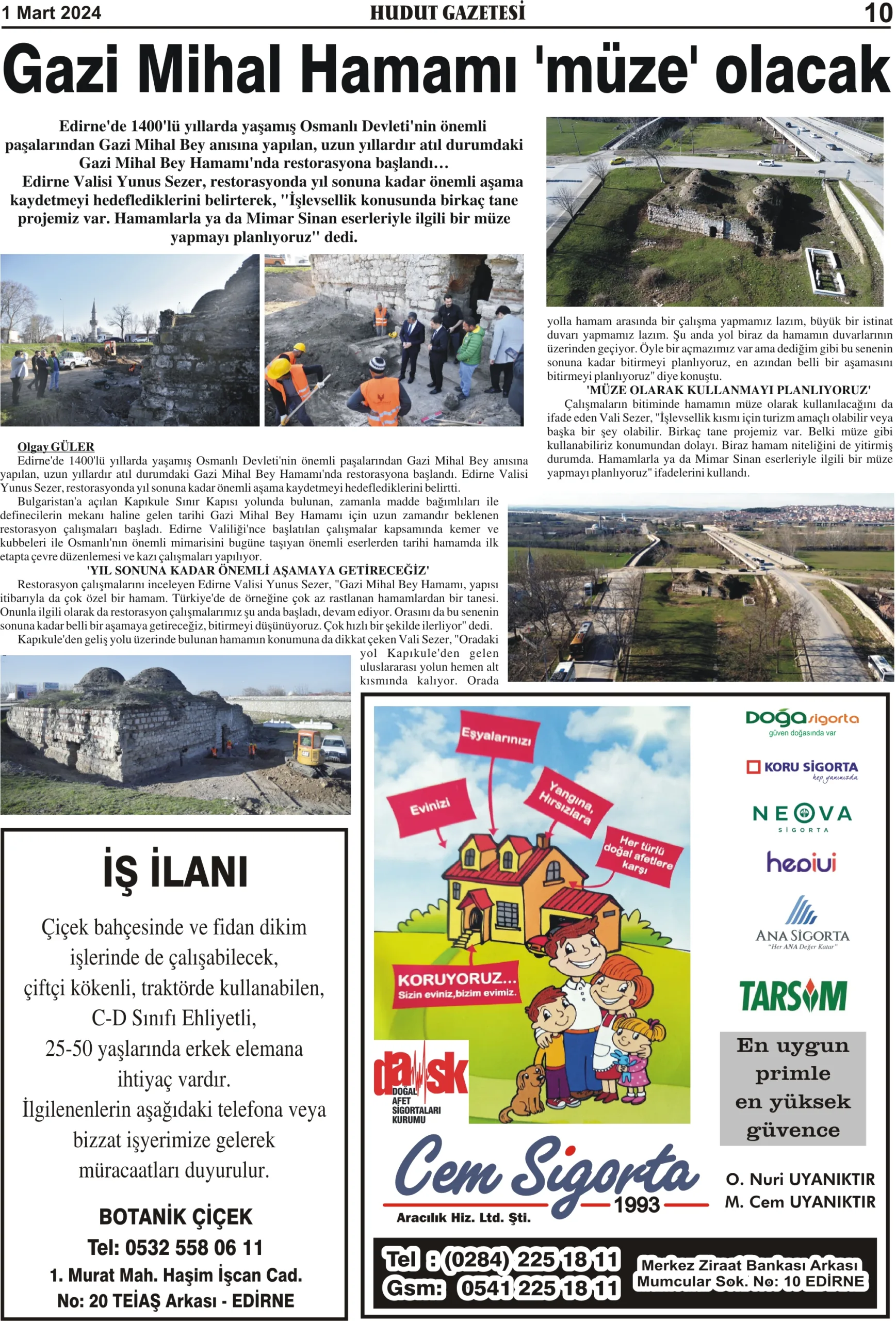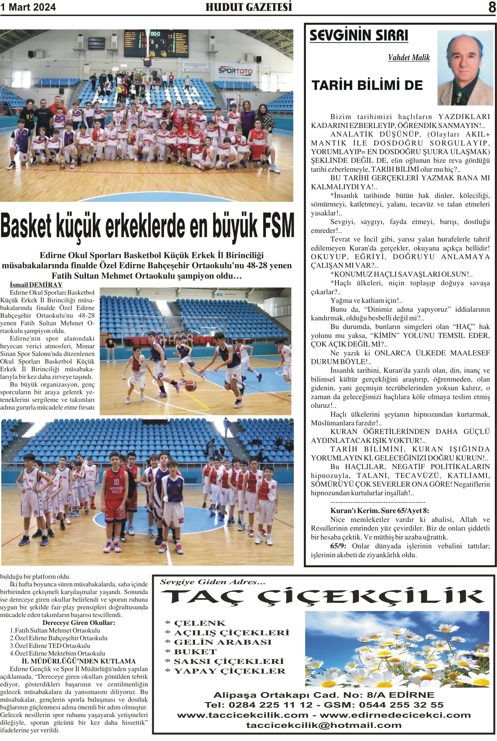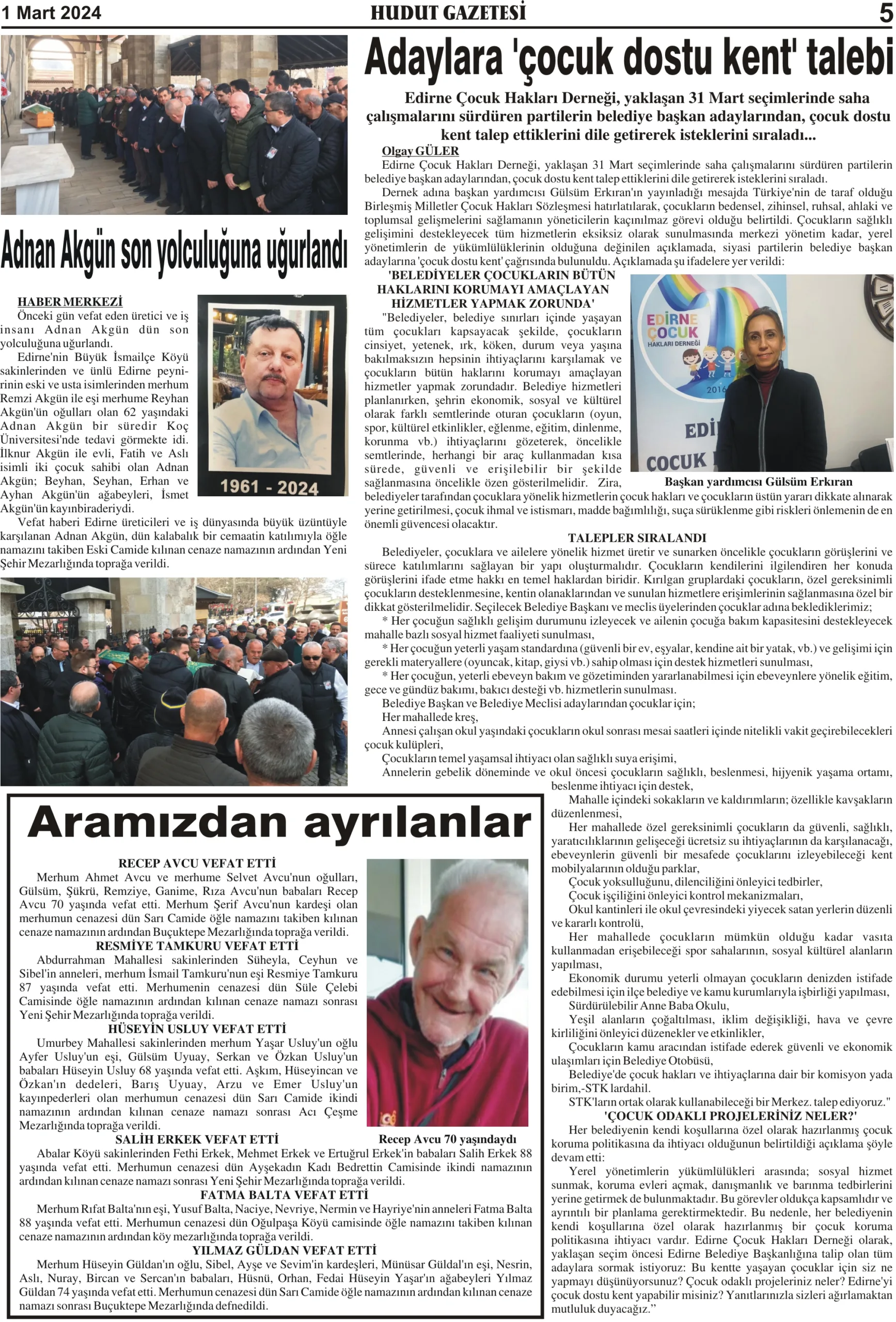 1 Mart 2024 Cuma Hudut Gazetesi
