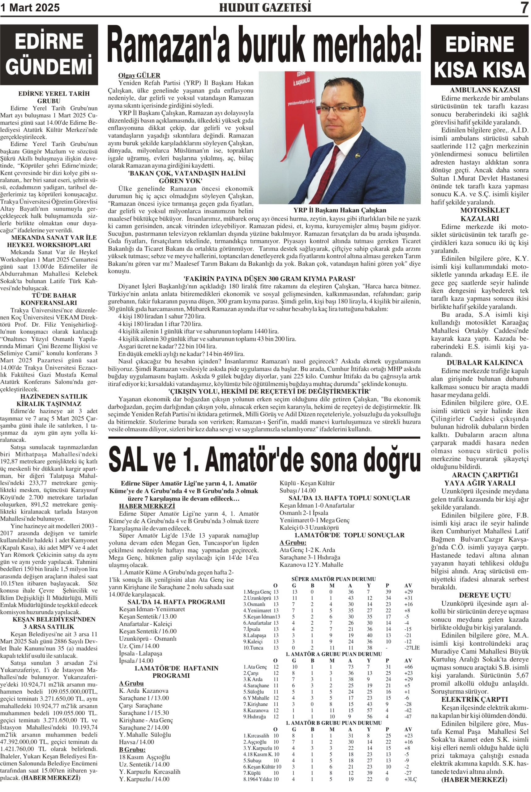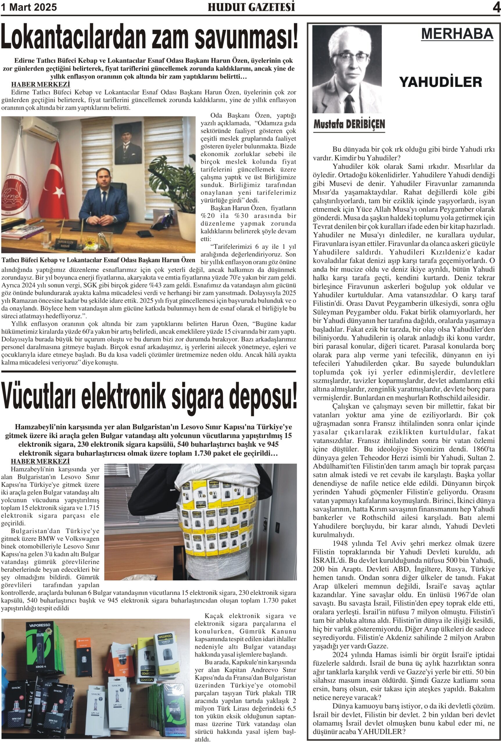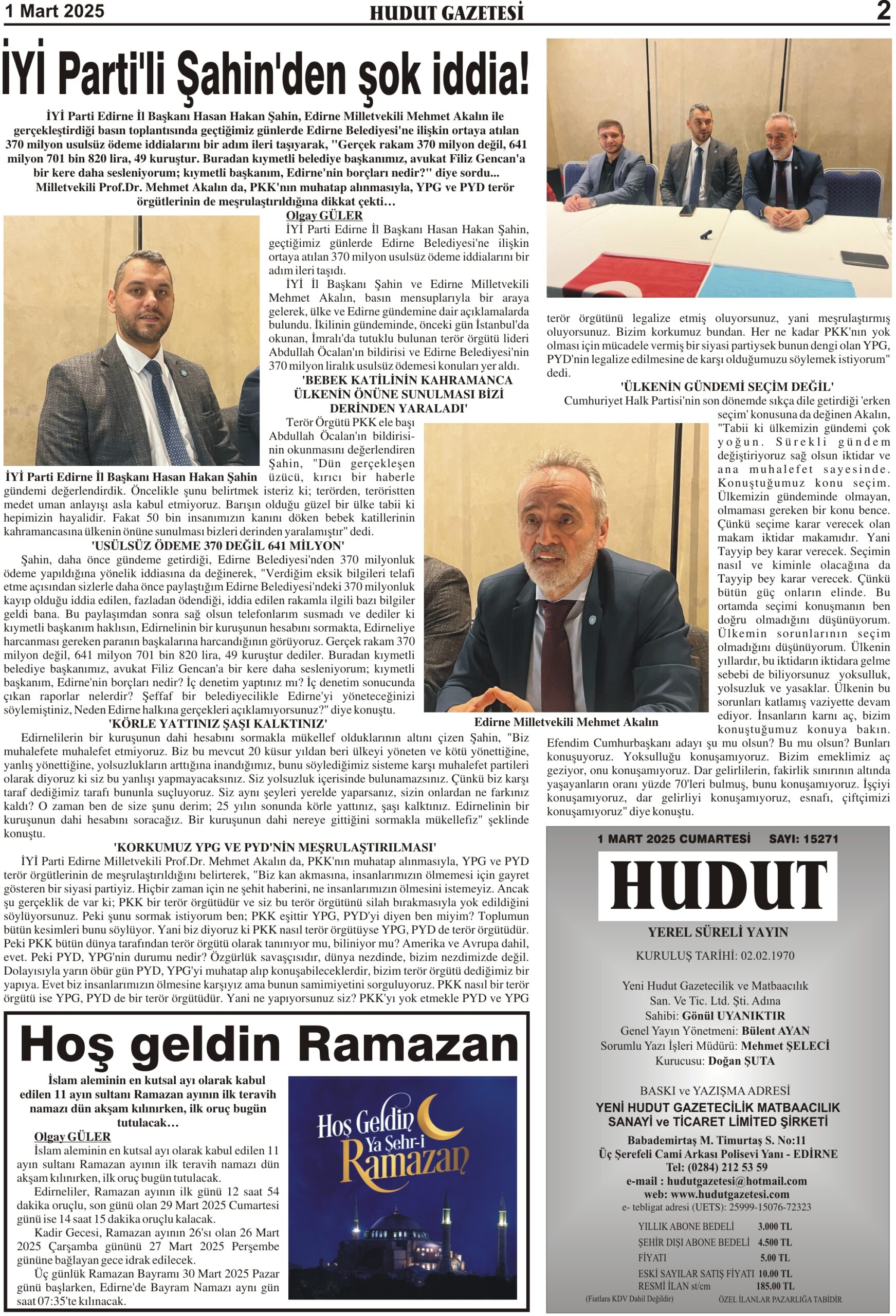 1 Mart 2025 Cumartesi Hudut Gazetesi