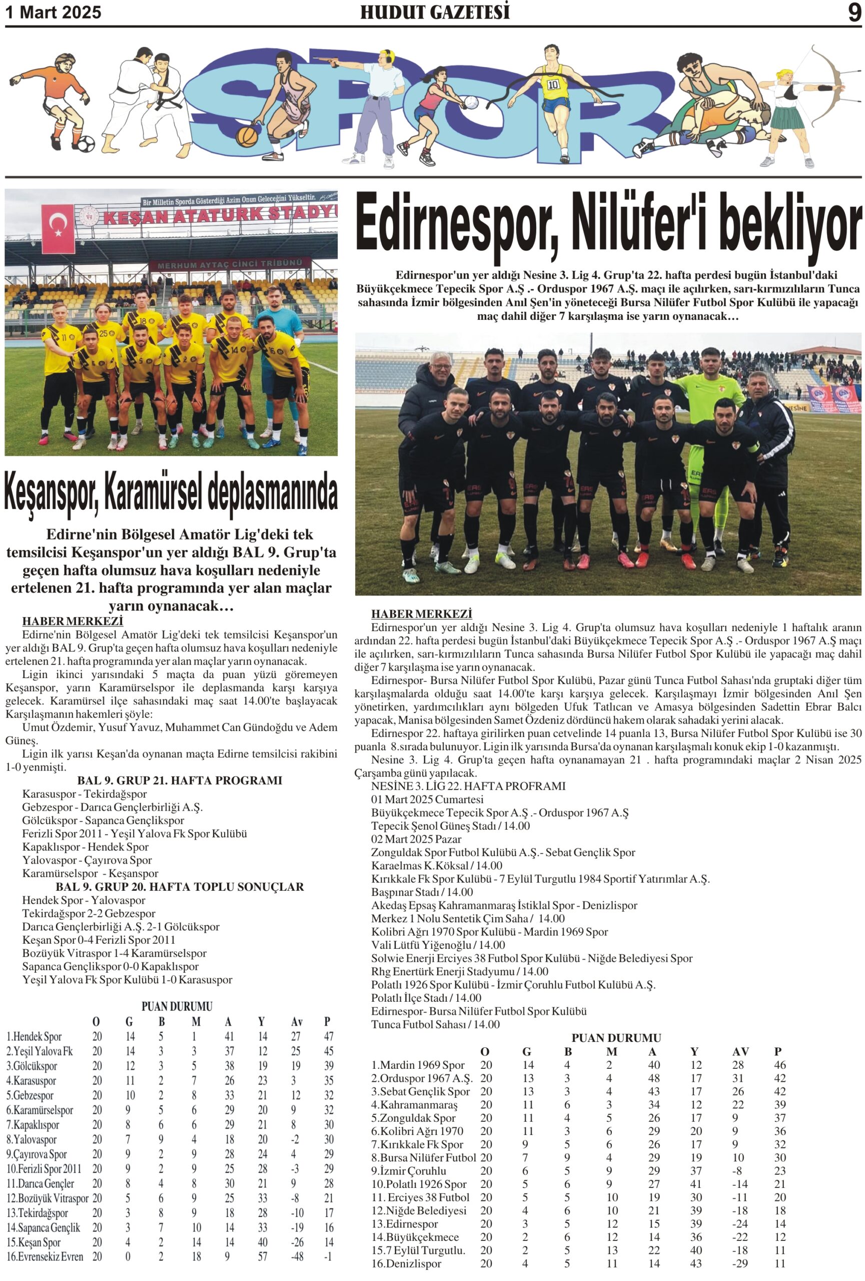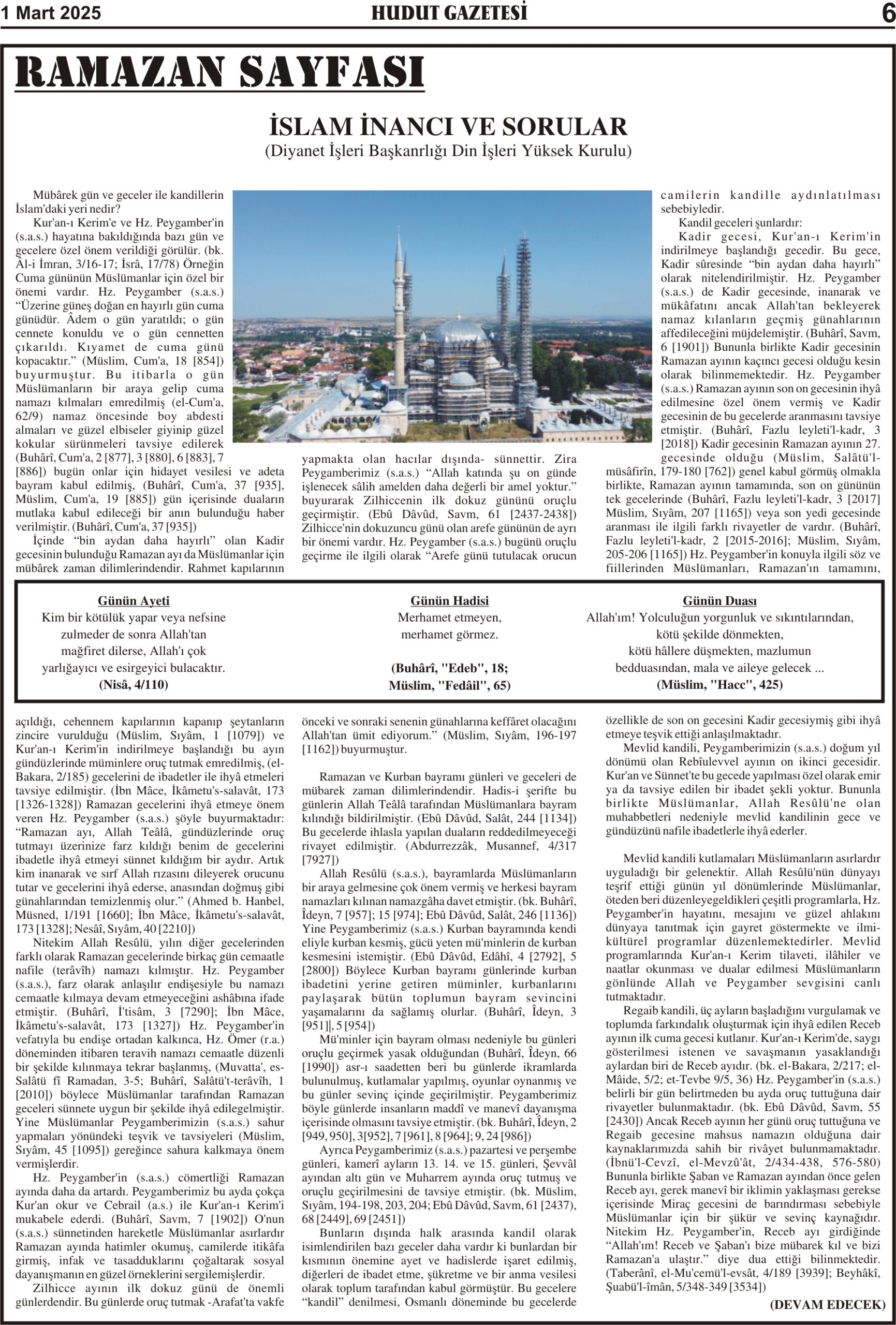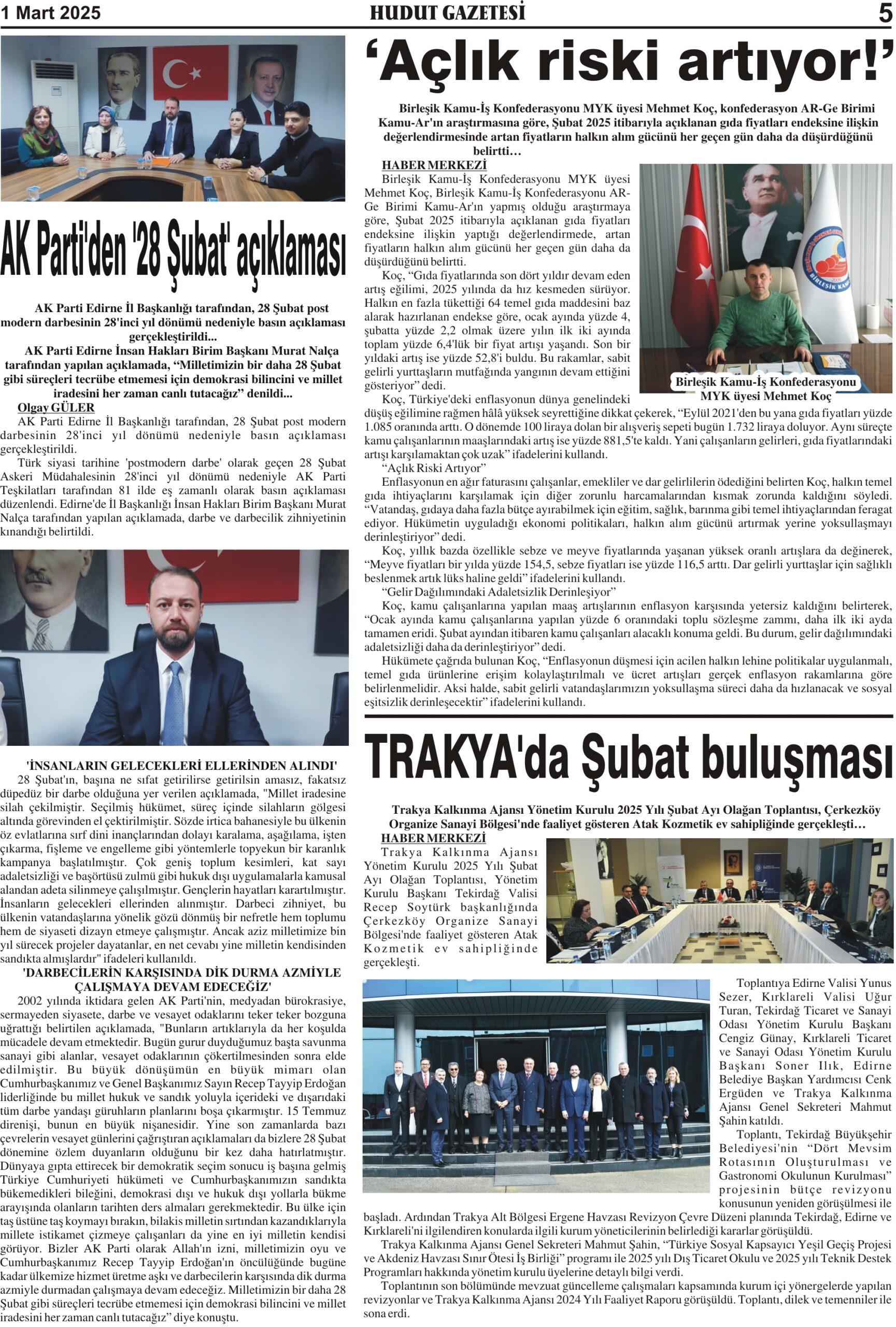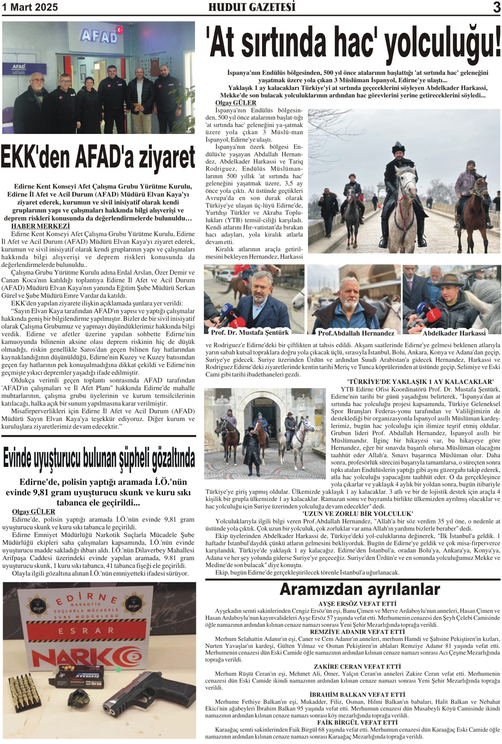 1 Mart 2025 Cumartesi Hudut Gazetesi