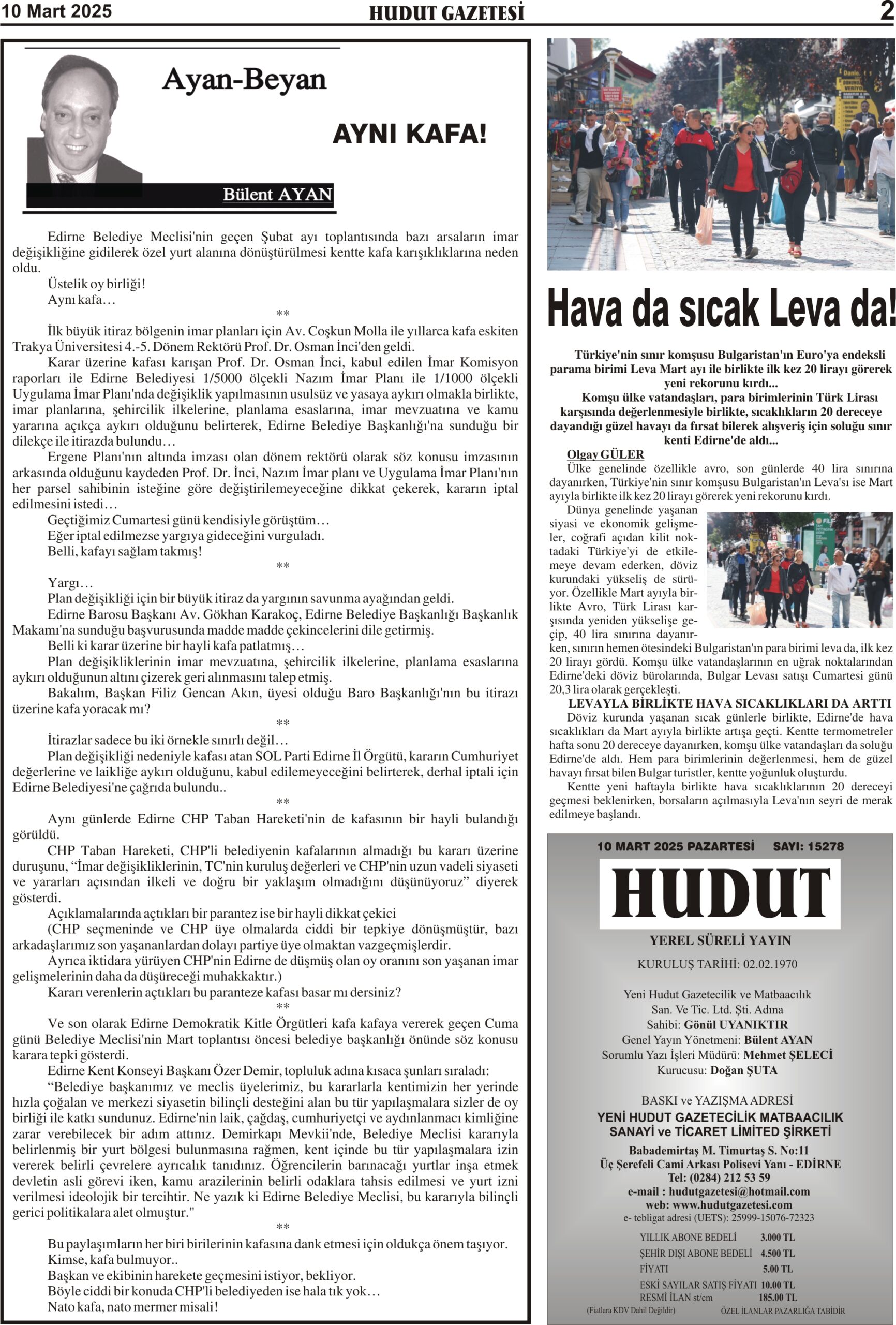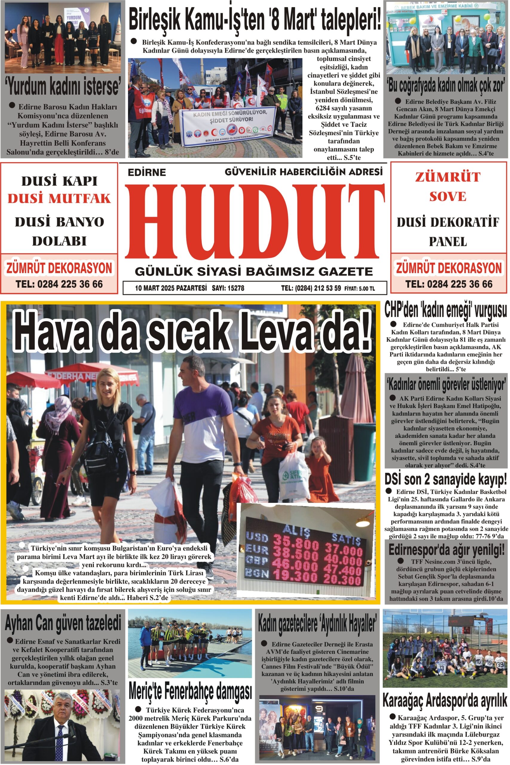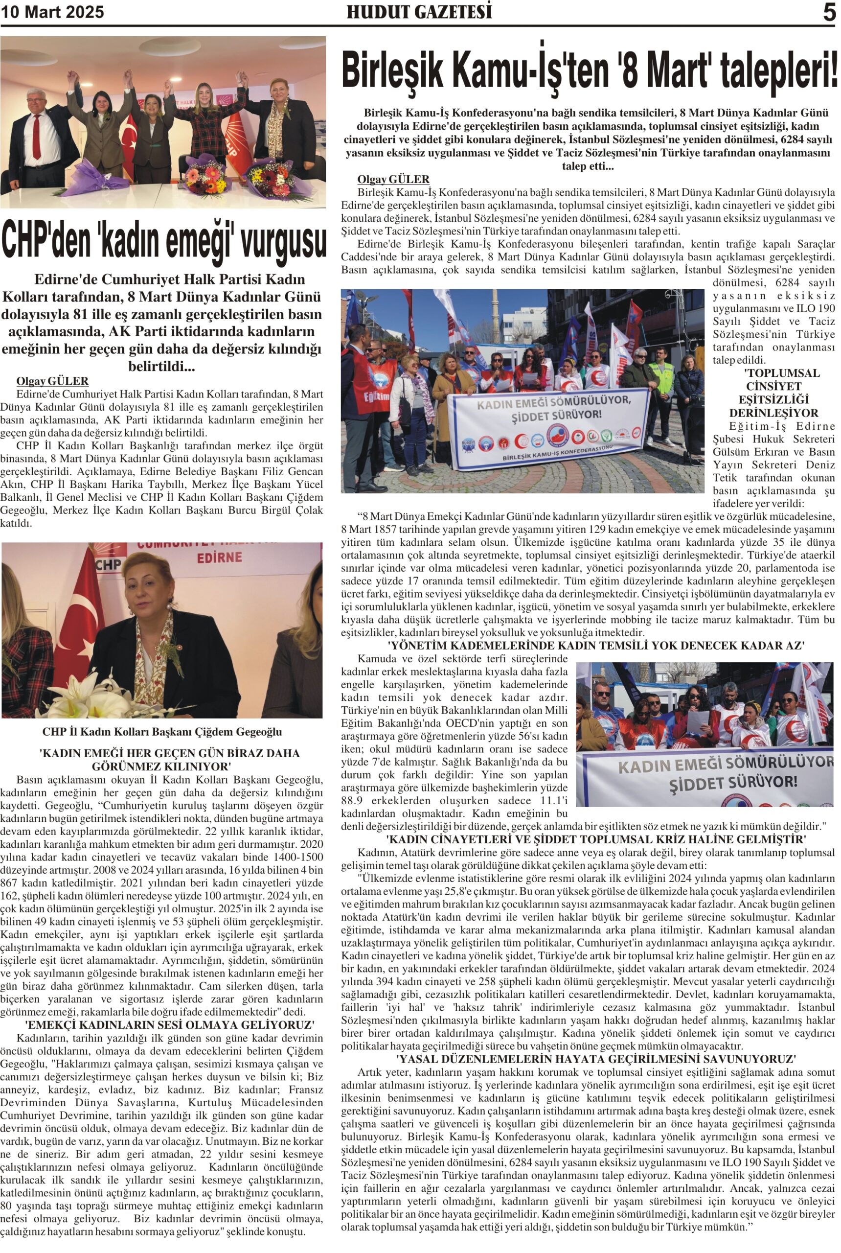 10 Mart 2025 Pazartesi Hudut Gazetesi