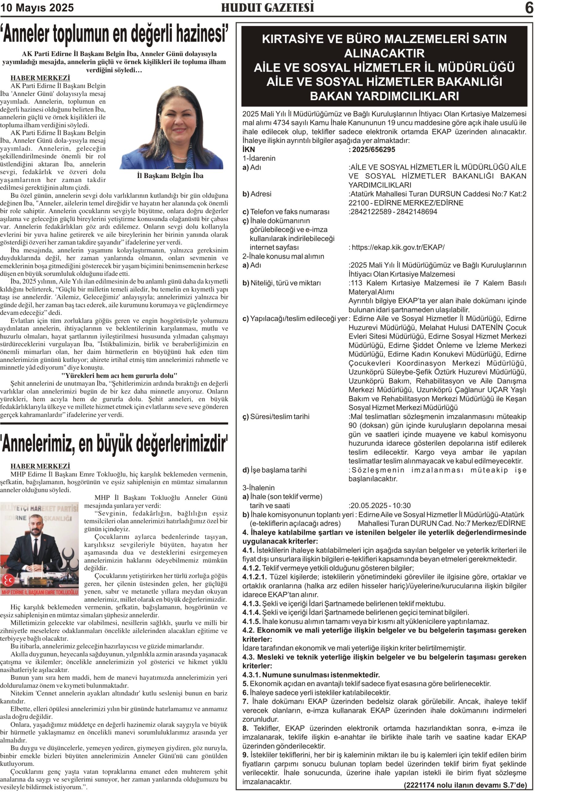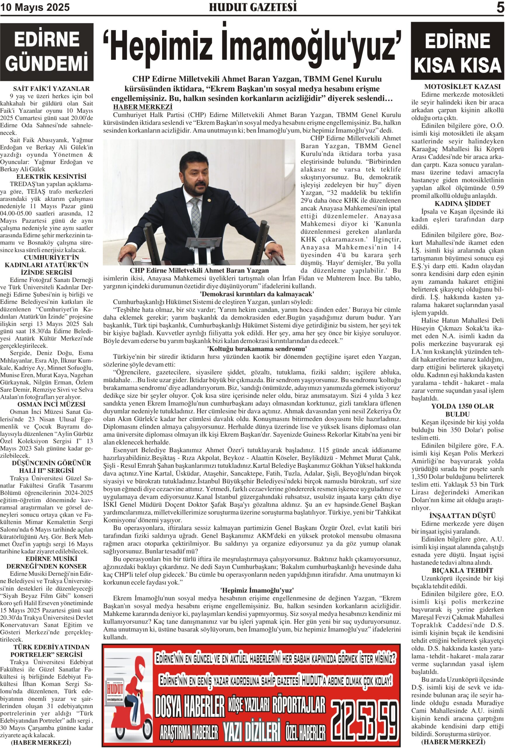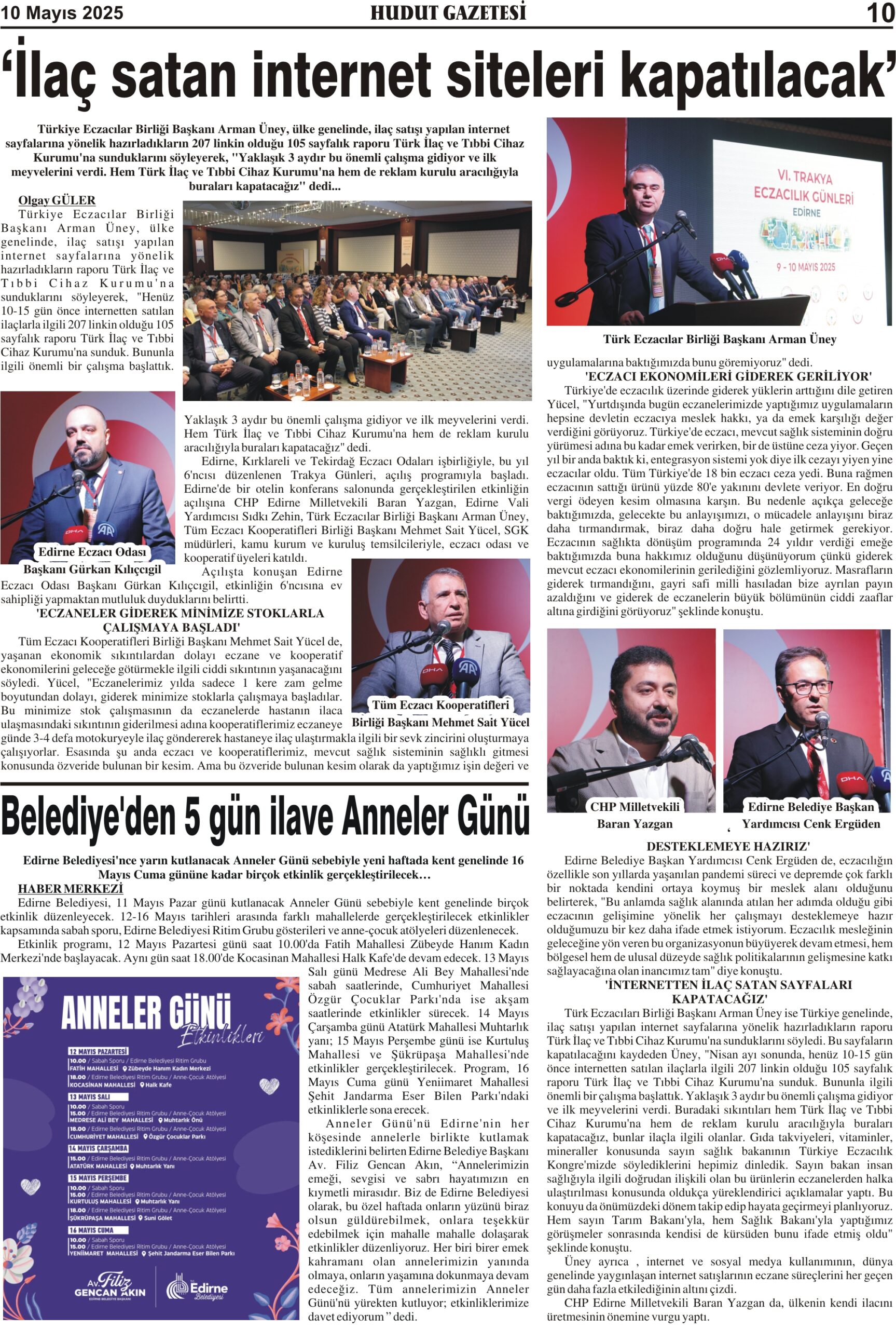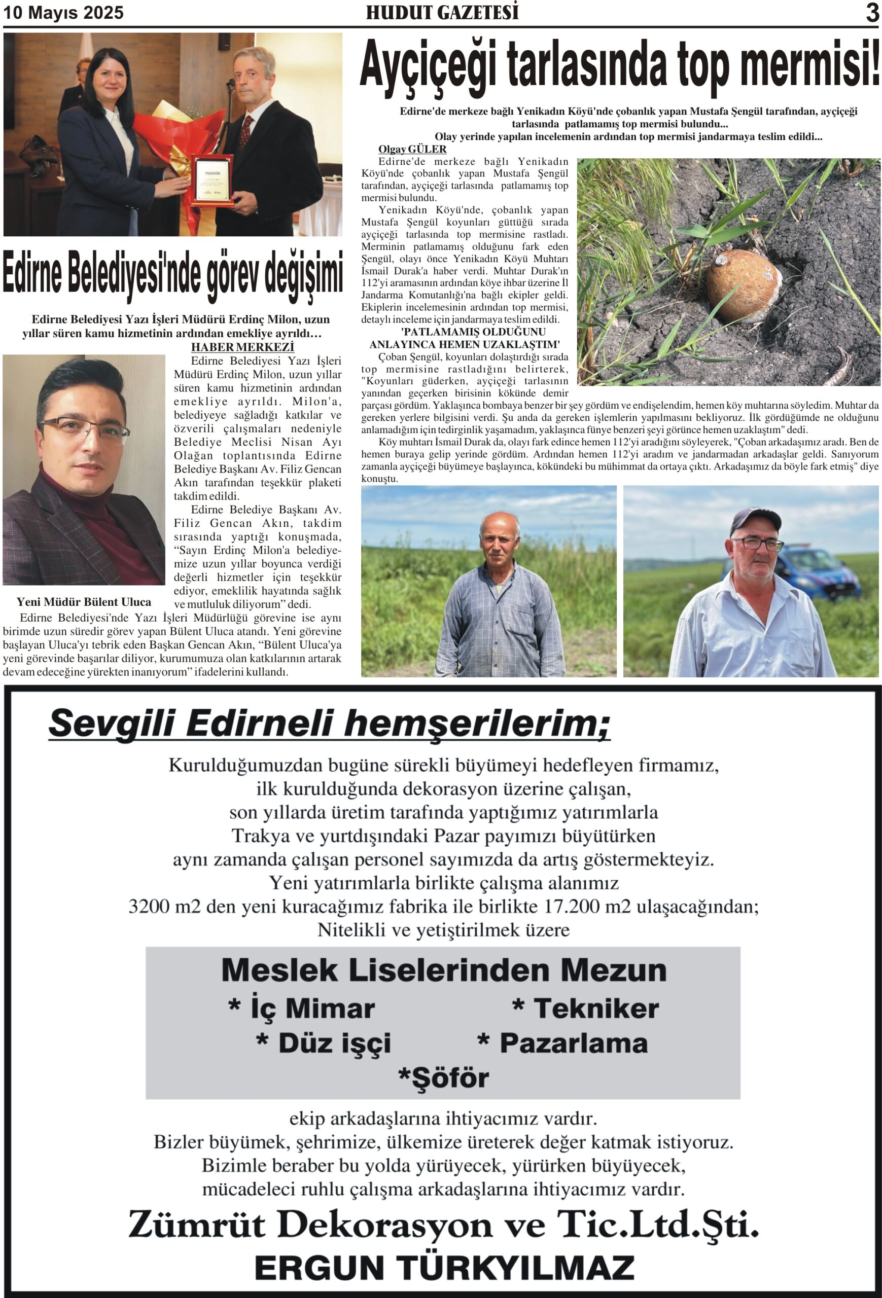 10 Mayıs 2025 Cumartesi Hudut Gazetesi