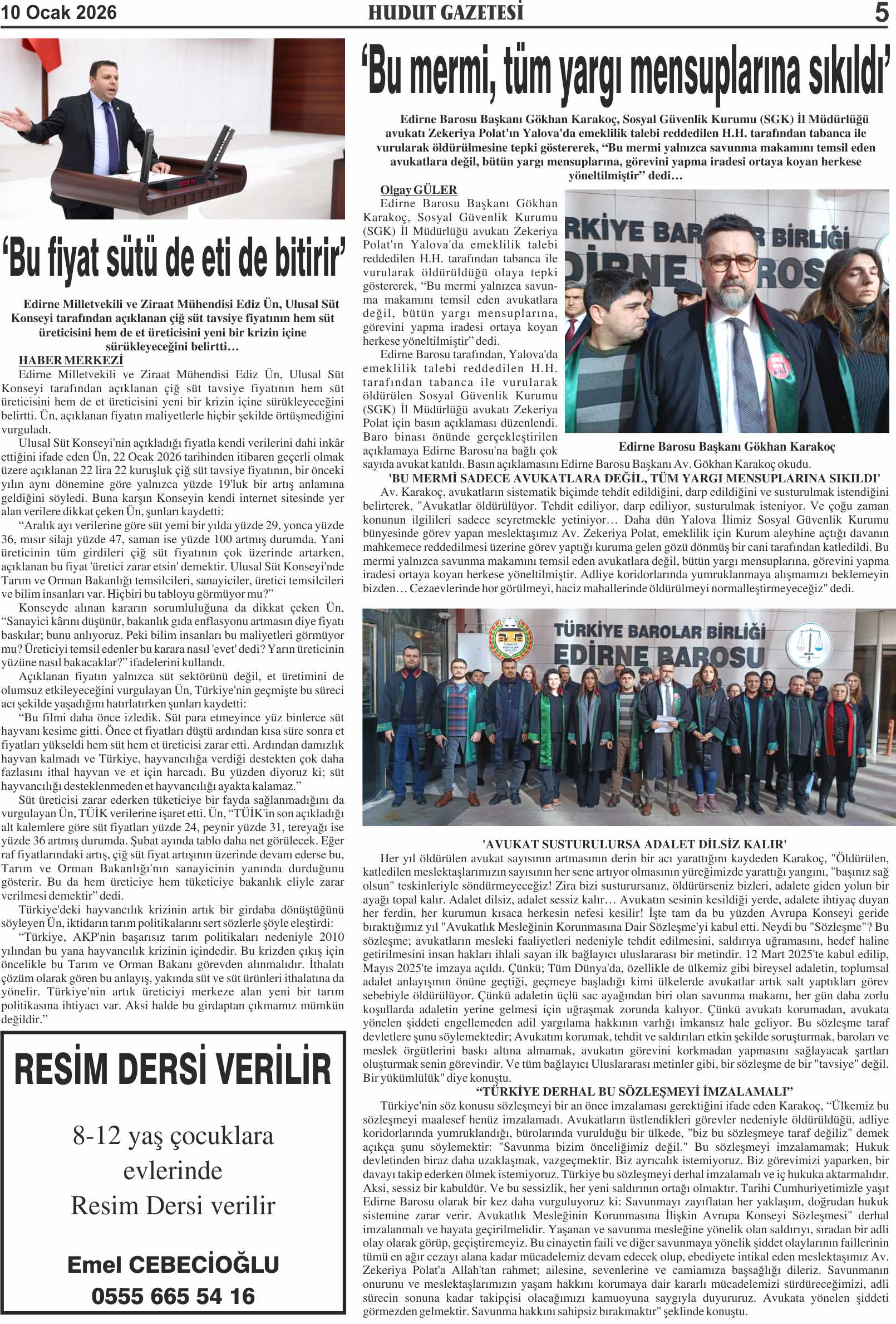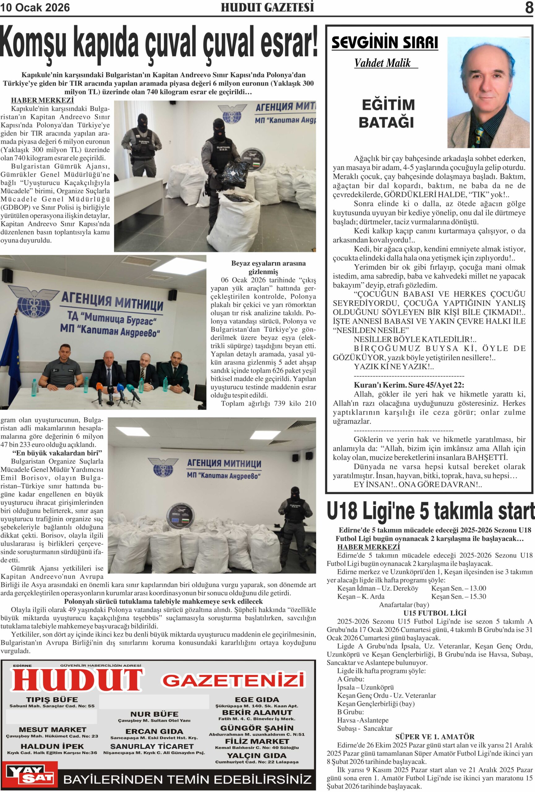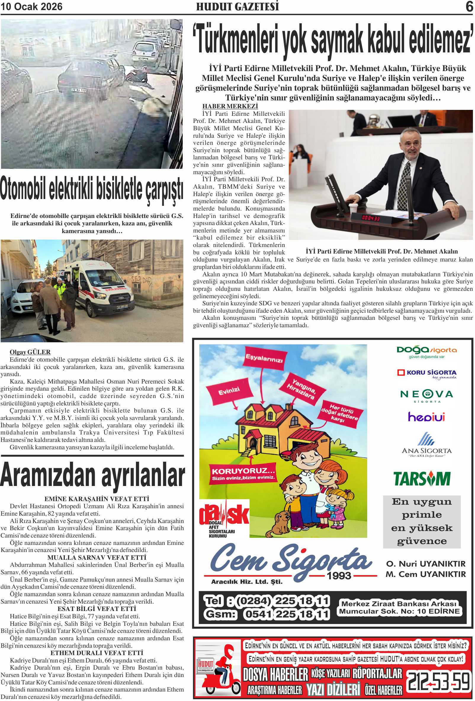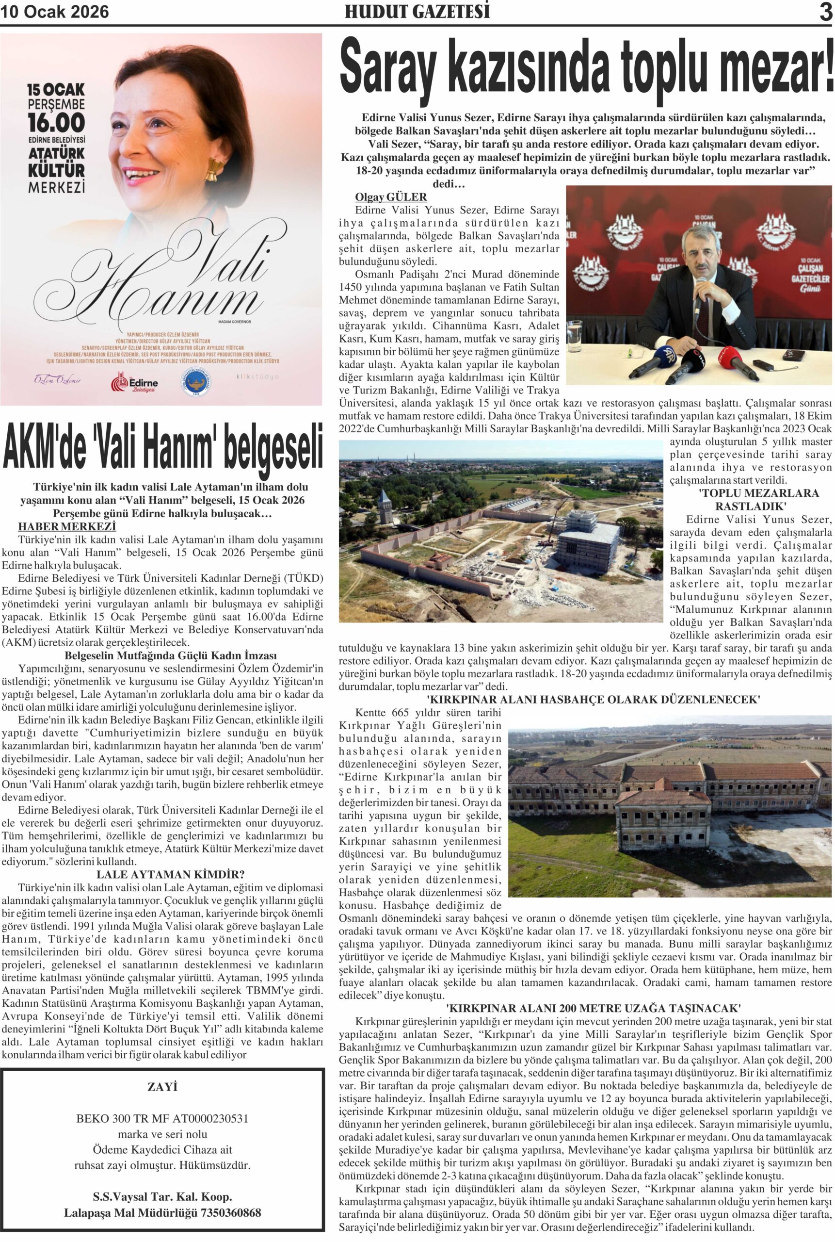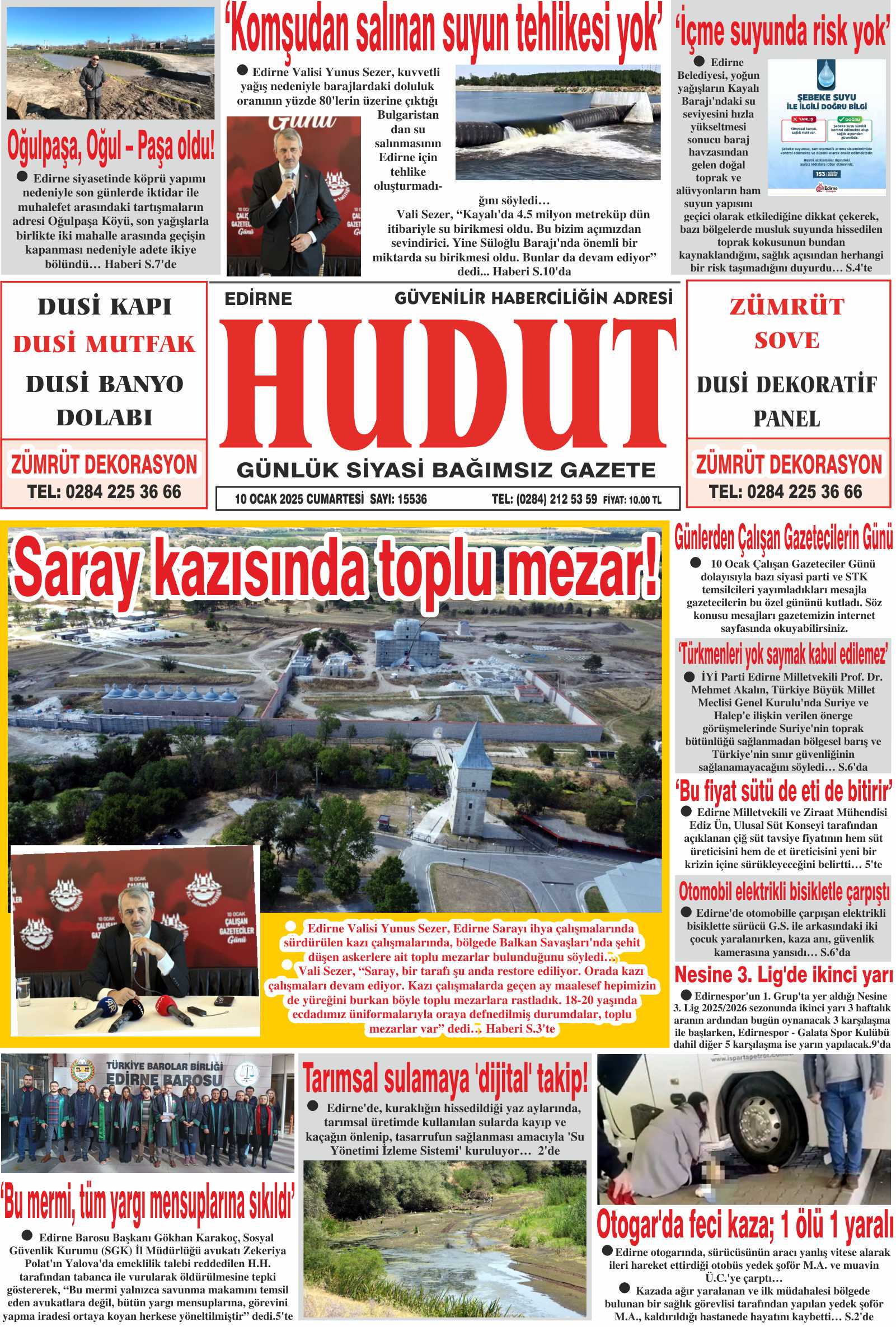 10 Ocak 2026 Cumartesi Hudut Gazetesi