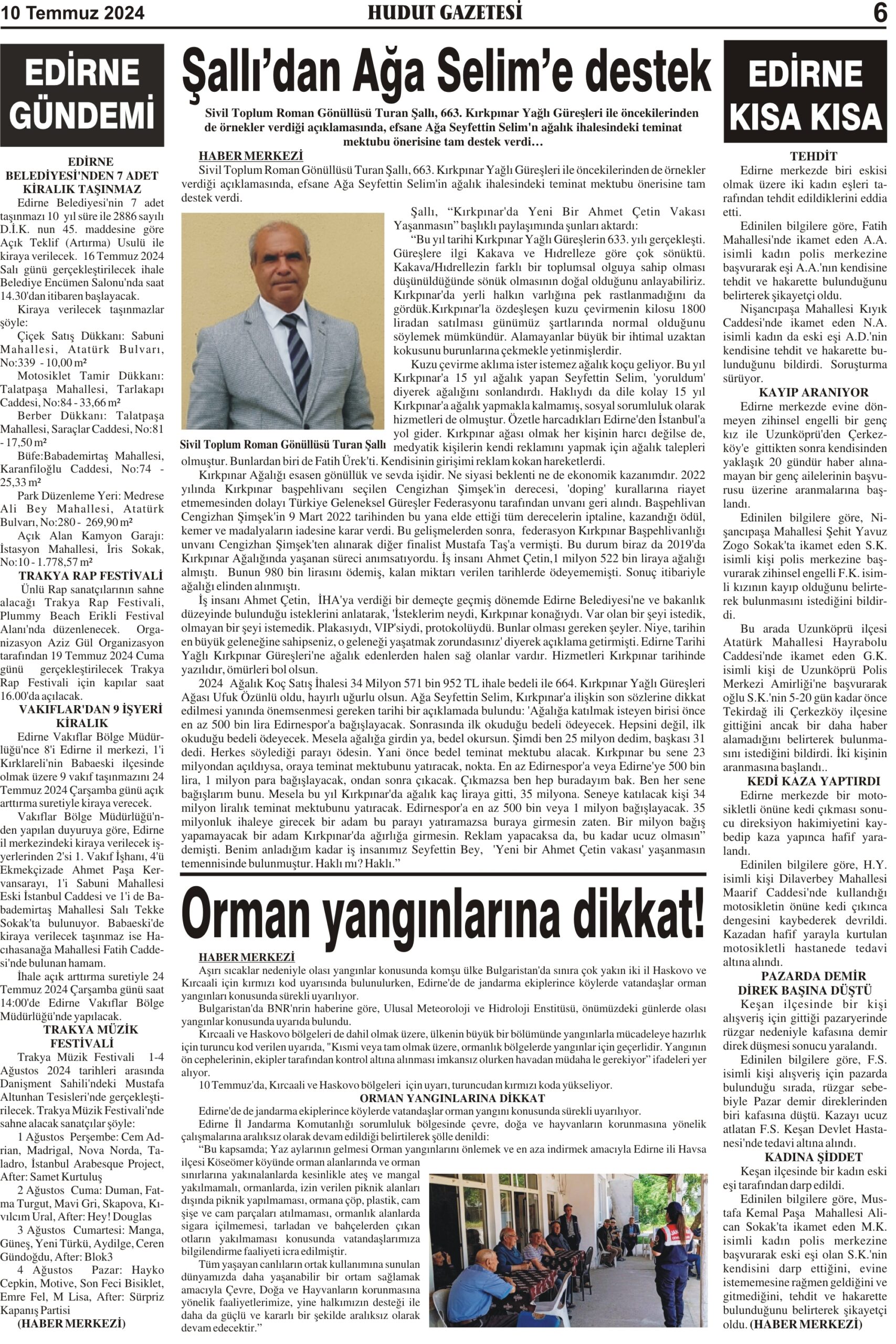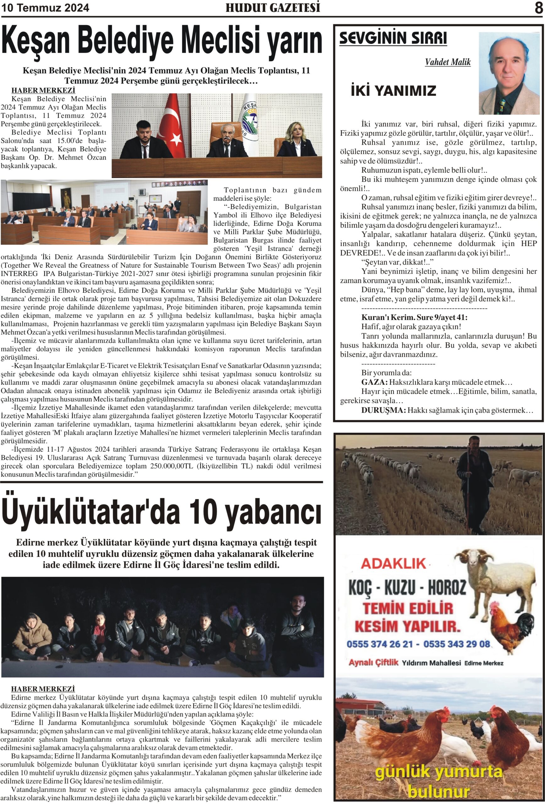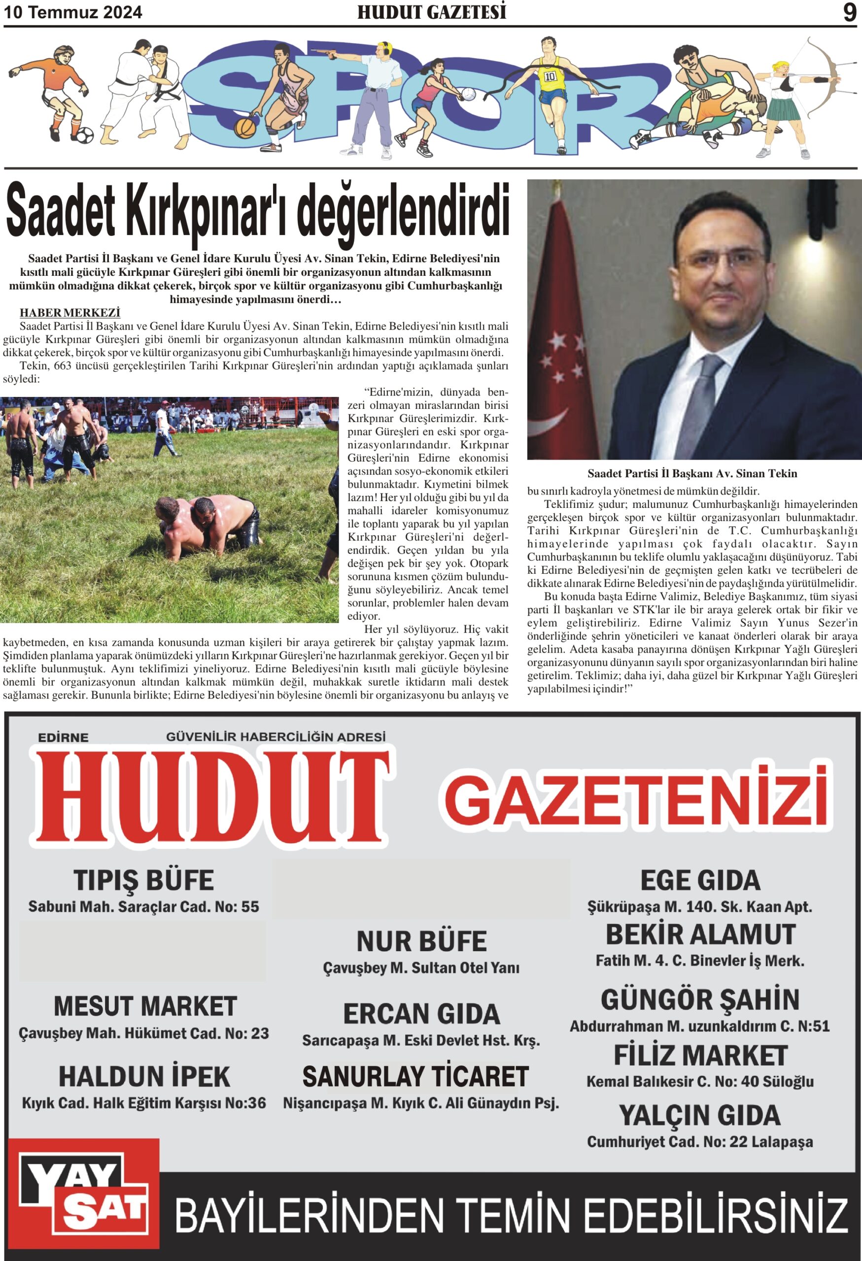 10 Temmuz 2024 Çarşamba Hudut Gazetesi