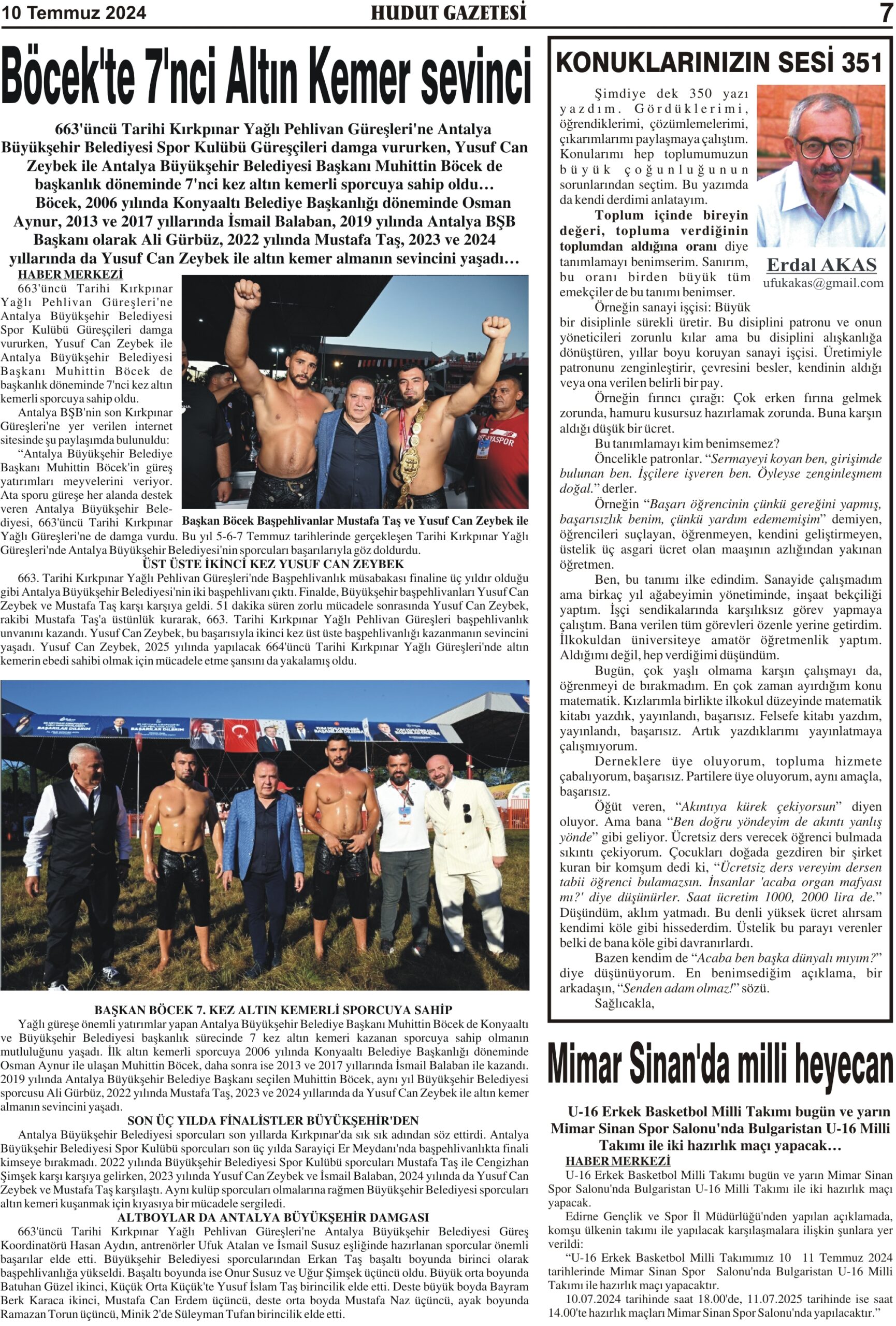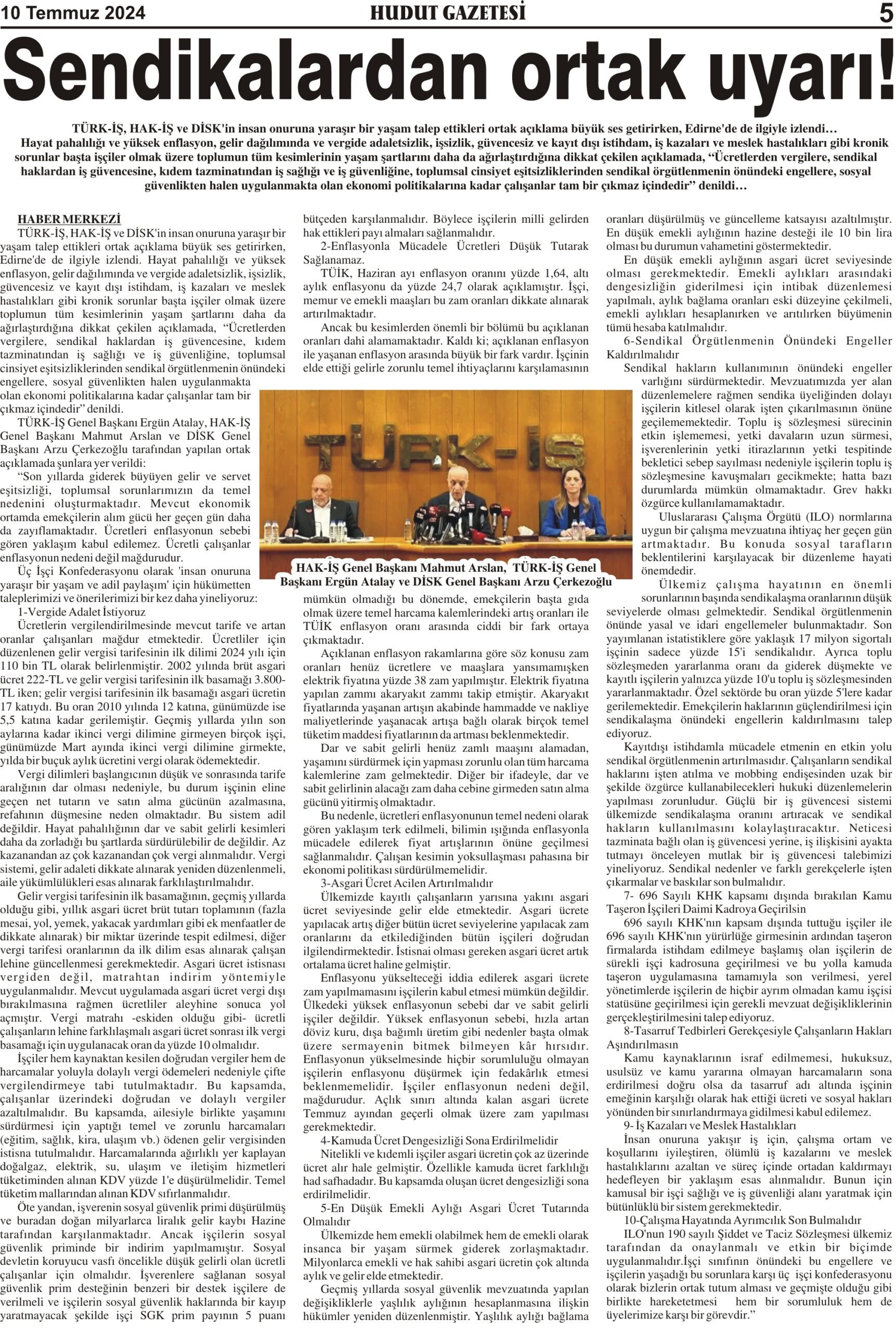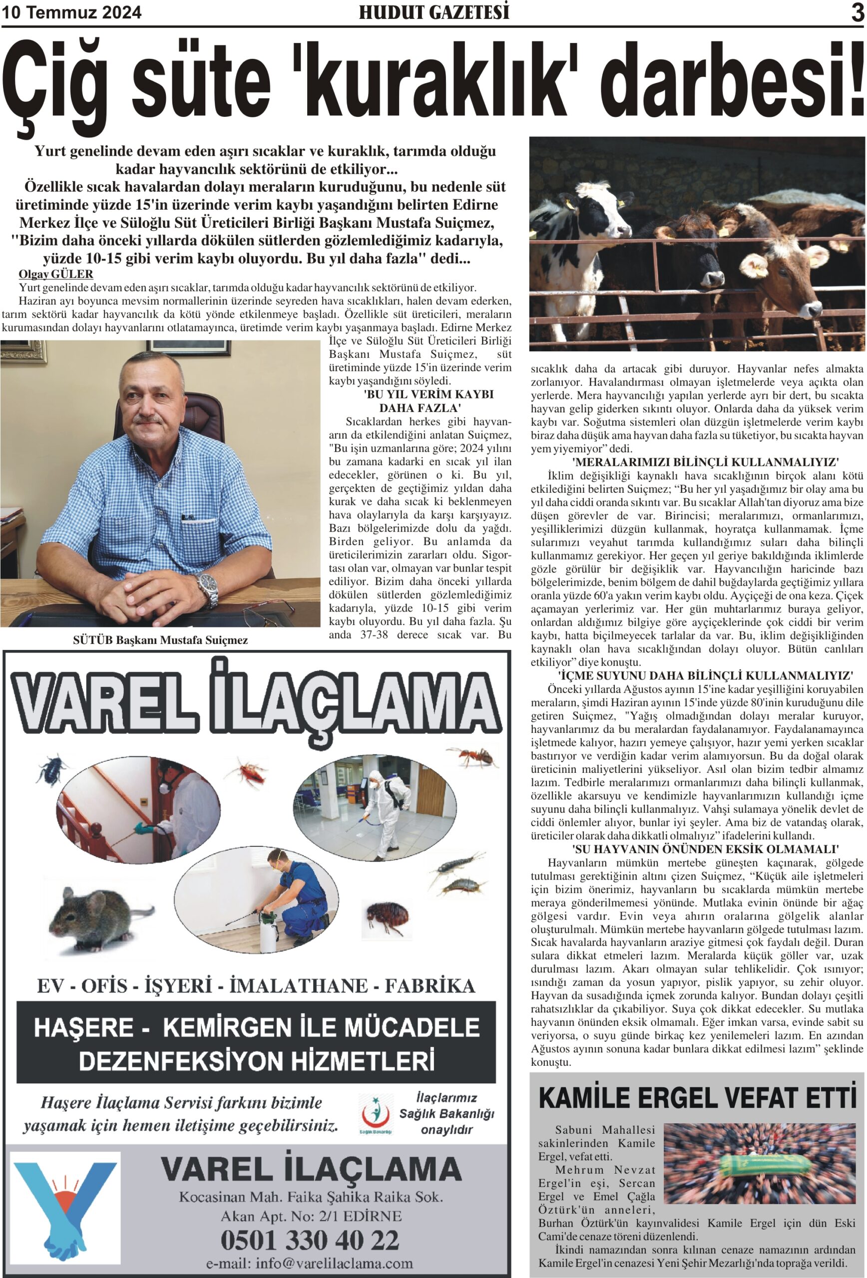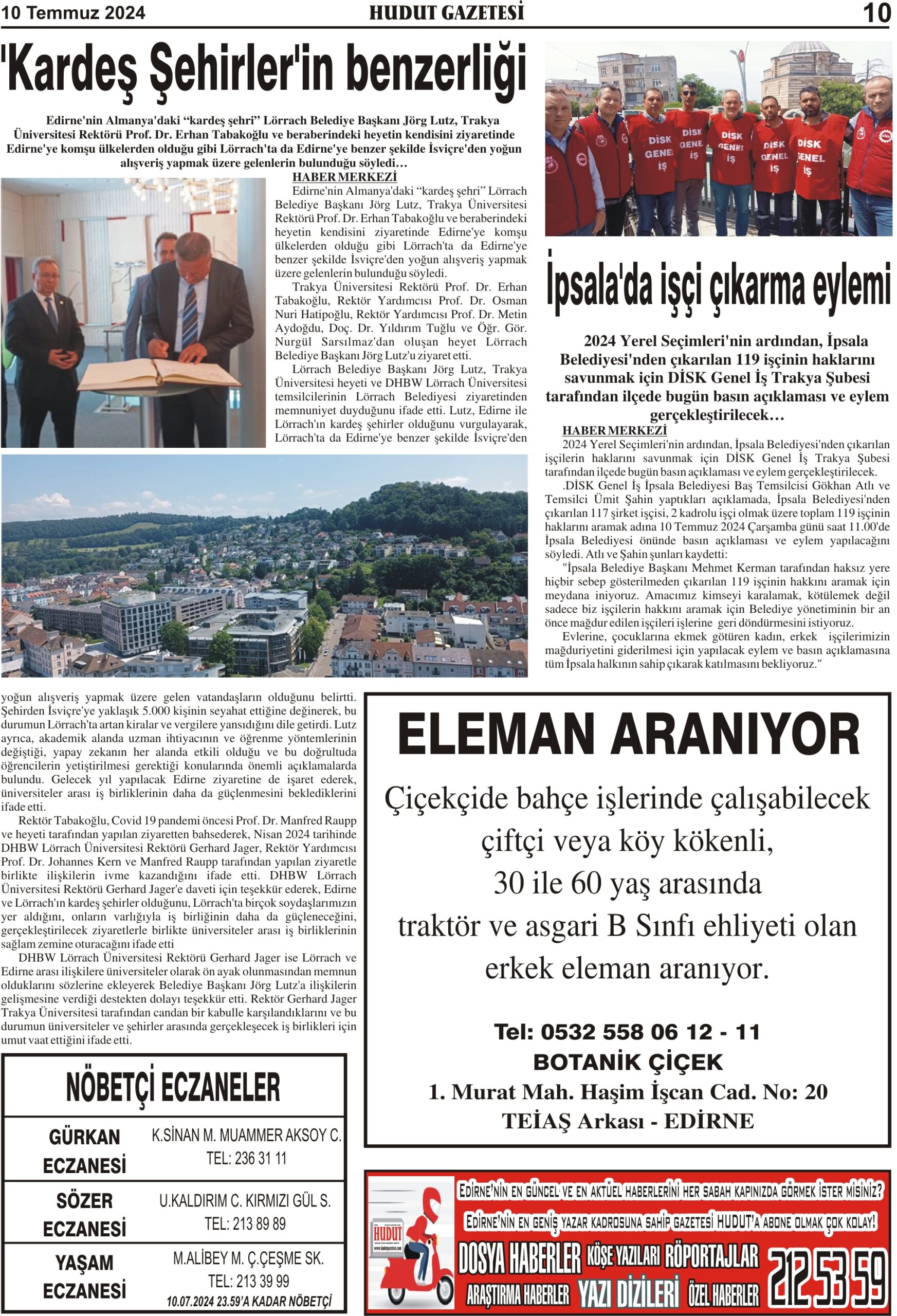 10 Temmuz 2024 Çarşamba Hudut Gazetesi