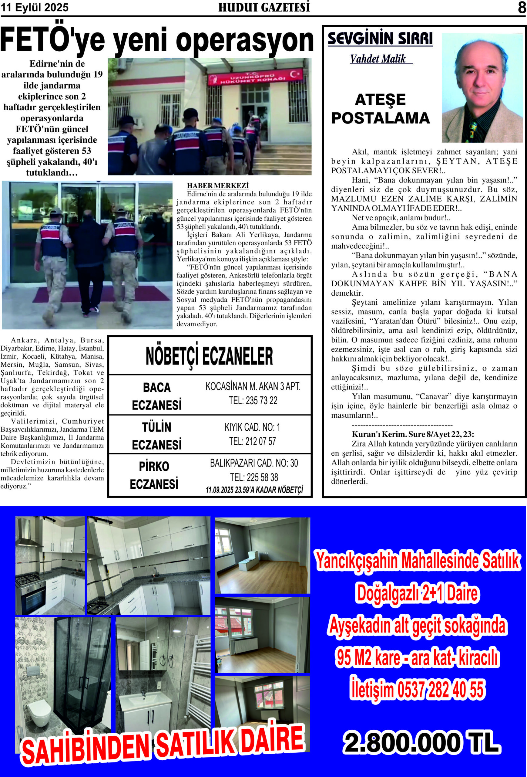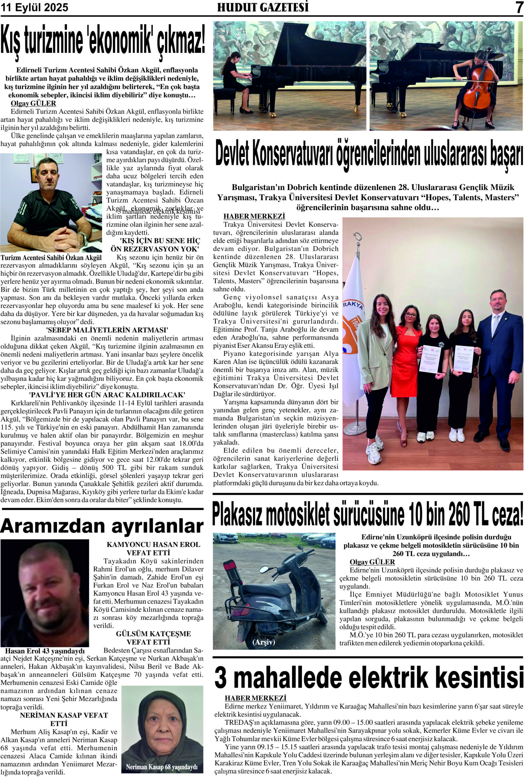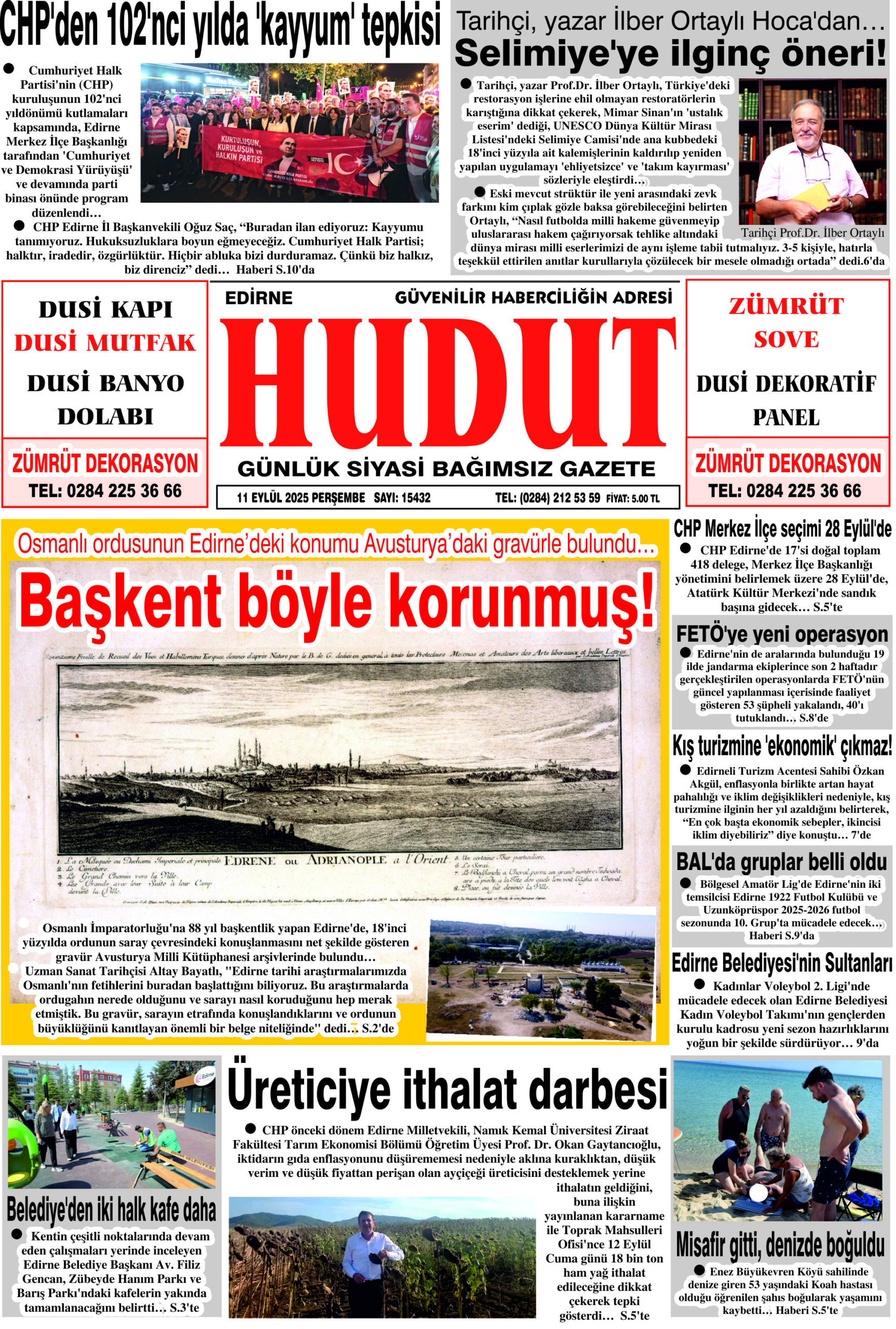 11 Eylül 2025 Perşembe Hudut Gazetesi