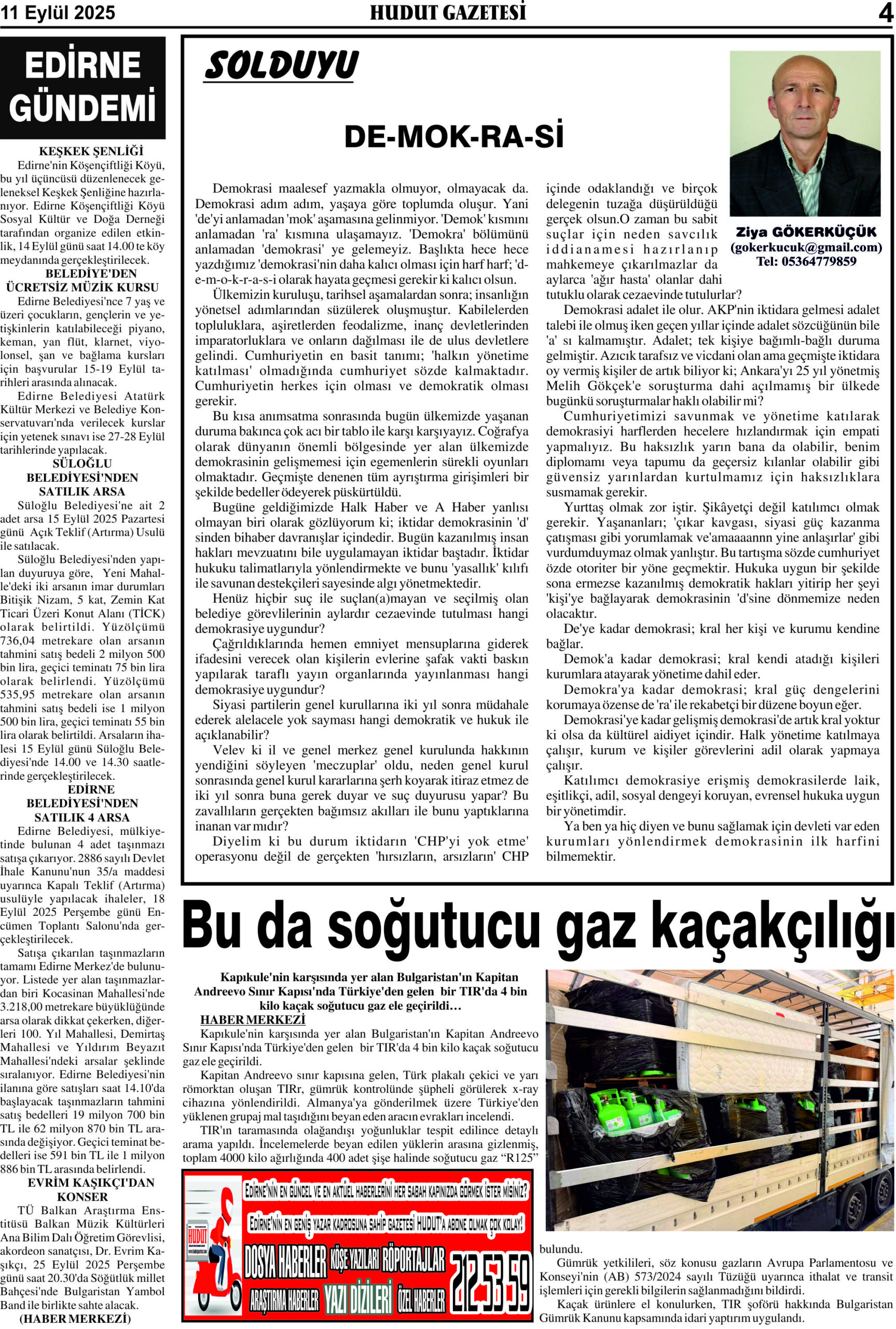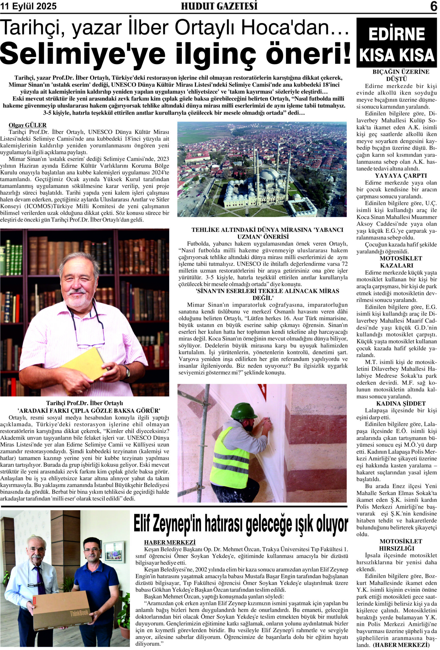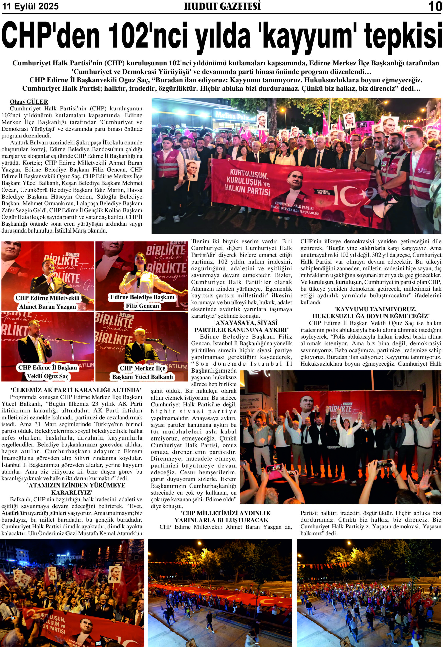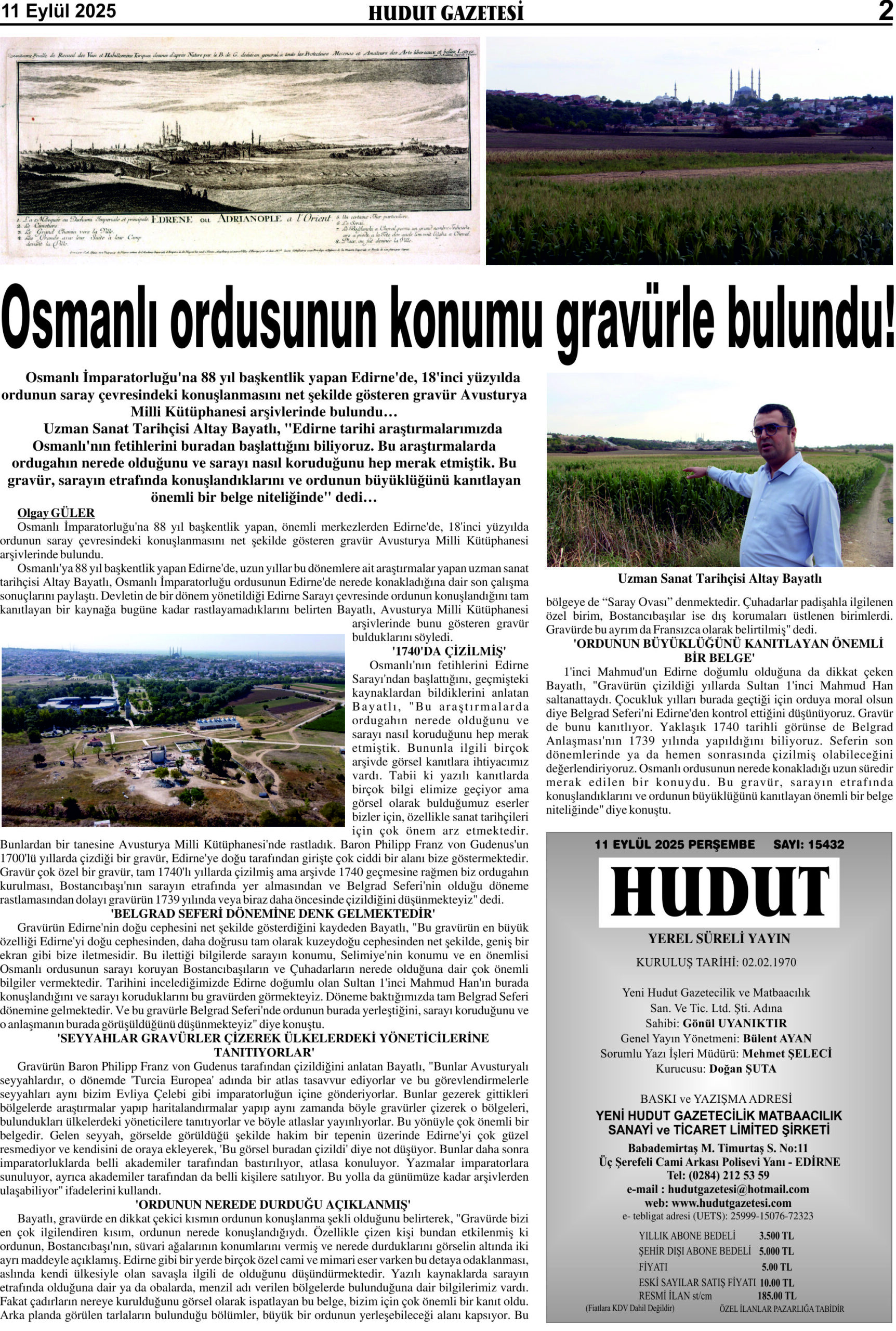 11 Eylül 2025 Perşembe Hudut Gazetesi
