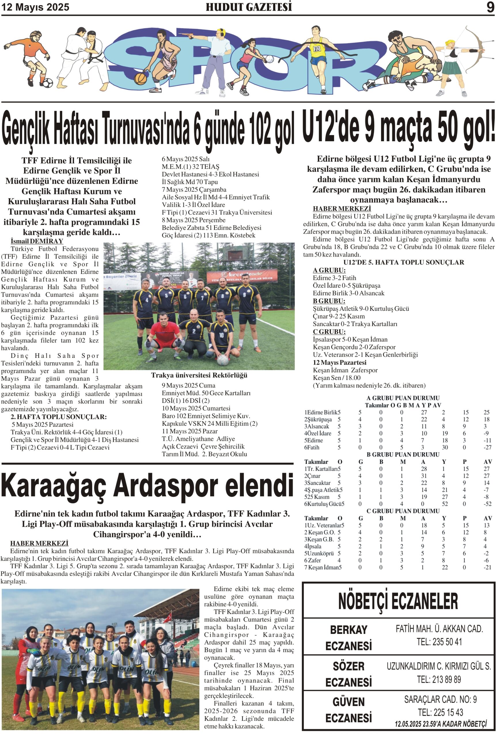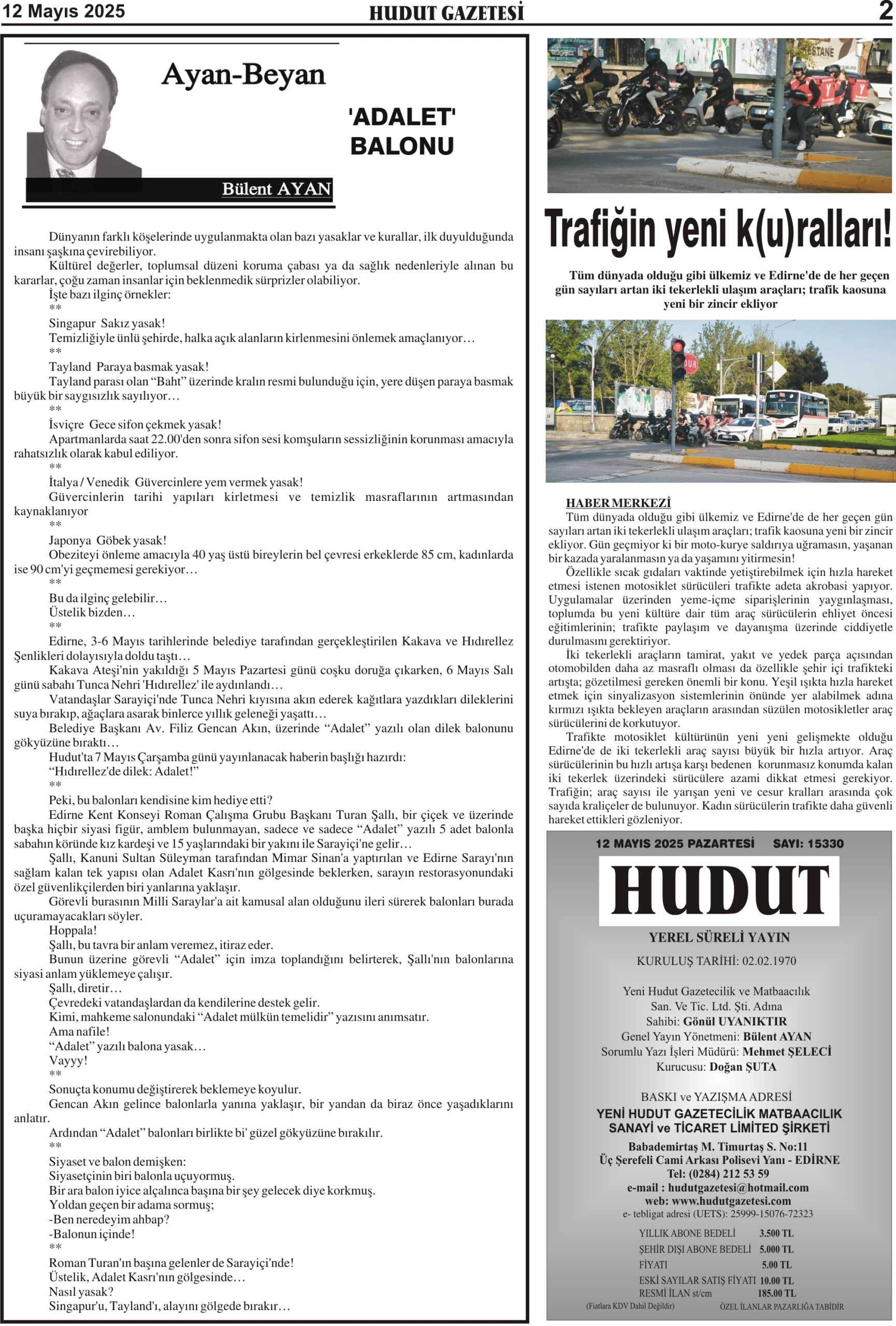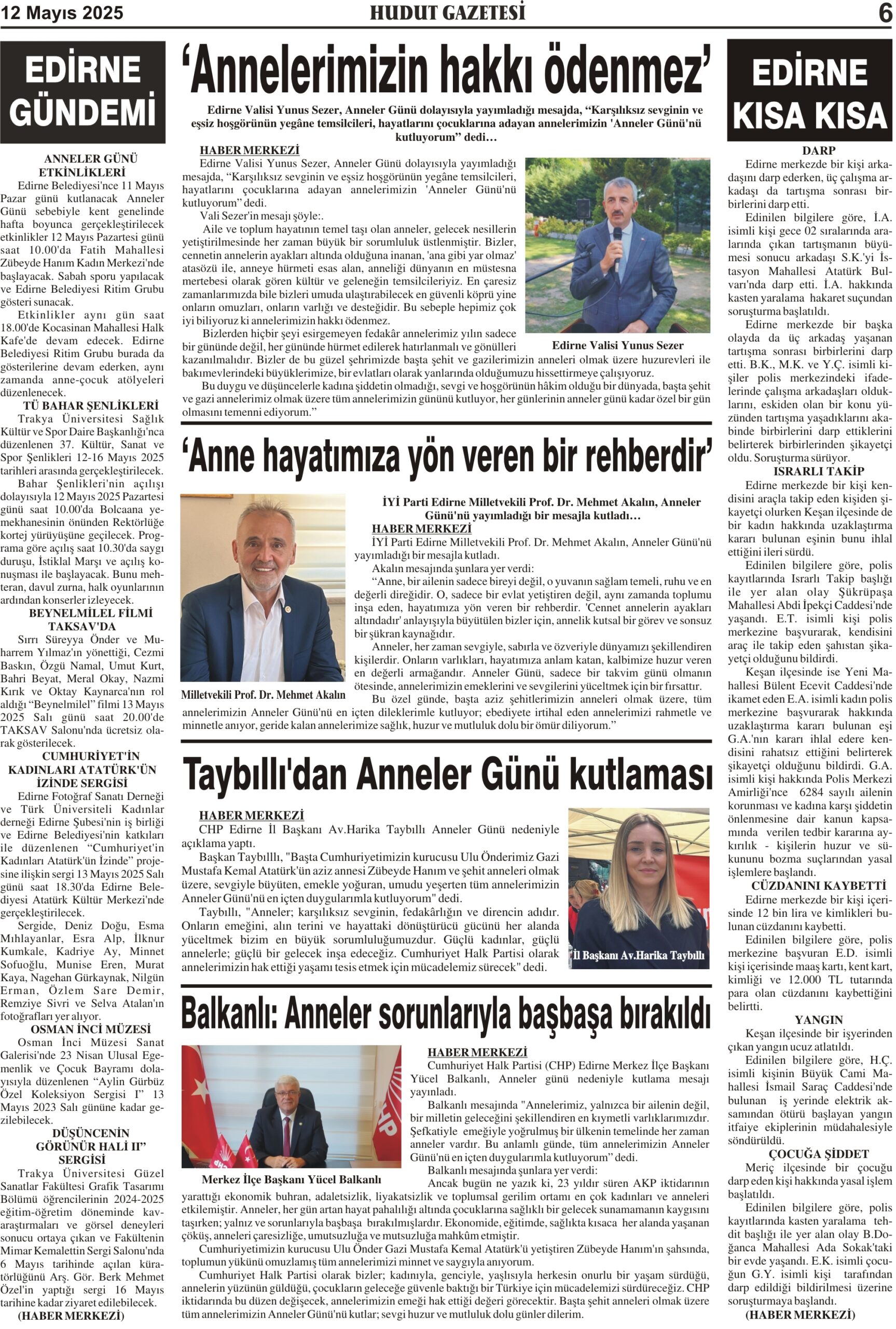 12 Mayıs 2025 Pazartesi Hudut Gazetesi