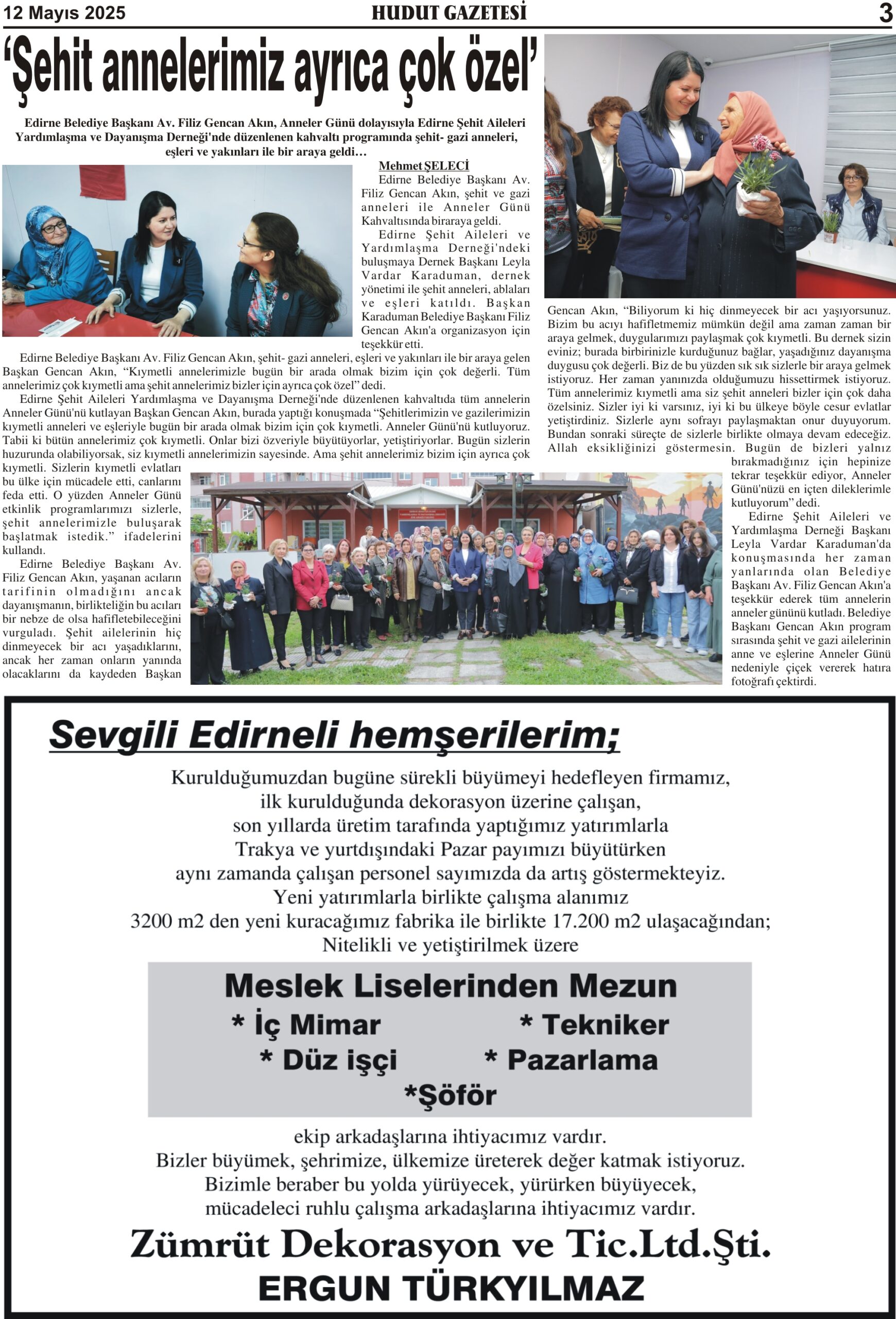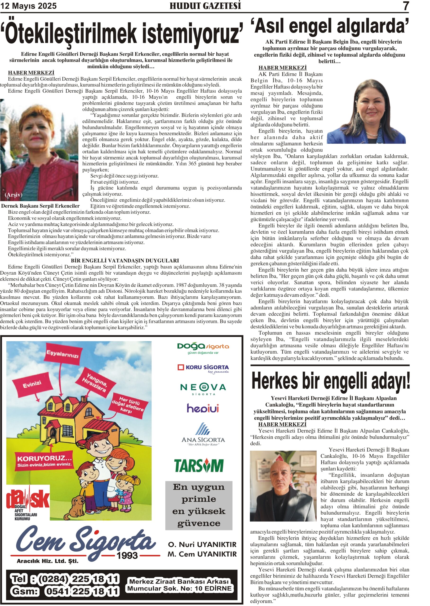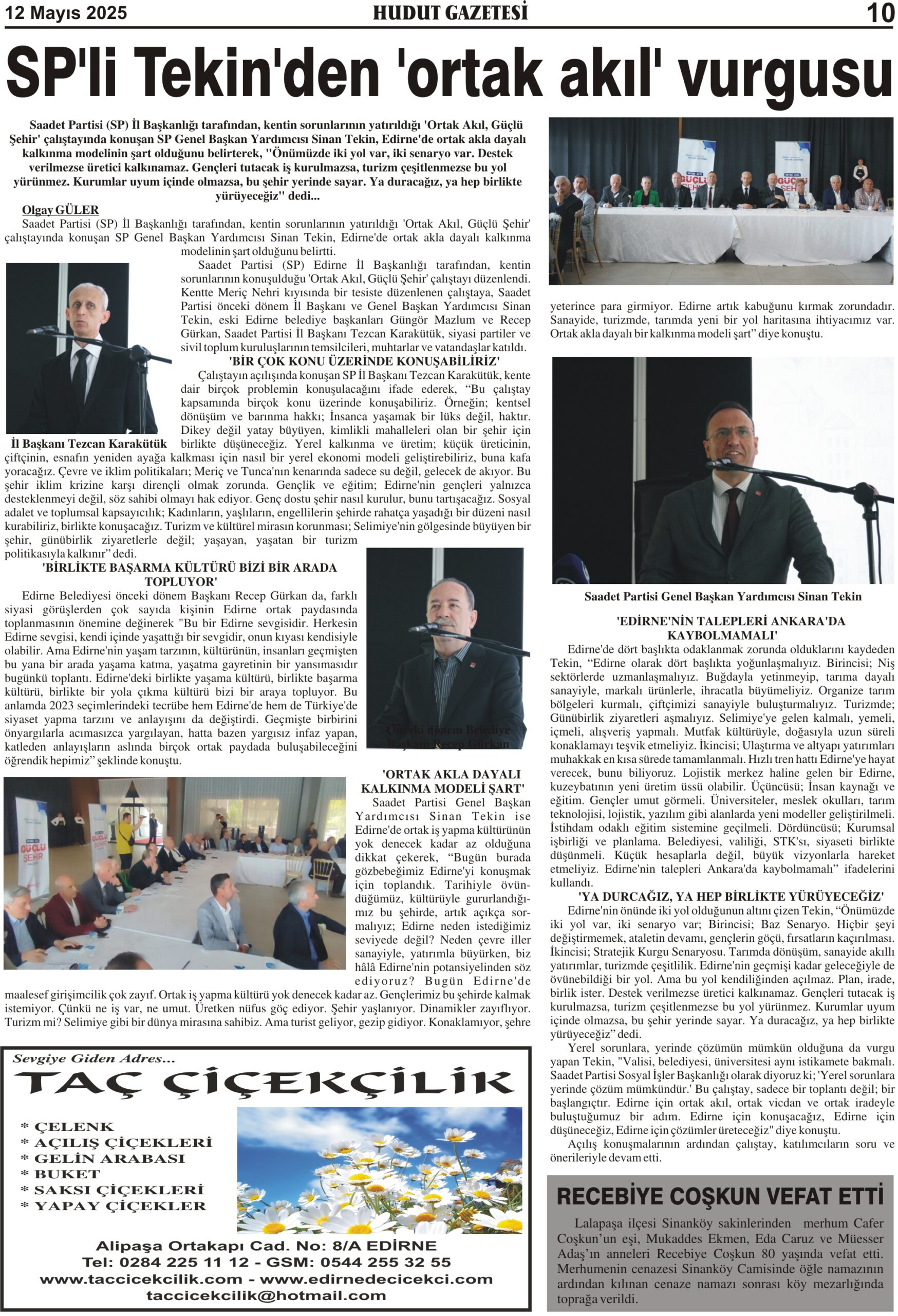 12 Mayıs 2025 Pazartesi Hudut Gazetesi
