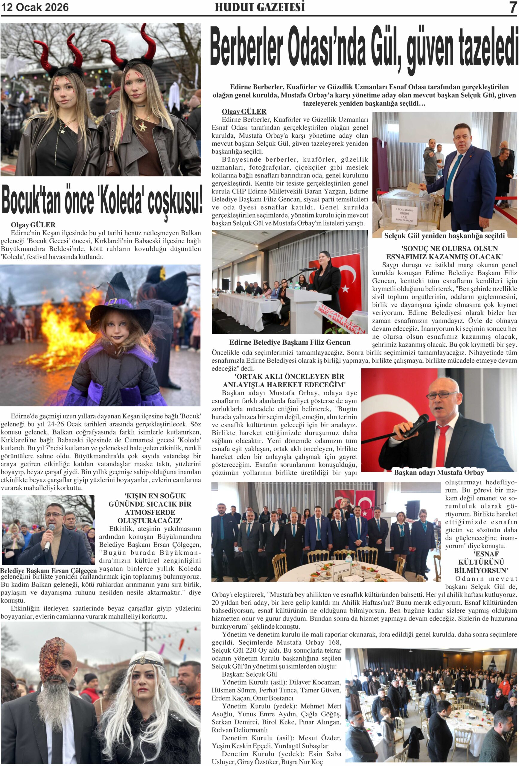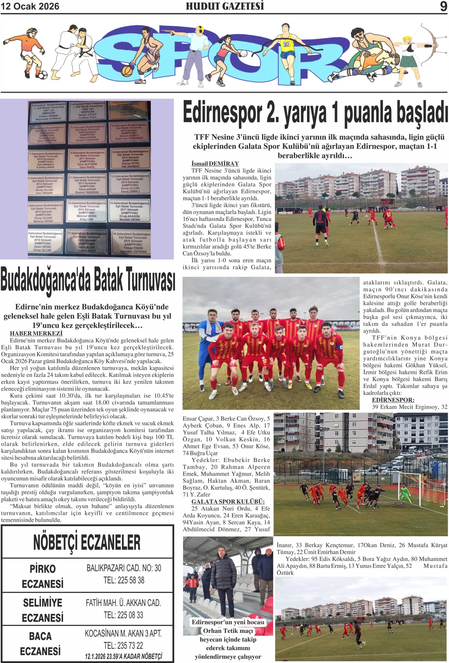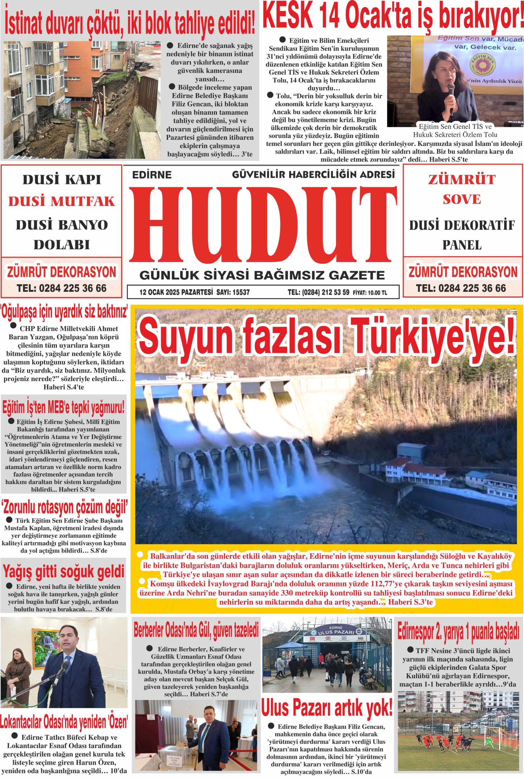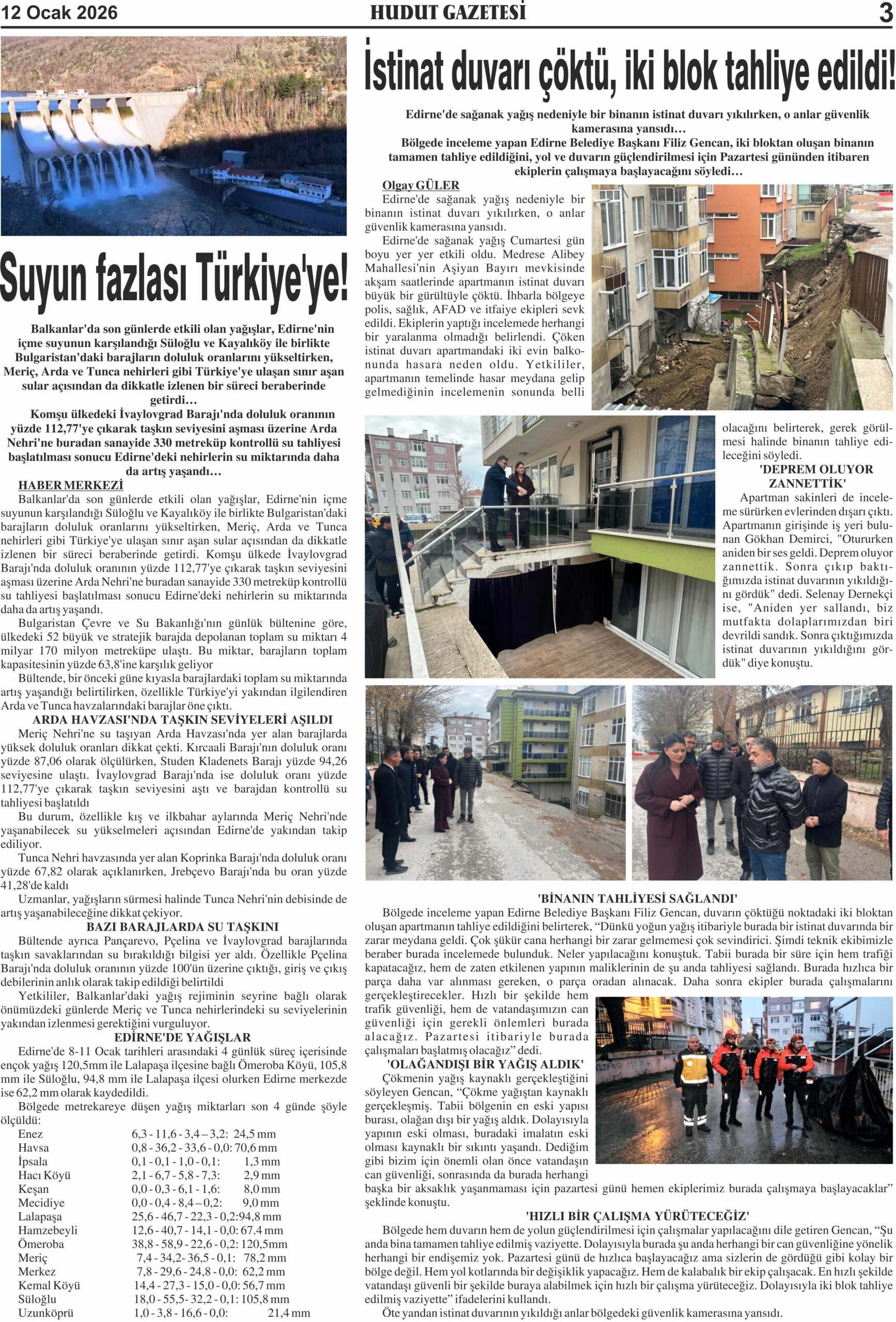 12 Ocak 2026 Pazartesi Hudut Gazetesi