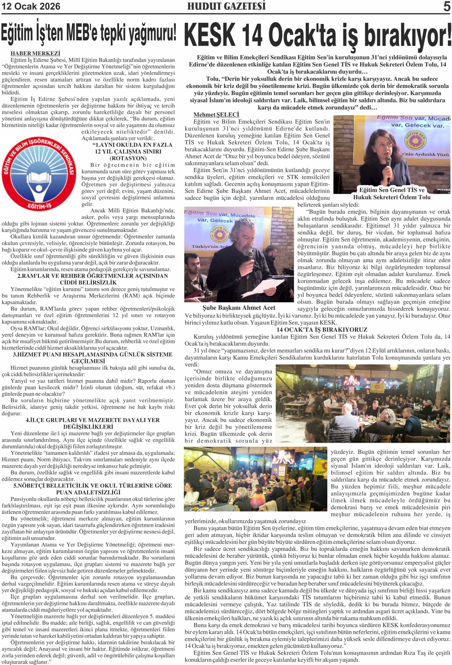 5 Ocak 2026 Pazartesi Hudut Gazetesi