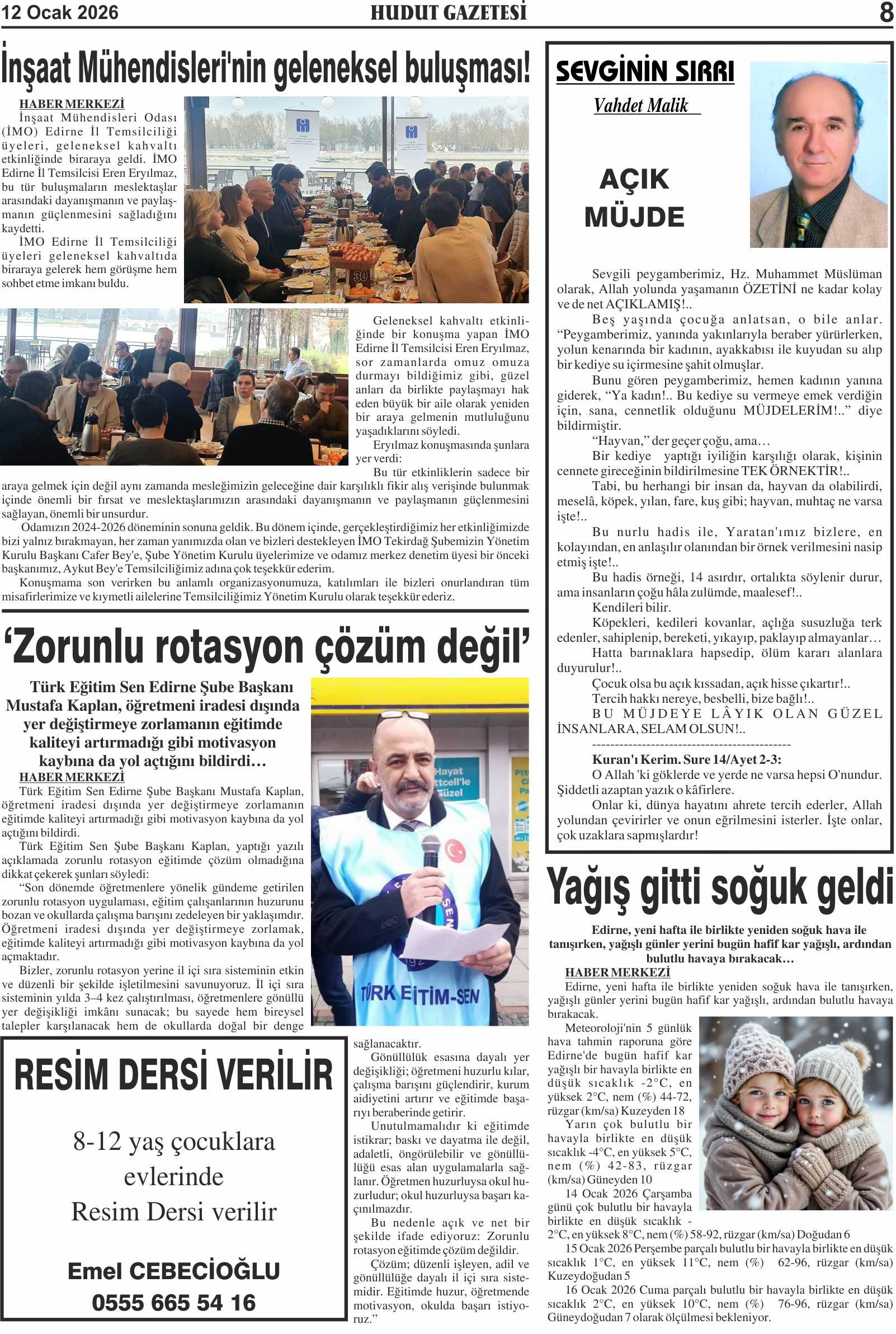 8 Ocak 2026 Perşembe Hudut Gazetesi