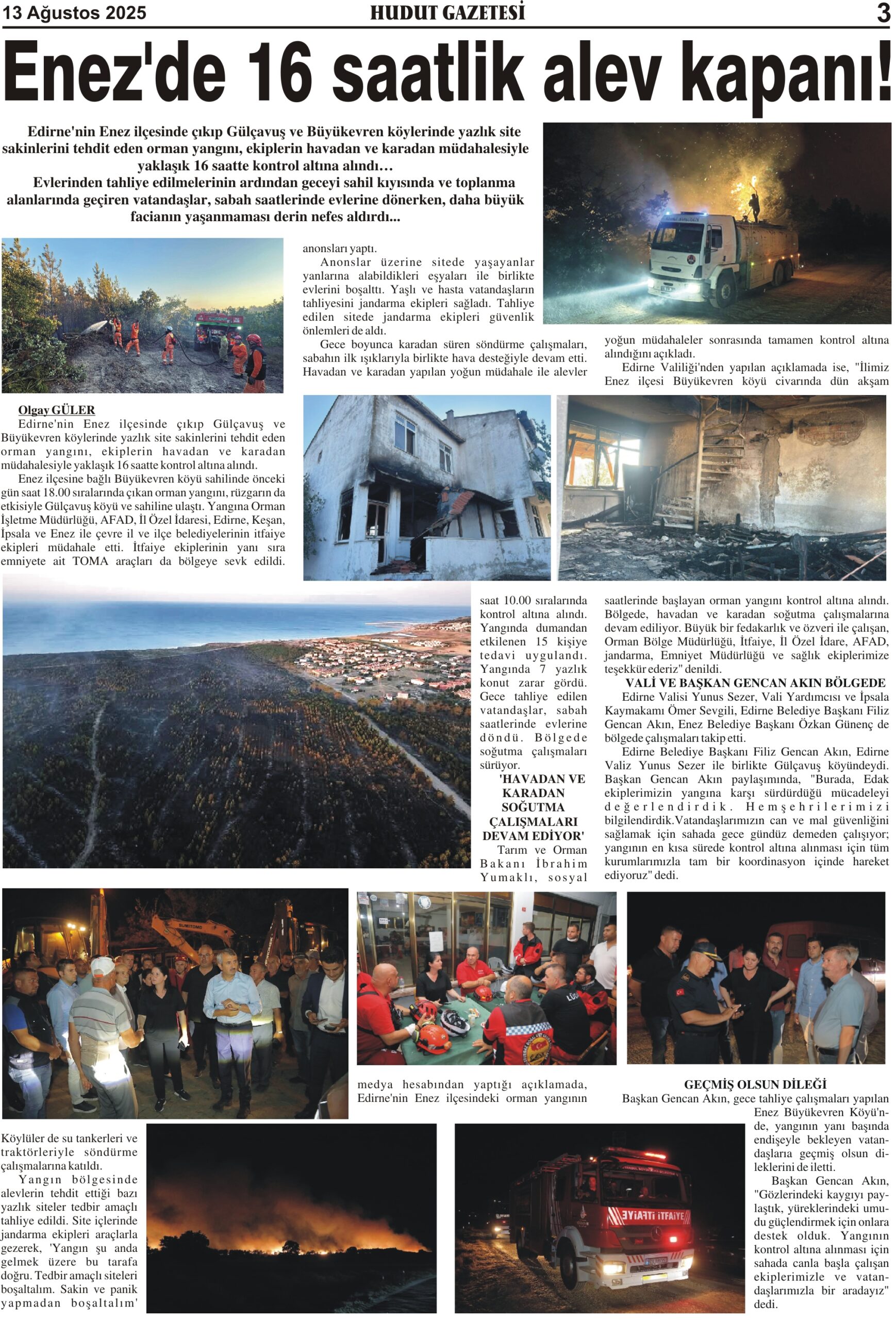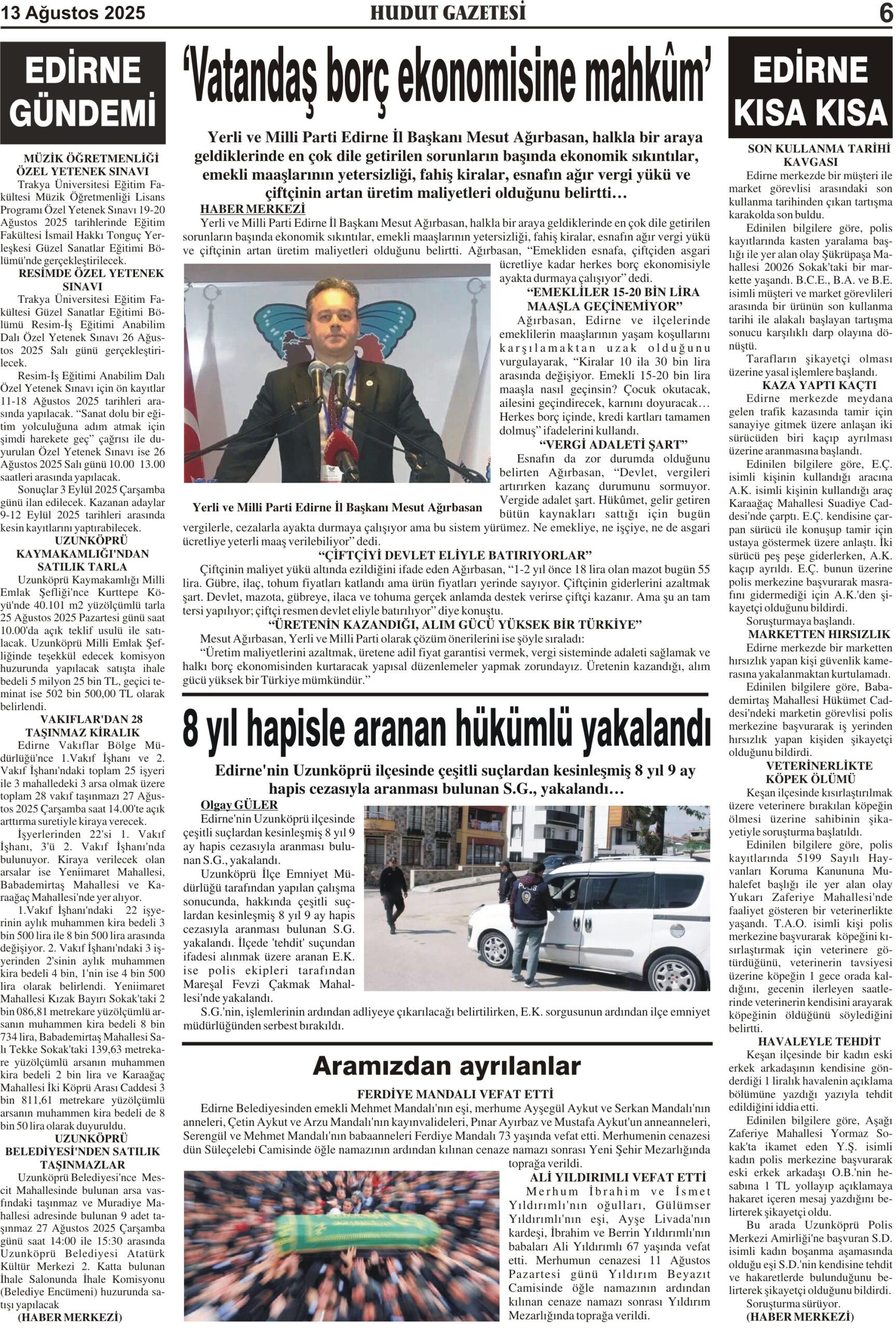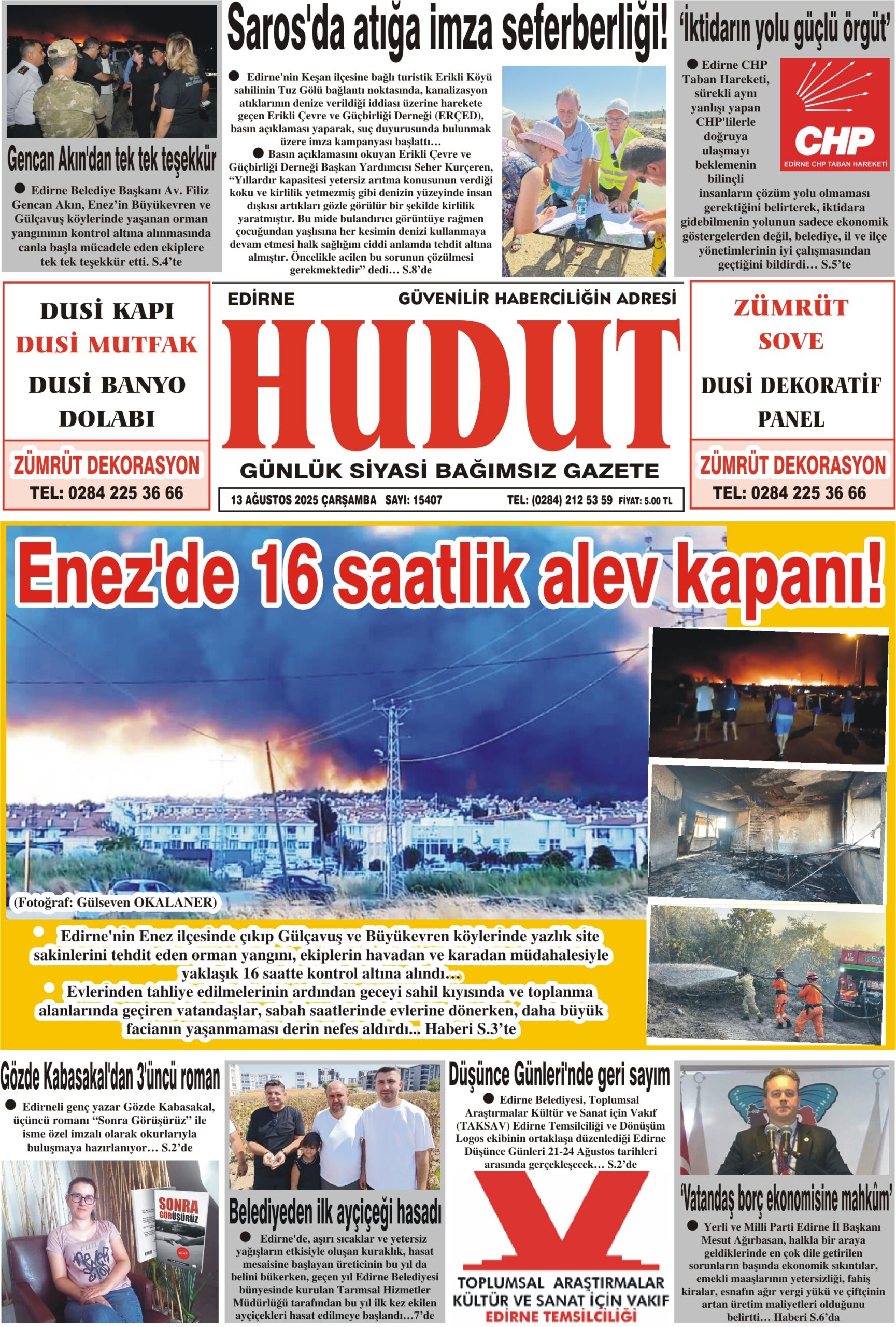 13 Ağustos 2025 Çarşamba Hudut Gazetesi