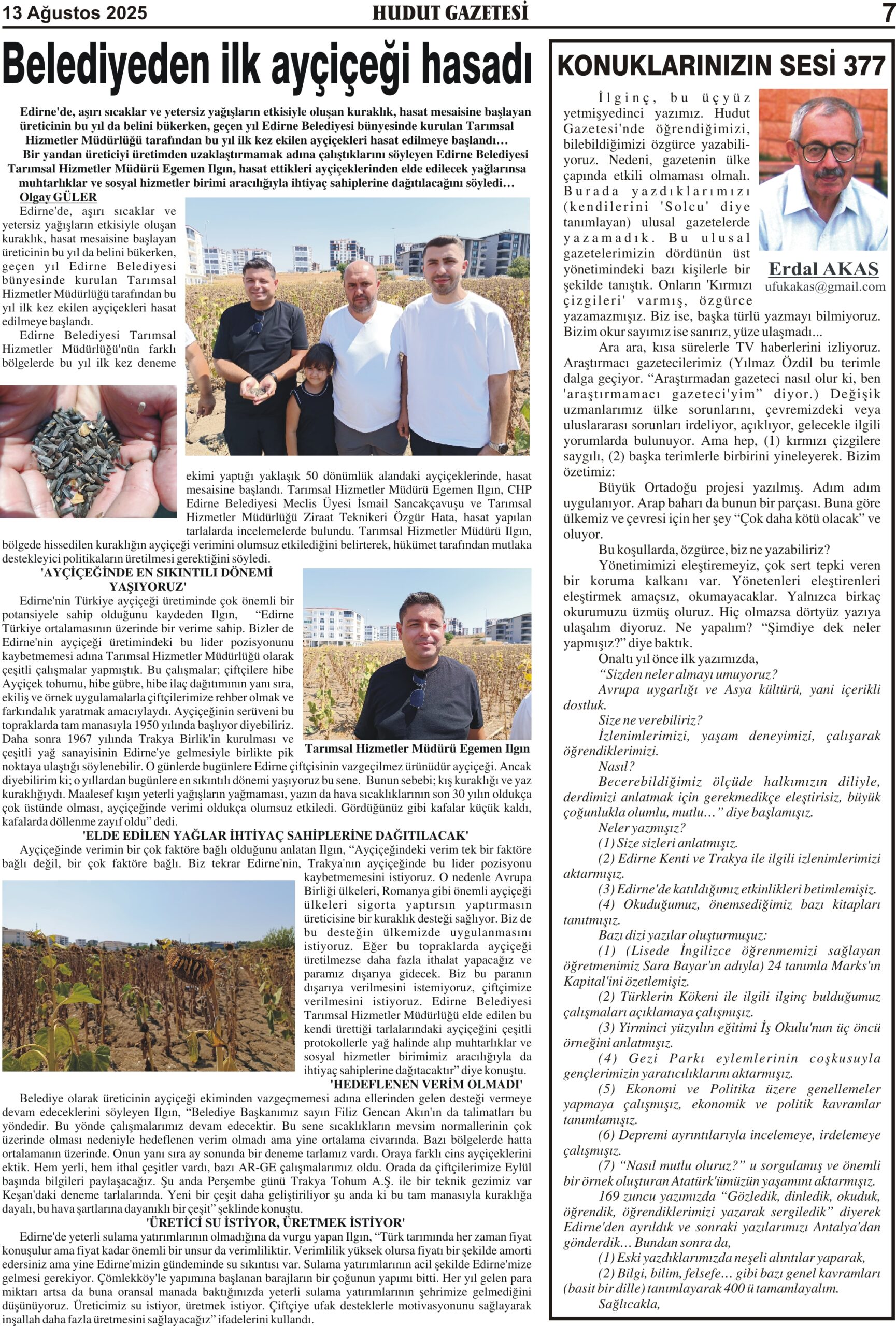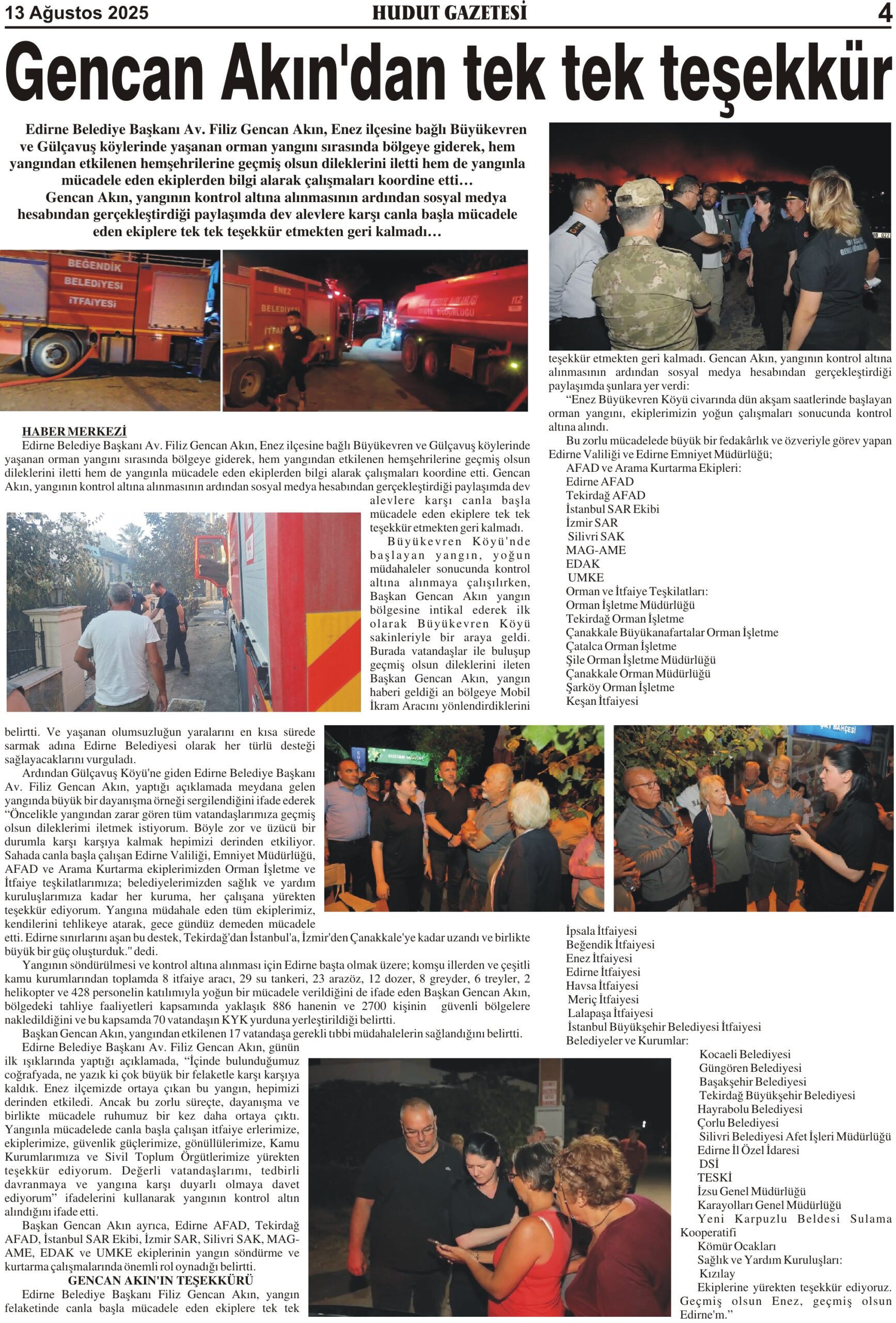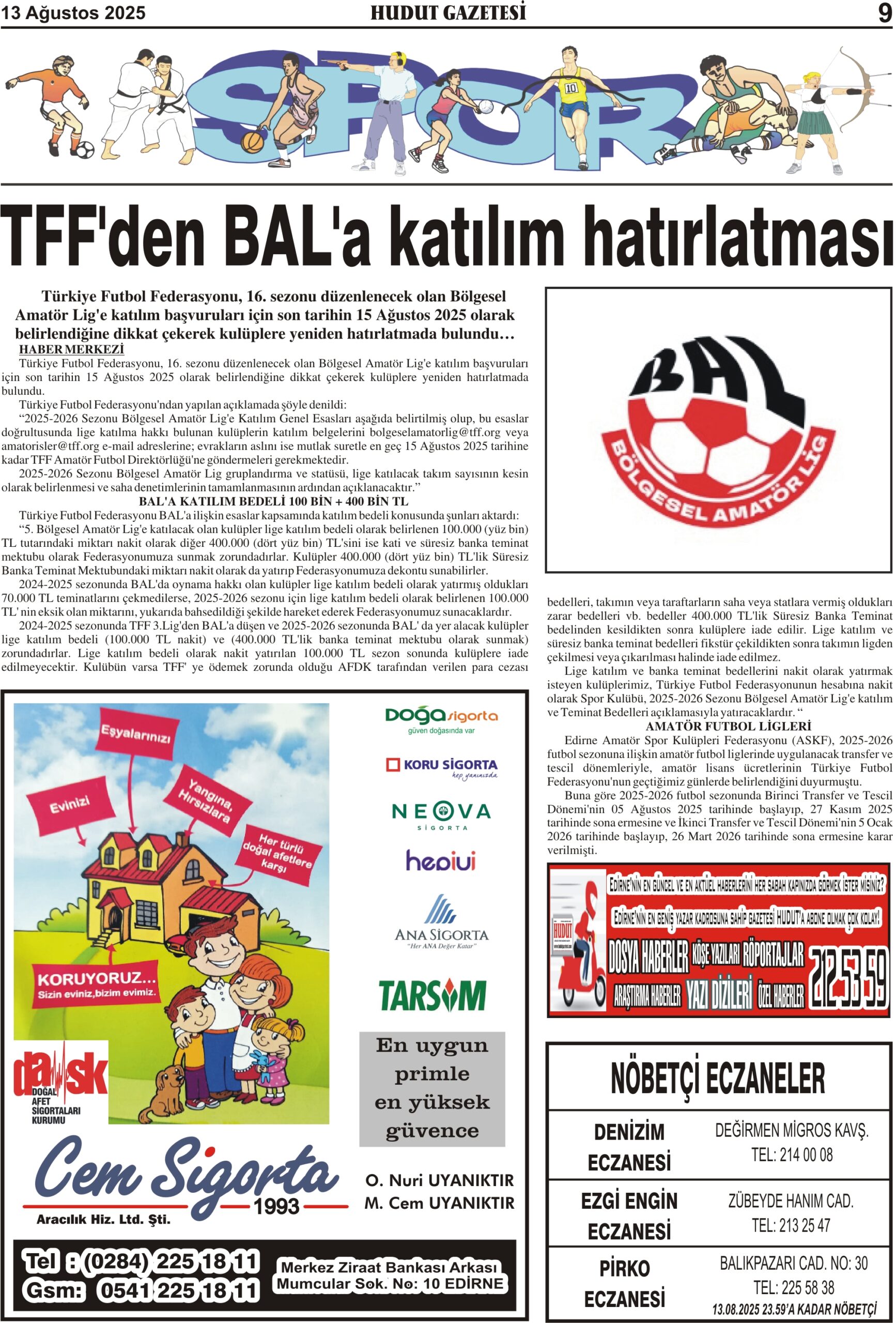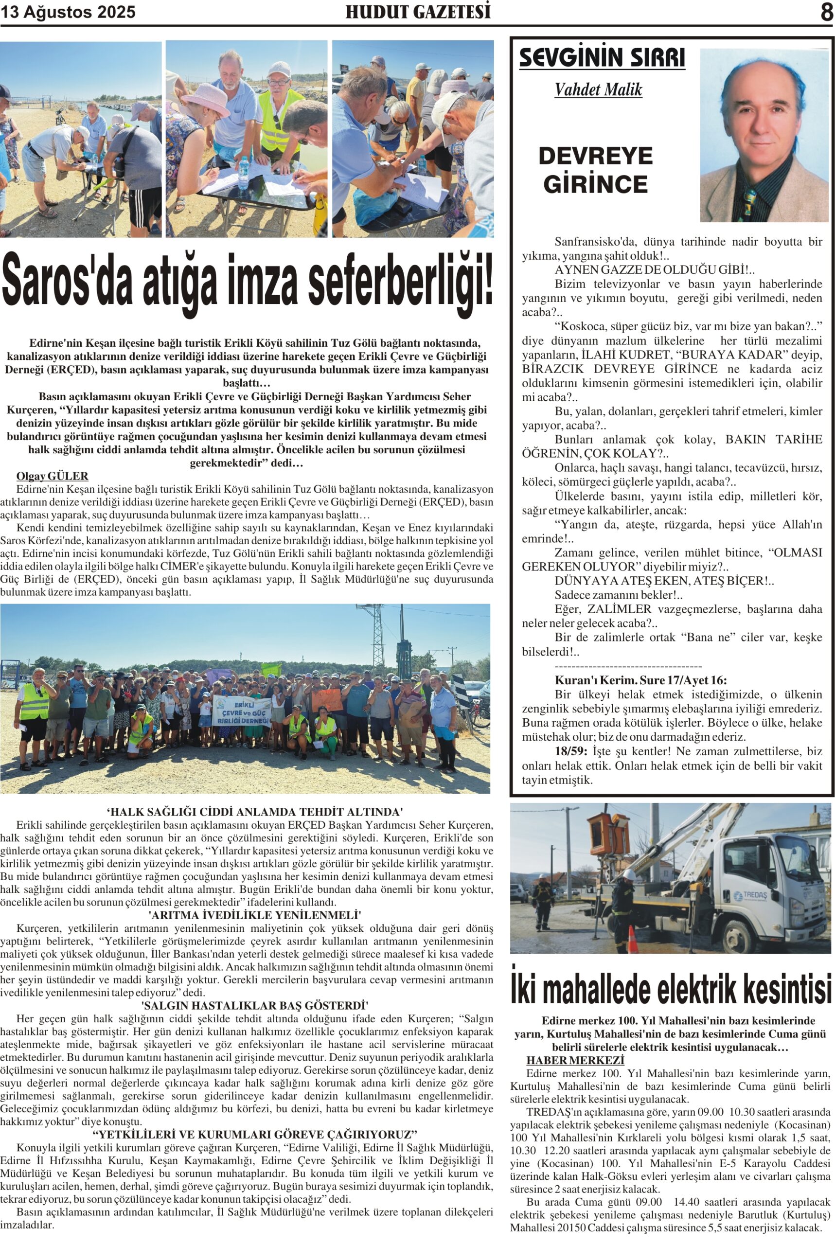 13 Ağustos 2025 Çarşamba Hudut Gazetesi