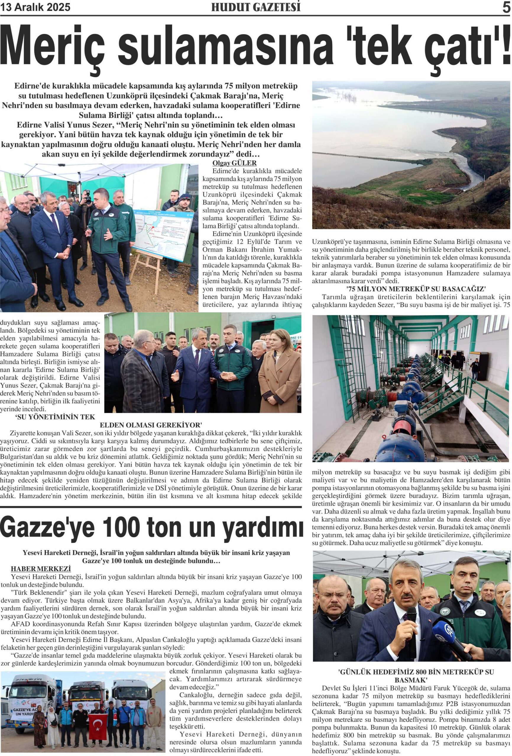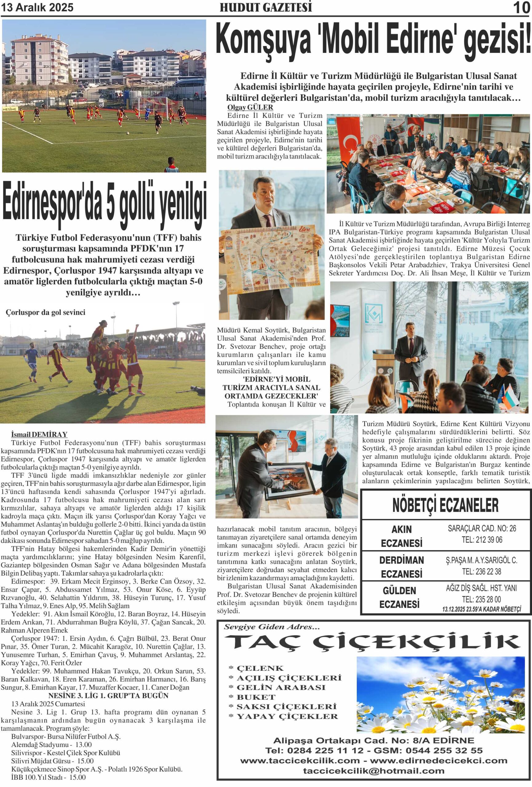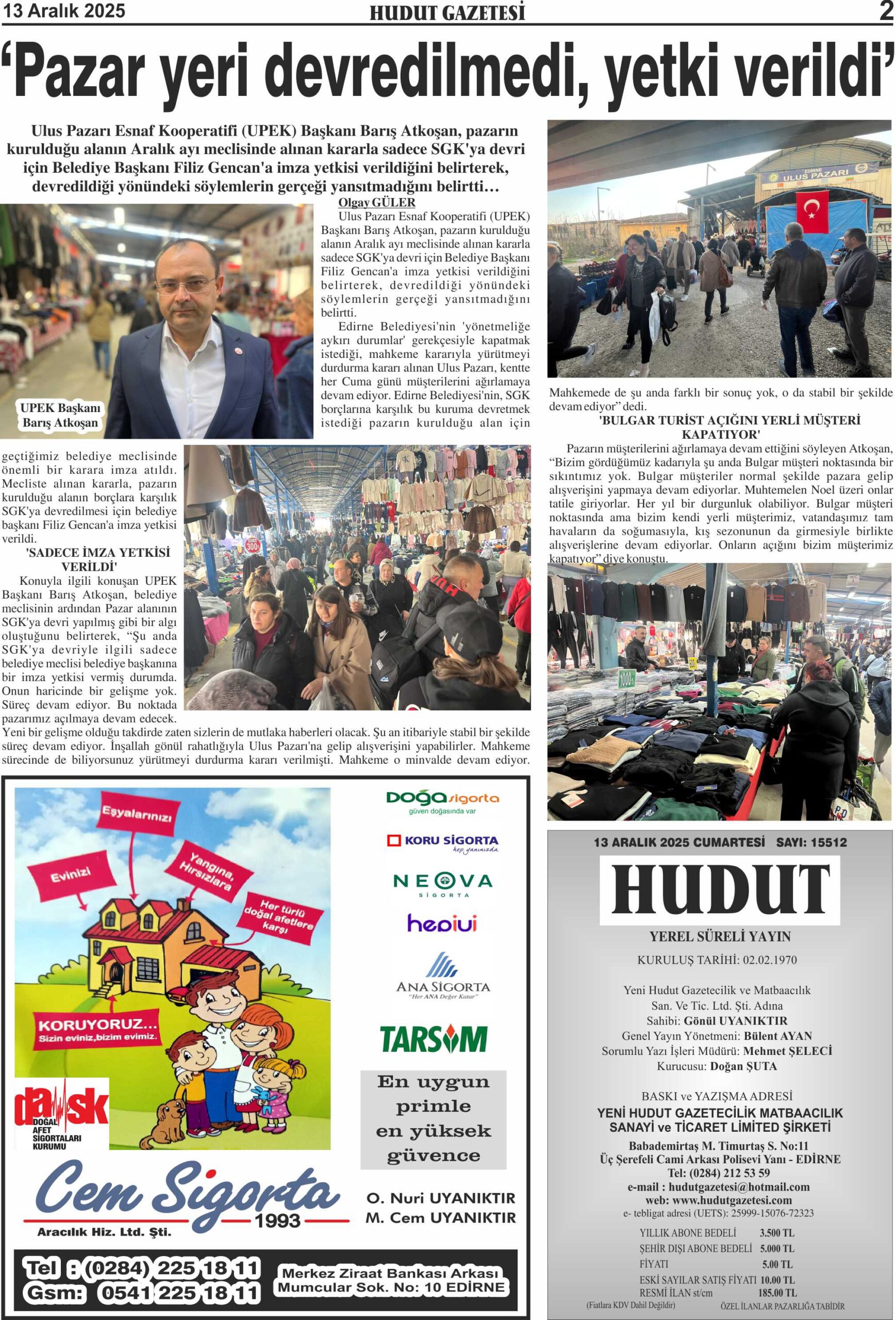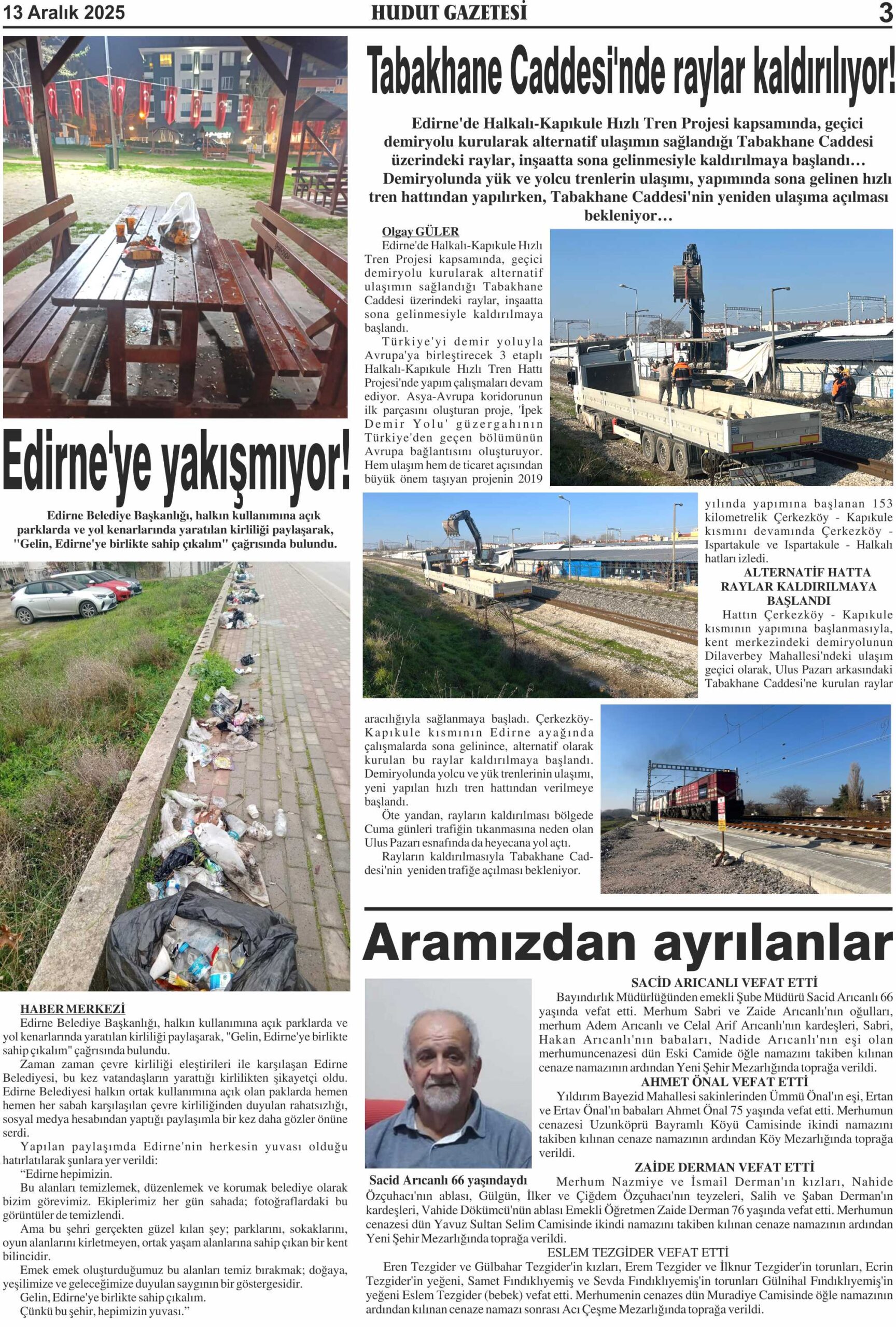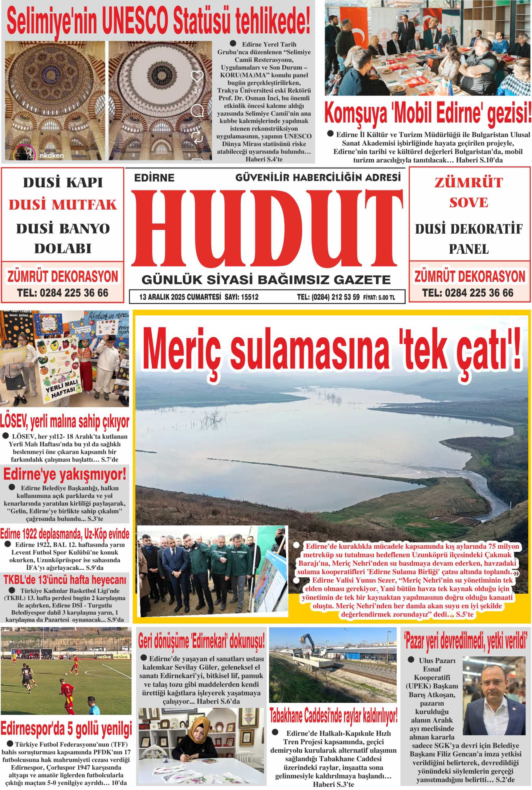 13 Aralık 2025 Cumartesi Hudut Gazetesi