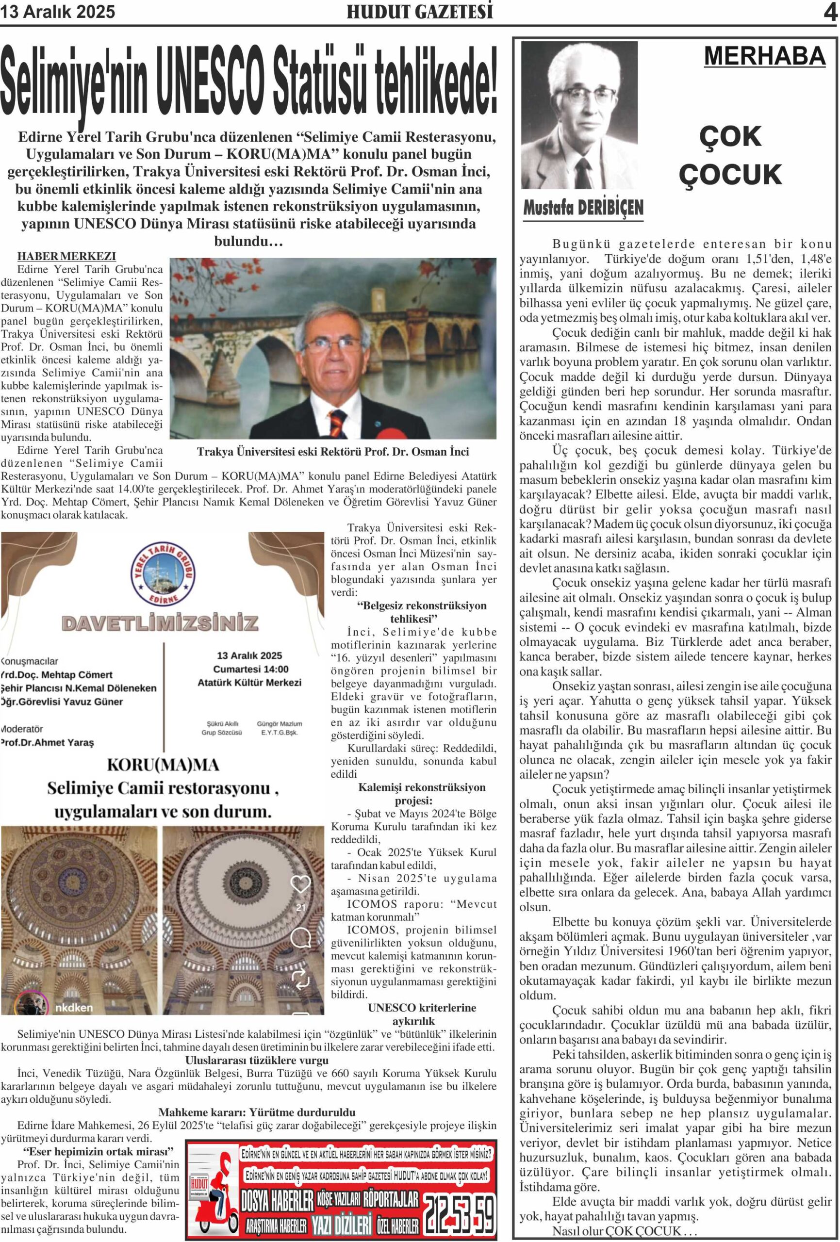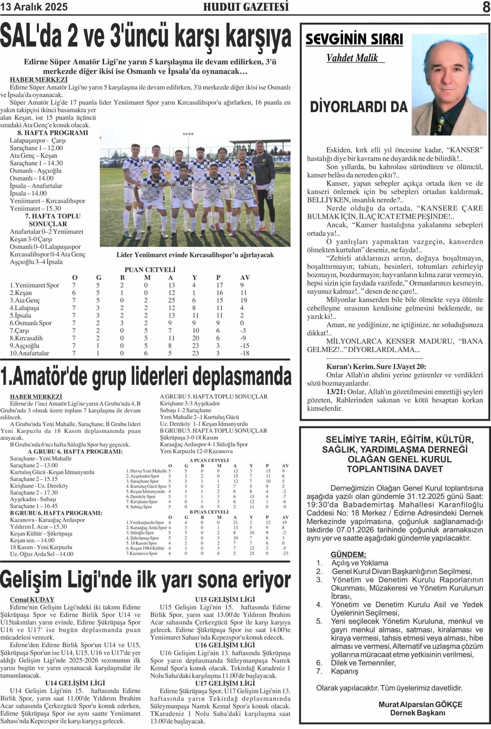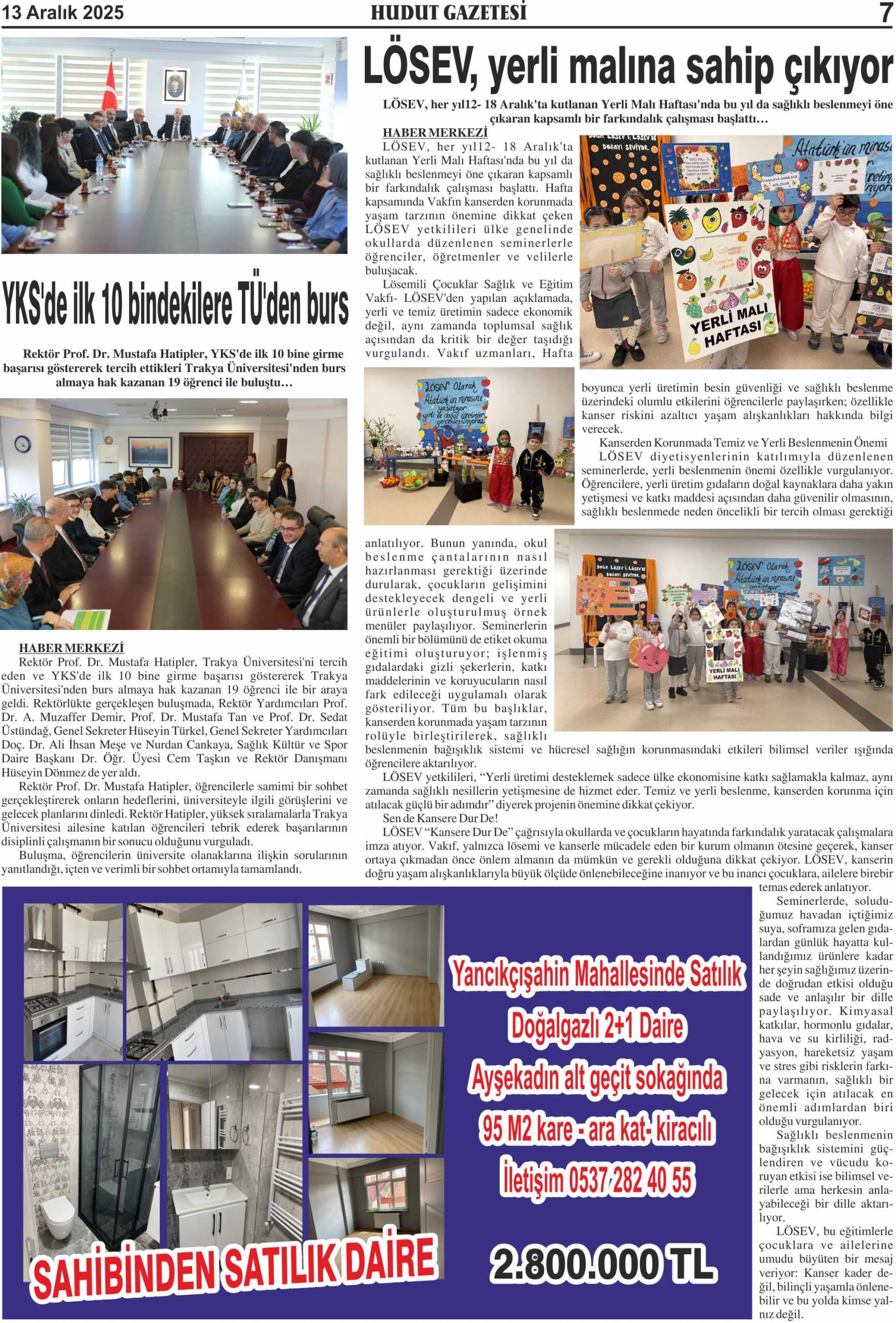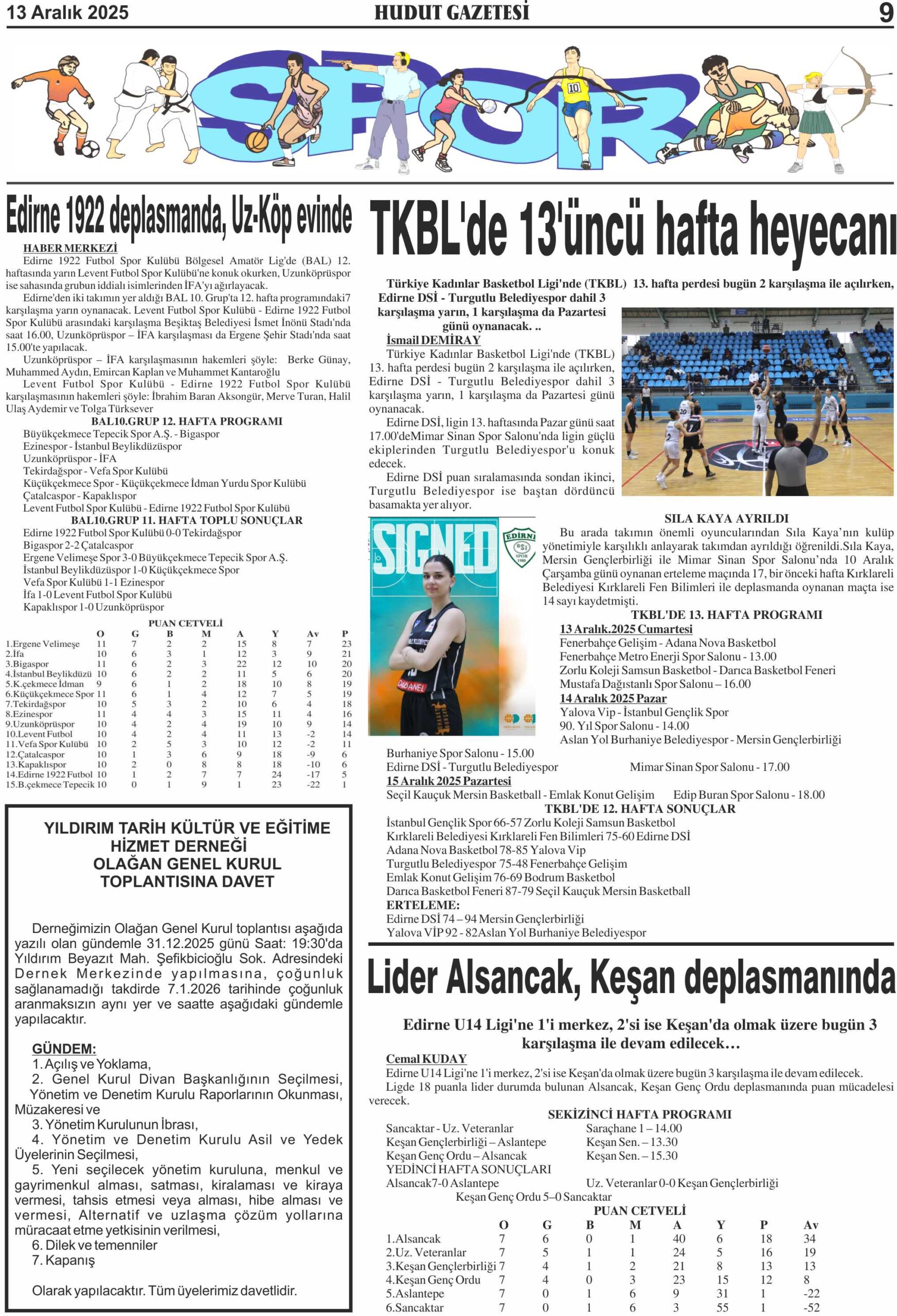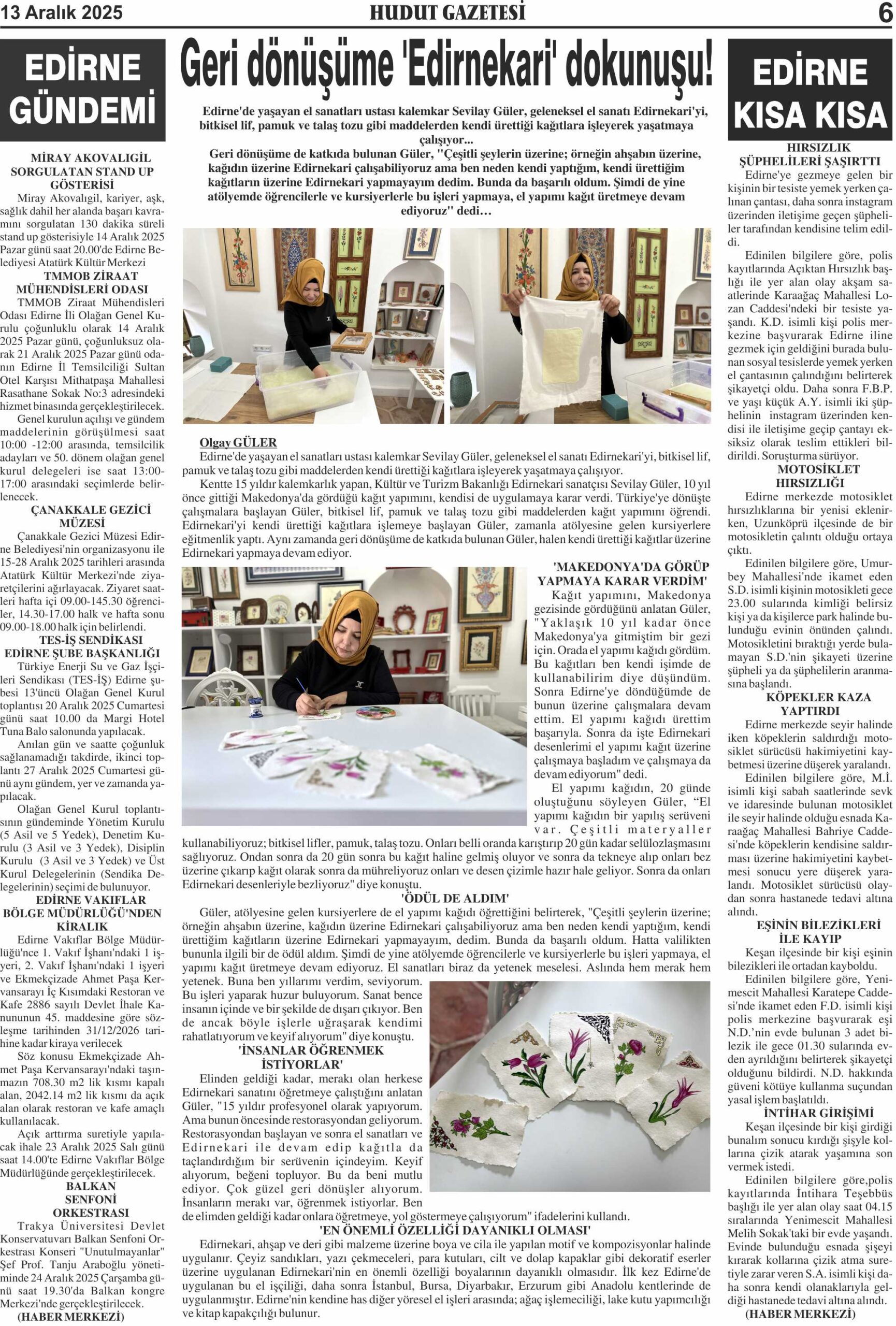 13 Aralık 2025 Cumartesi Hudut Gazetesi