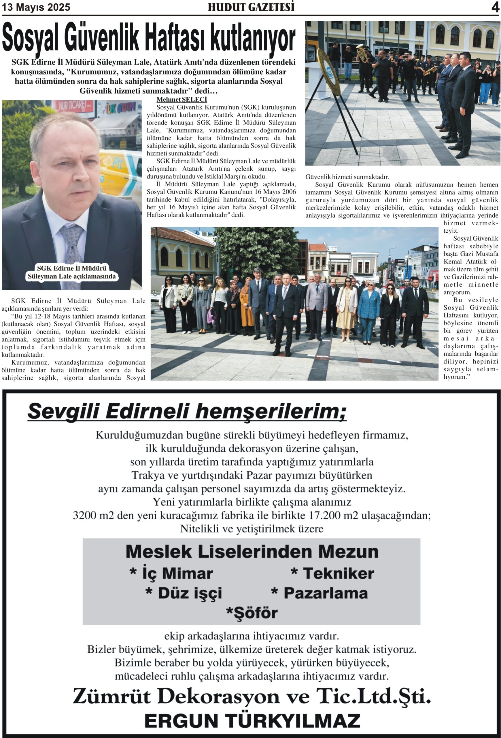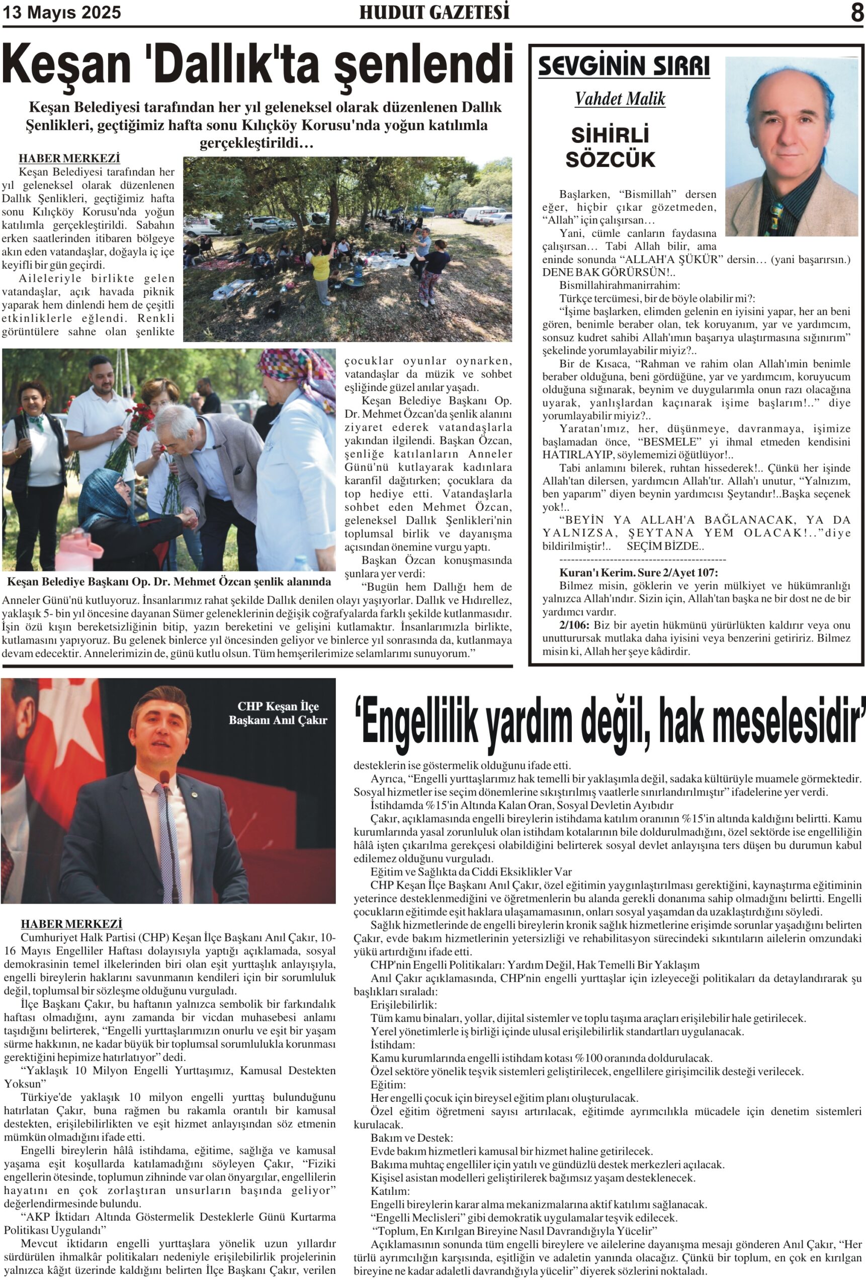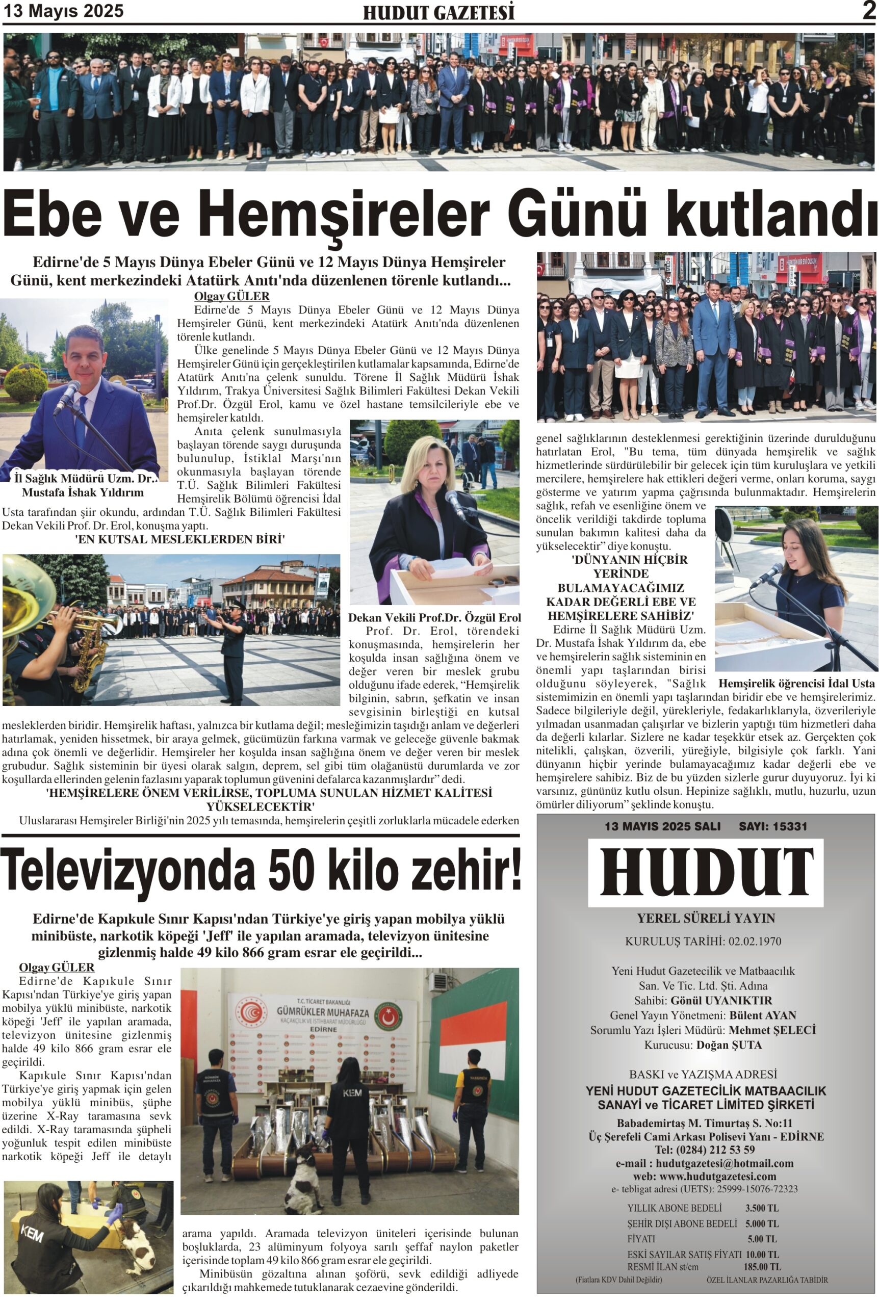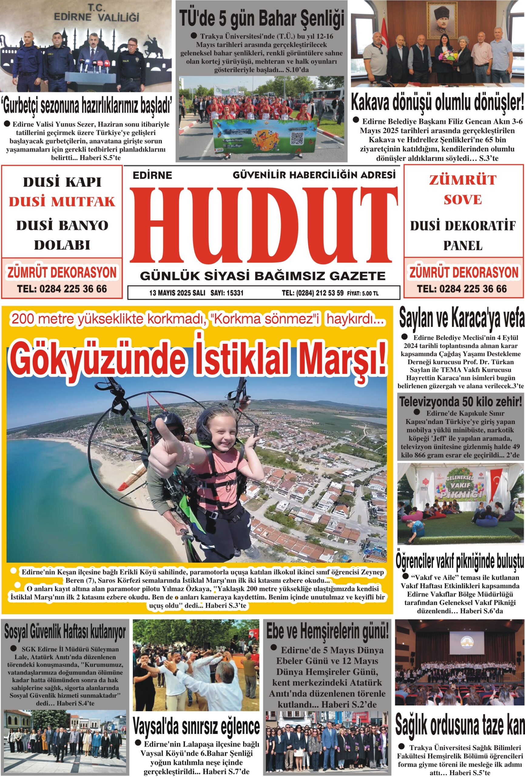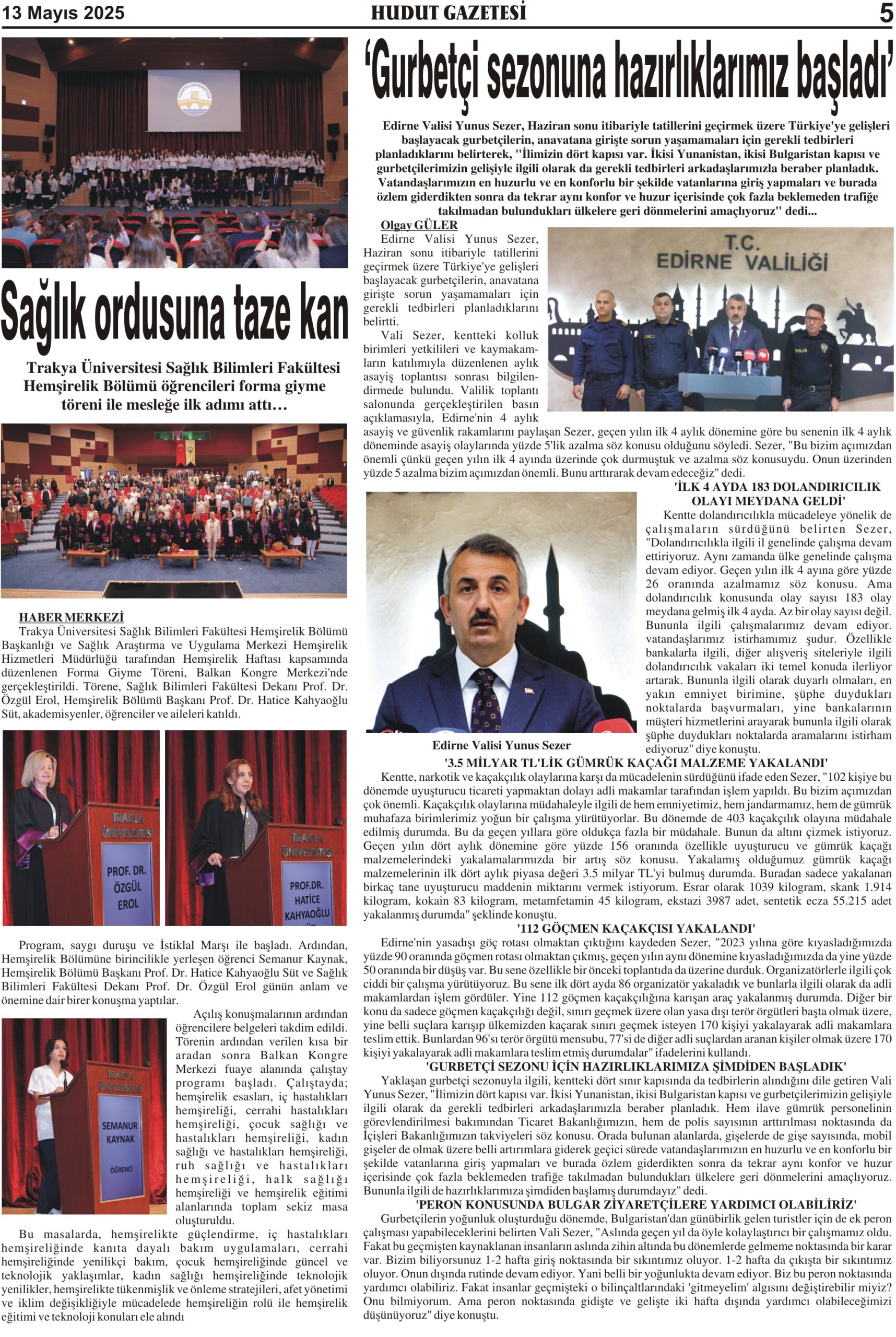 13 Mayıs 2025 Salı Hudut Gazetesi