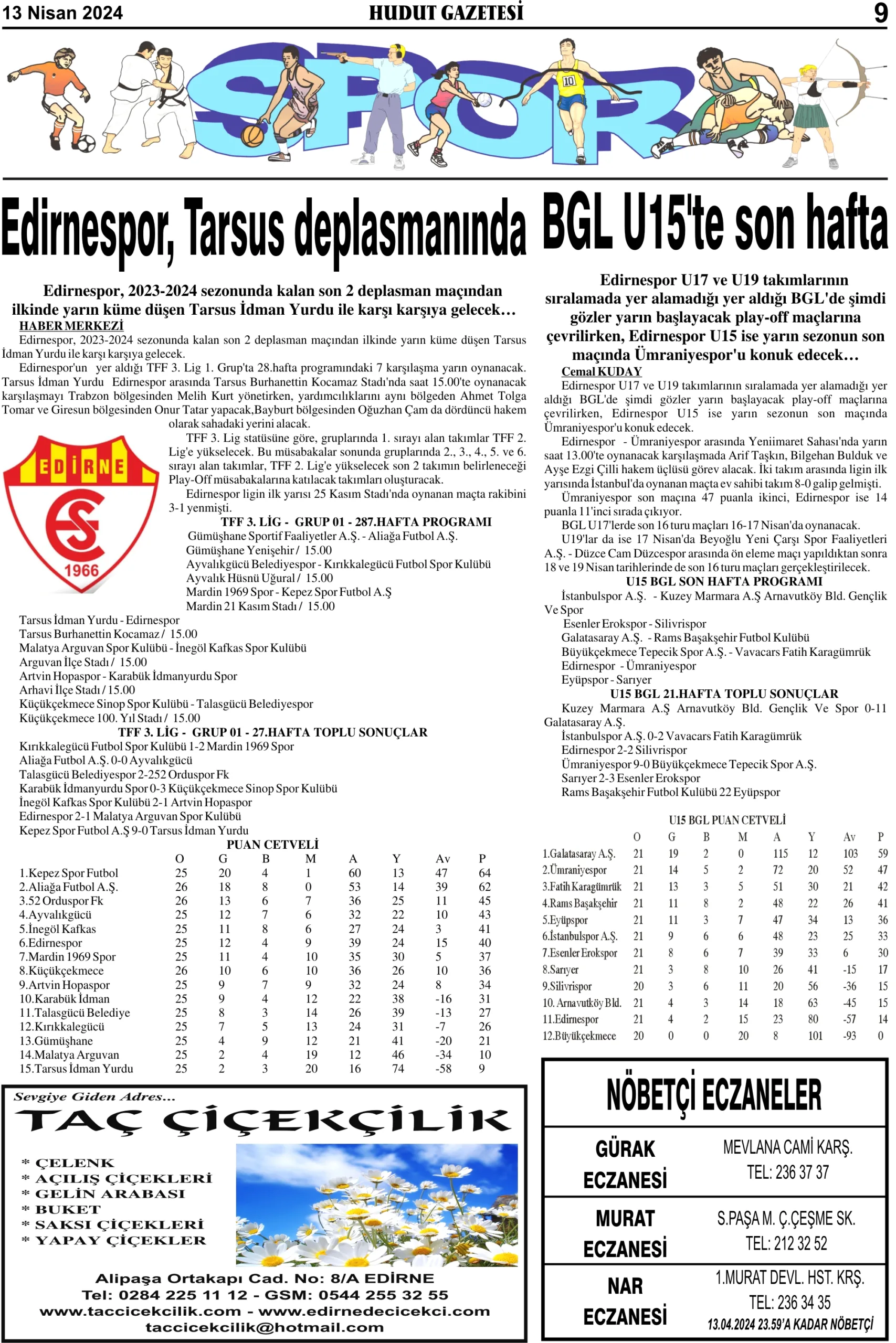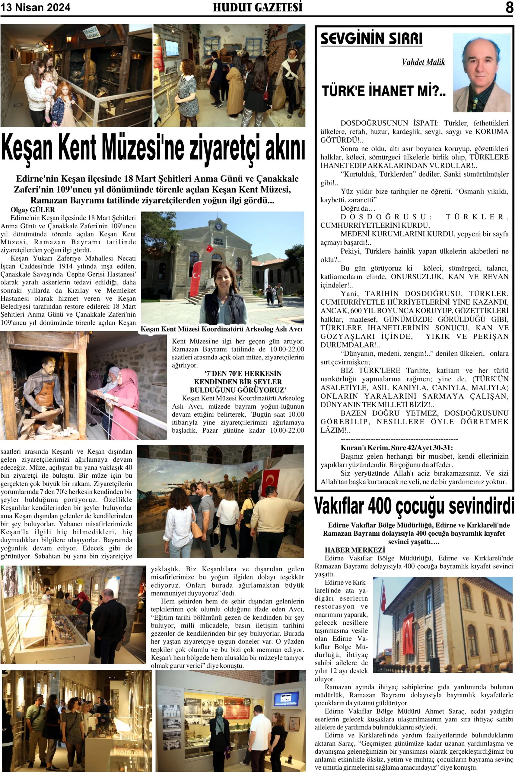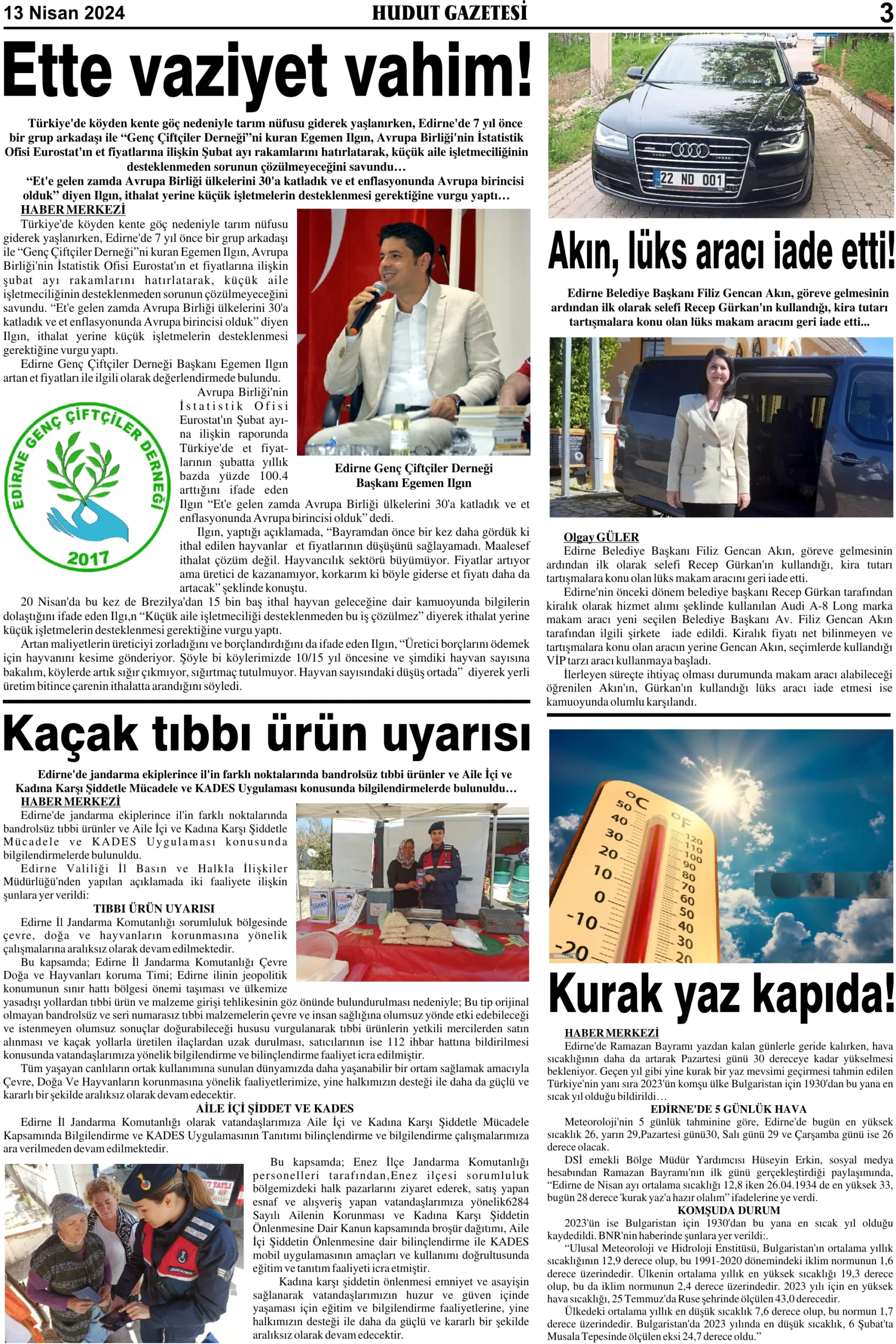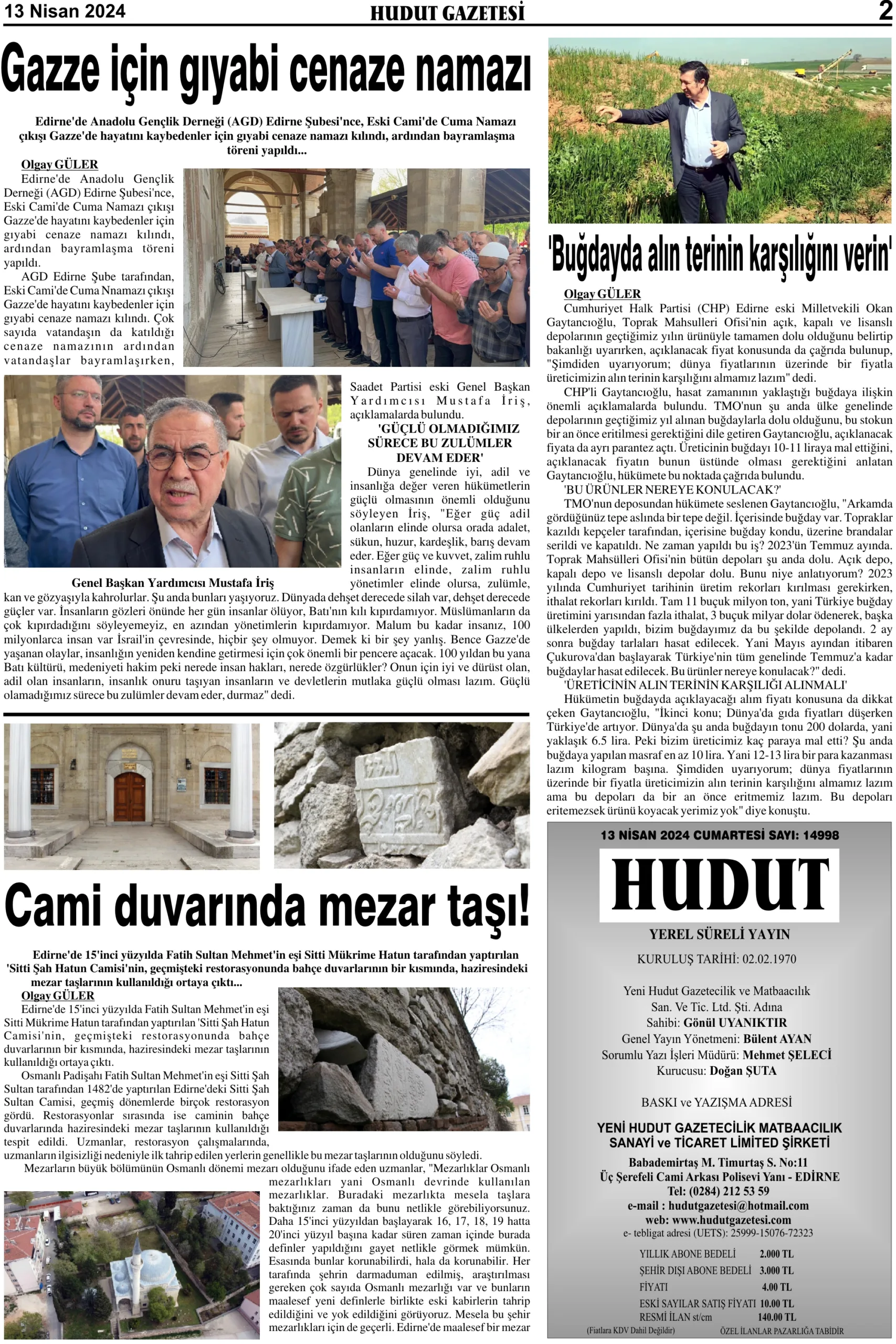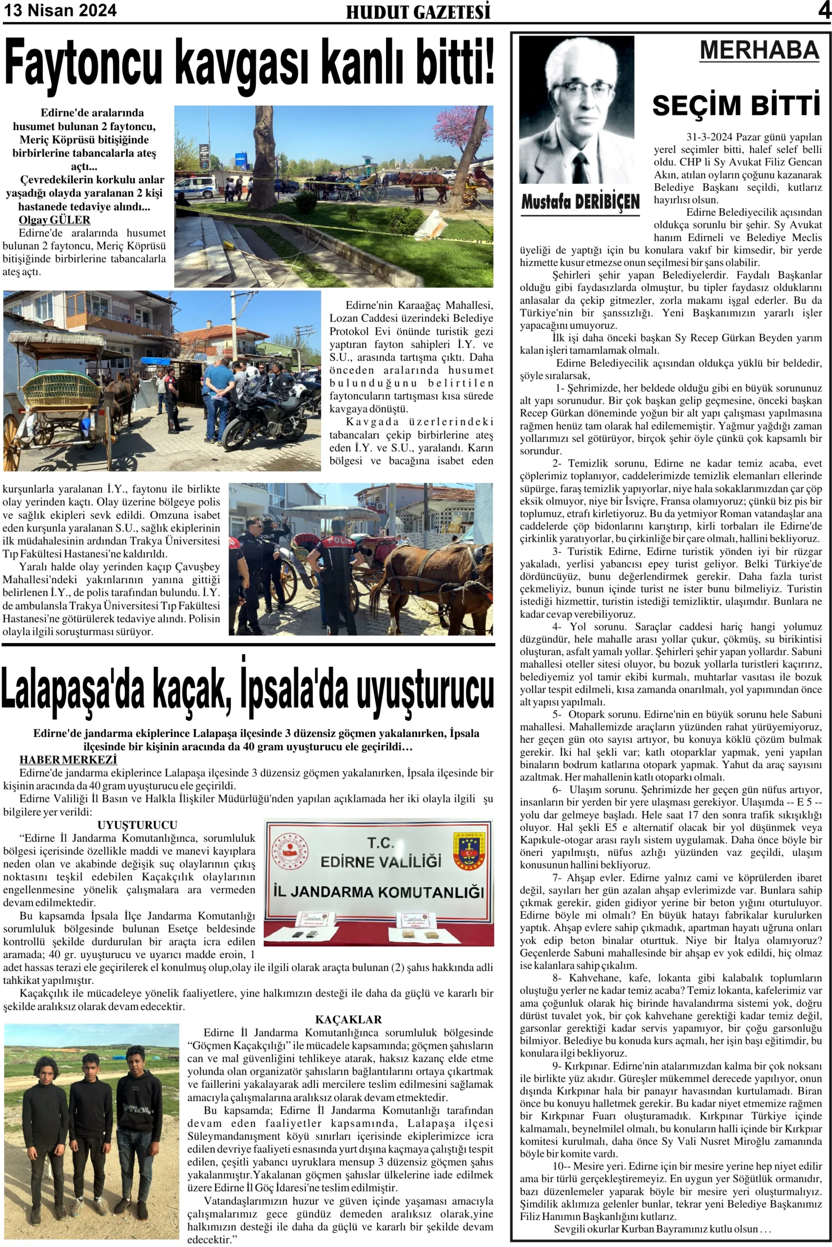 13 Nisan 2024 Cumartesi Hudut Gazetesi